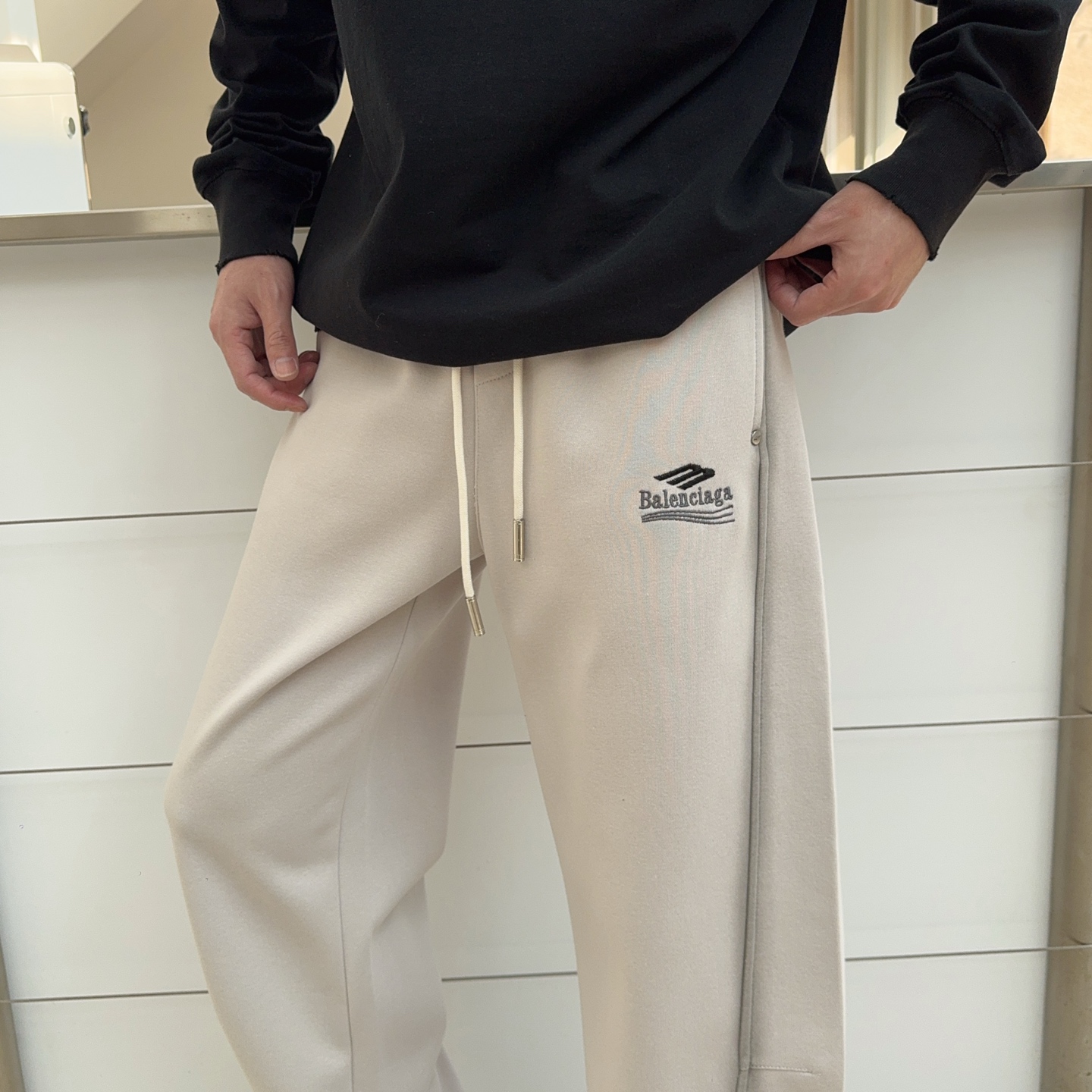 这款衣服是AAAAA 1:1 质量 (非常棒). 使用了和原版一模一样的材料. 商标部分也保持了和巴黎世家/Balenciaga一样. 图片拍摄是实物衣服拍摄, 您所收到的实物保证和我们图片一模一样.