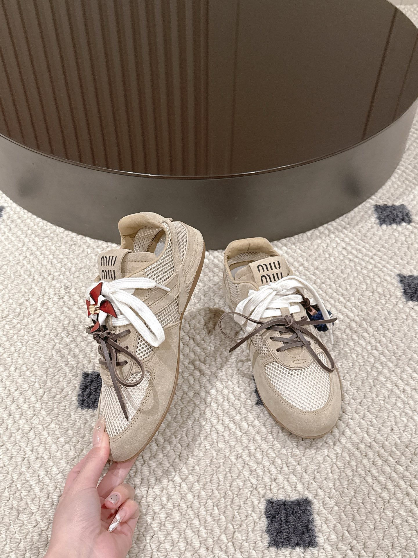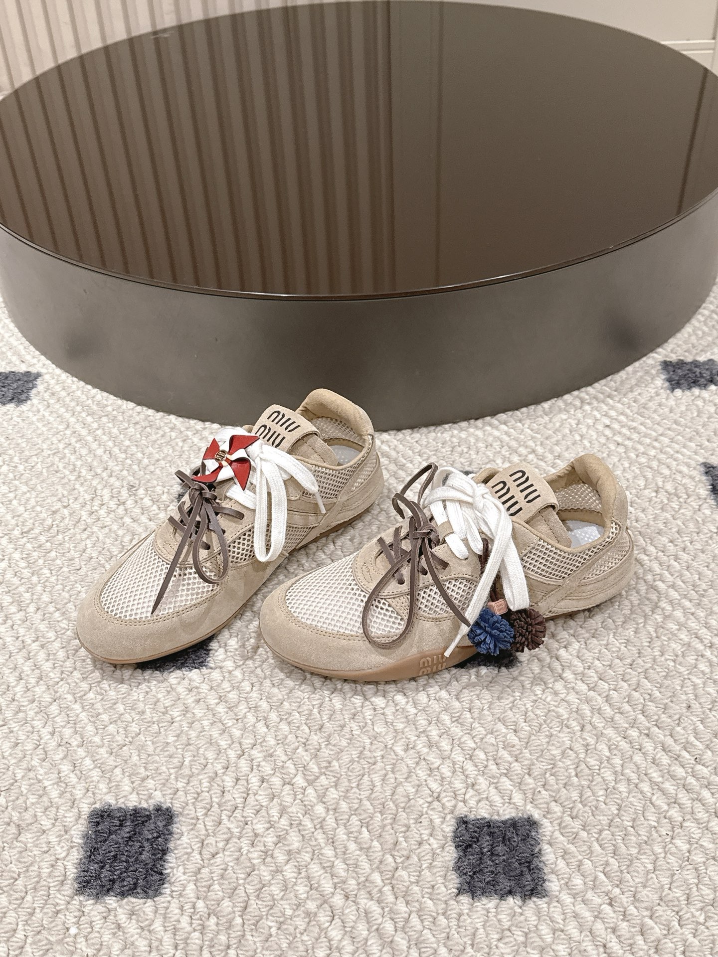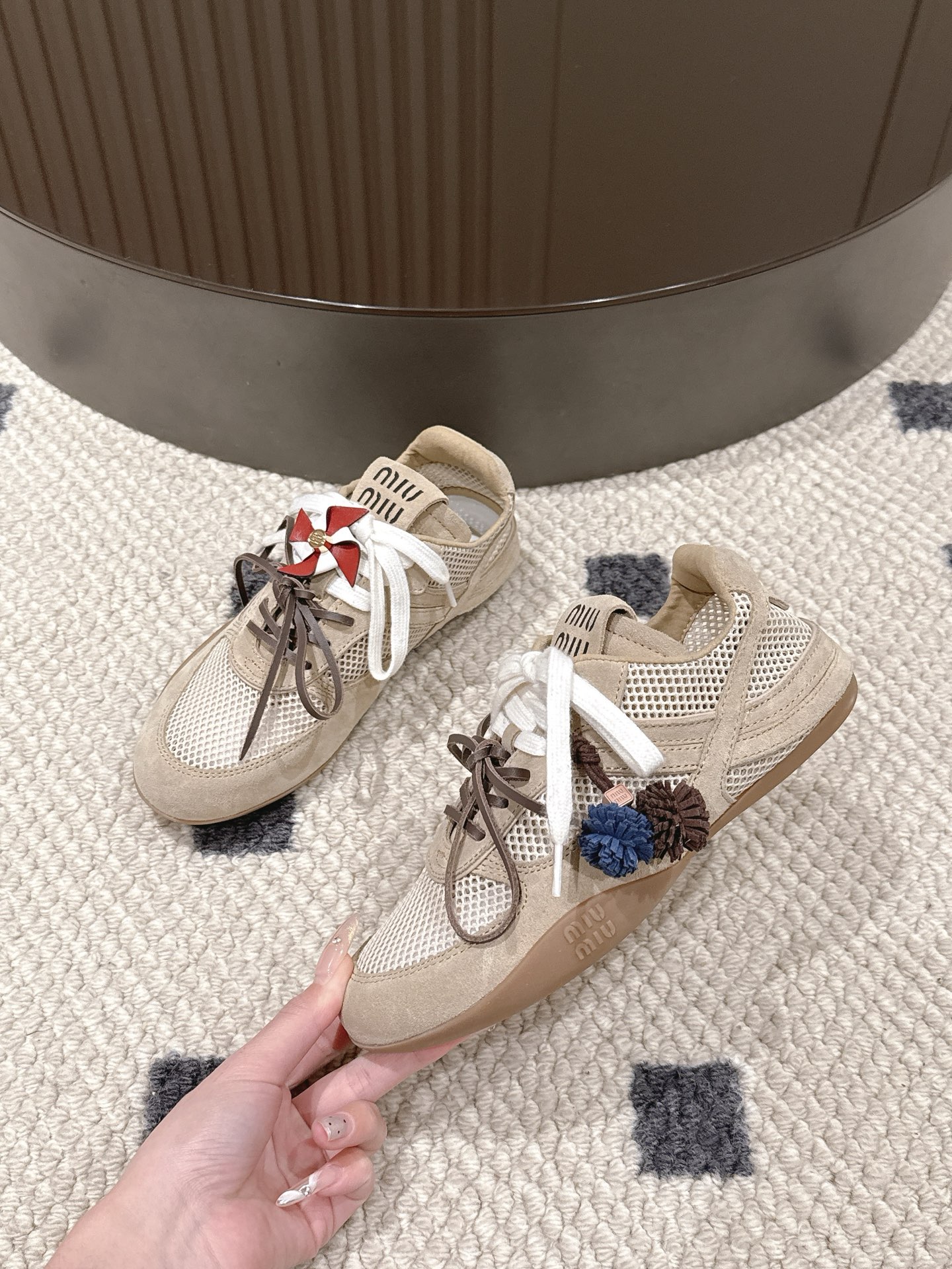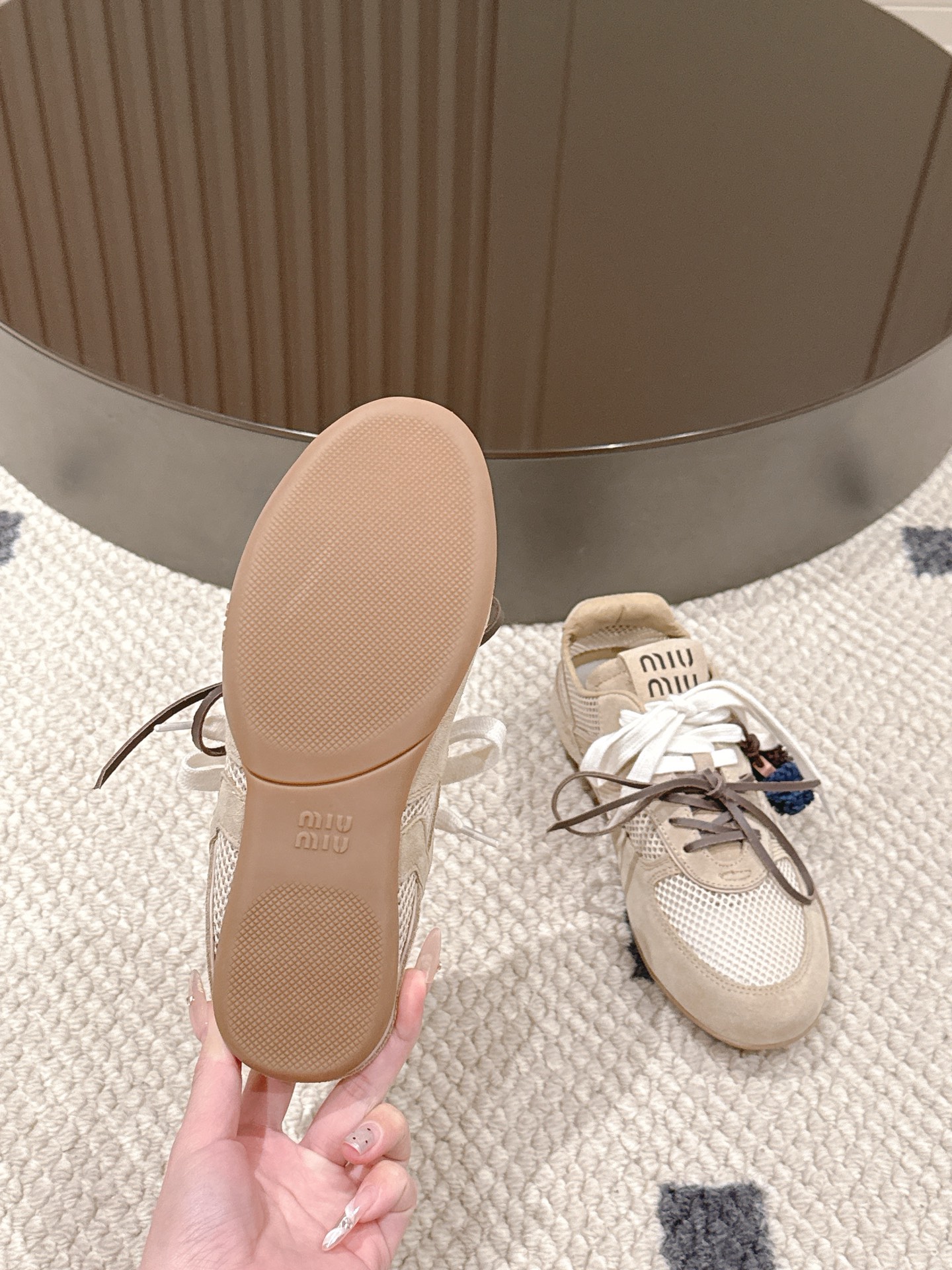 这款鞋子是AAAAA 1:1 质量 (非常棒). 使用了和原版一模一样的材料. 商标部分也保持了和缪缪/Miu Miu一样. 图片拍摄是实物鞋子拍摄, 您所收到的实物保证和我们图片一模一样.