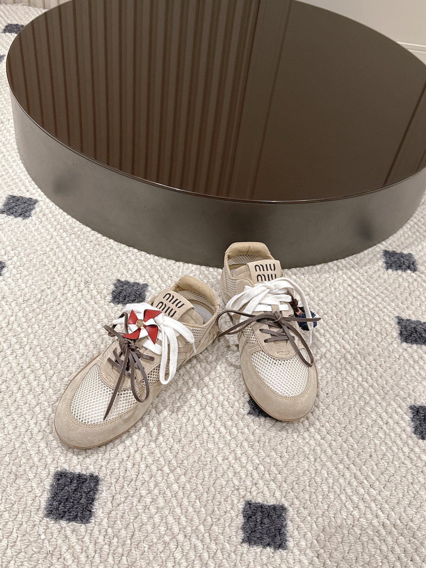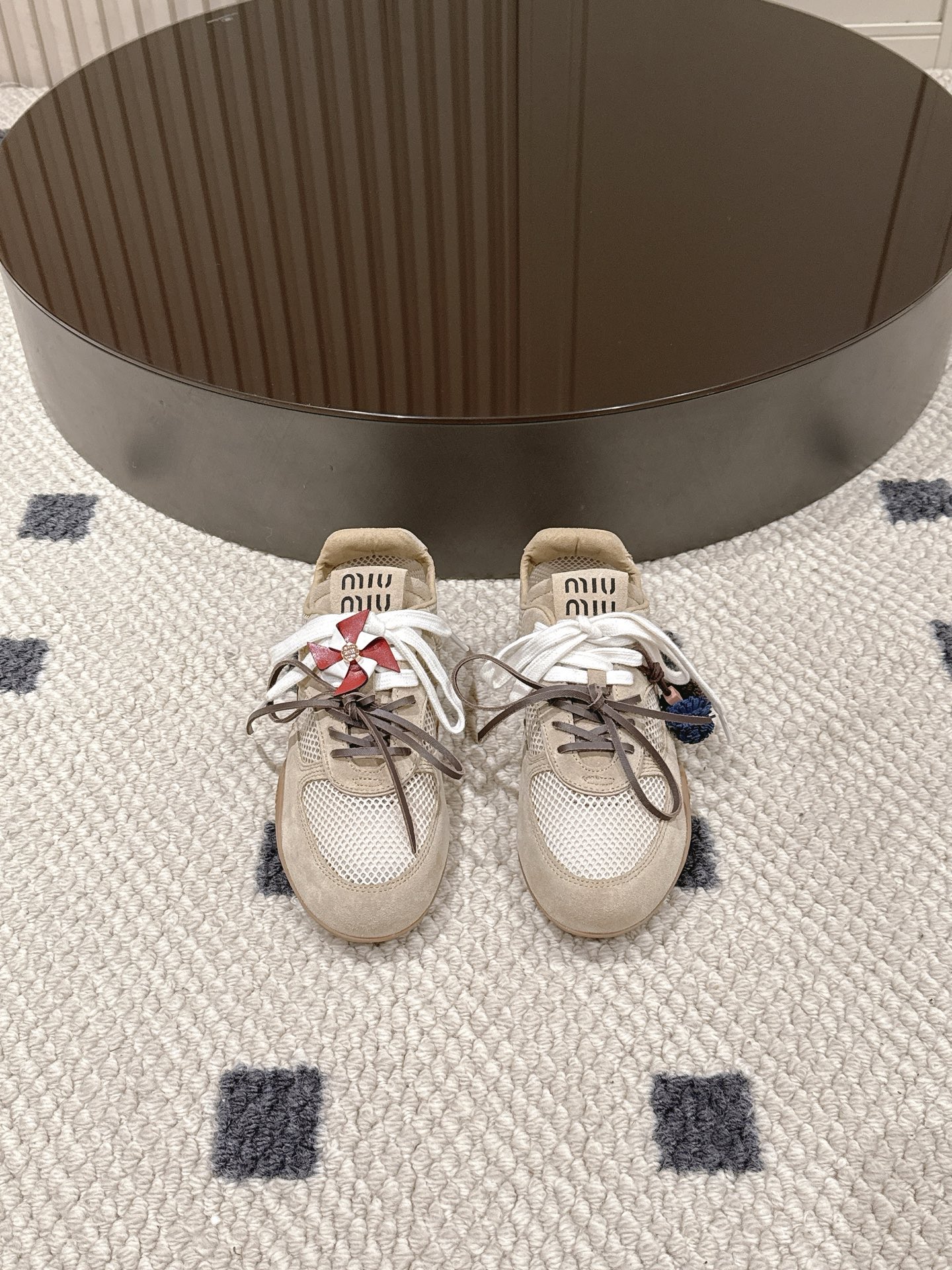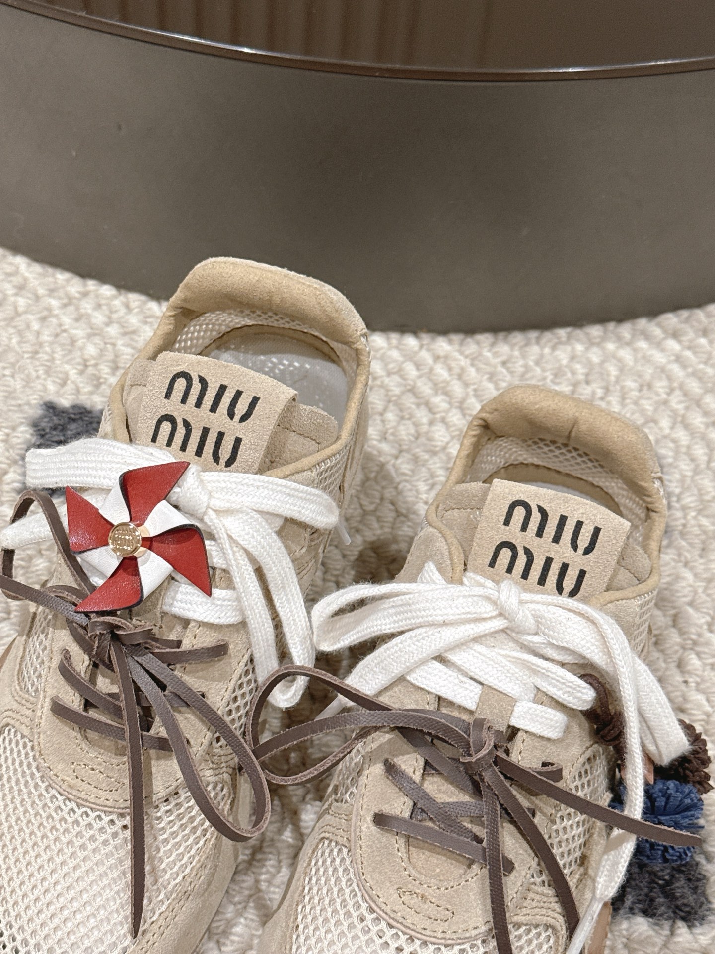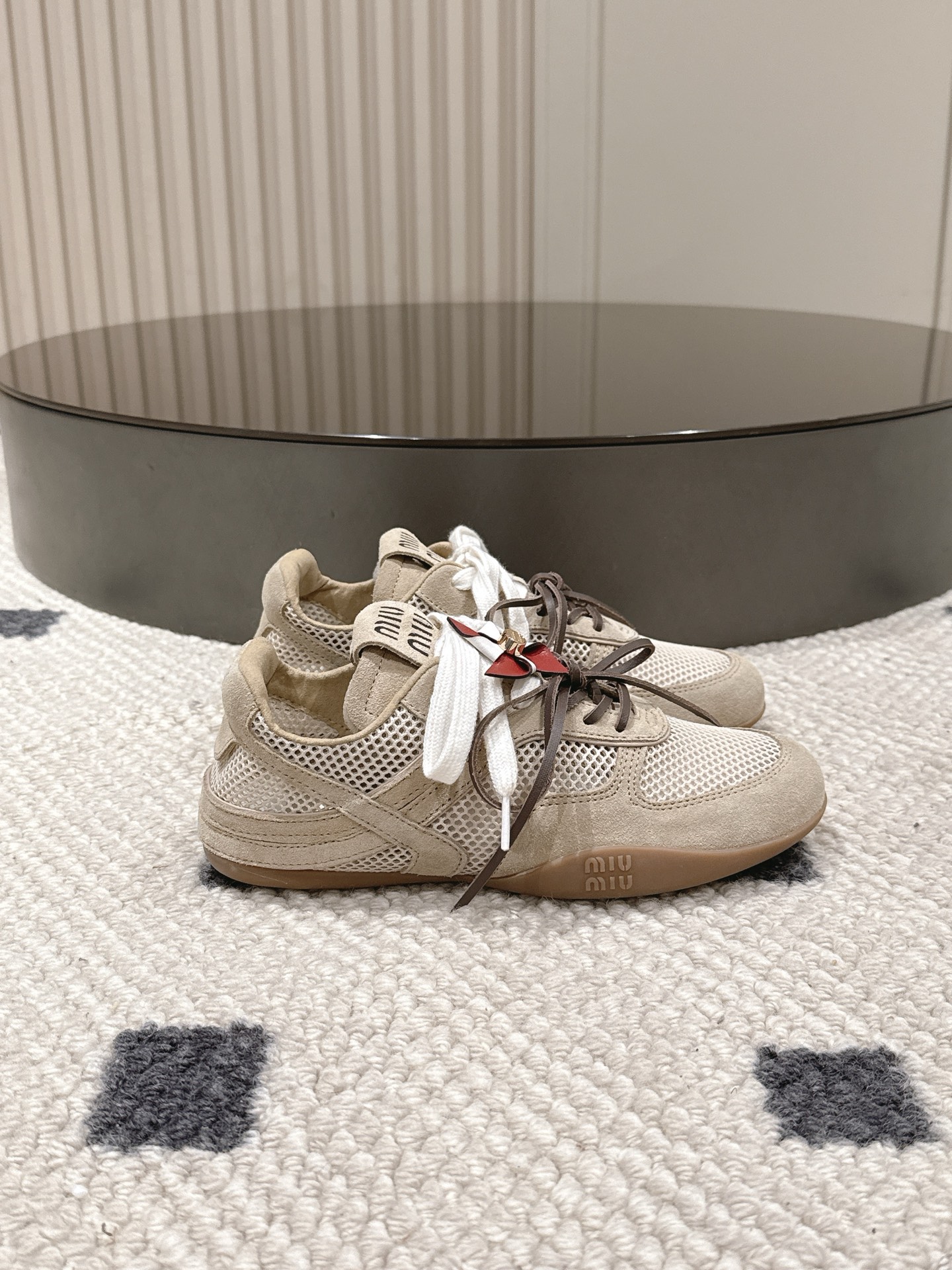 这款鞋子是AAAAA 1:1 质量 (非常棒). 使用了和原版一模一样的材料. 商标部分也保持了和缪缪/Miu Miu一样. 图片拍摄是实物鞋子拍摄, 您所收到的实物保证和我们图片一模一样.