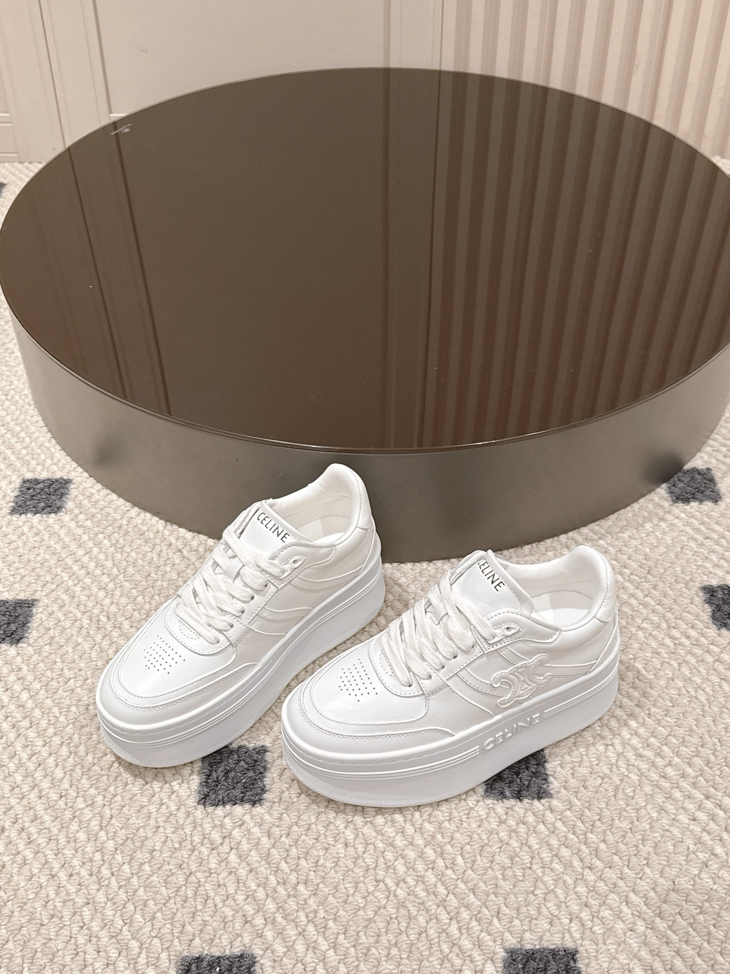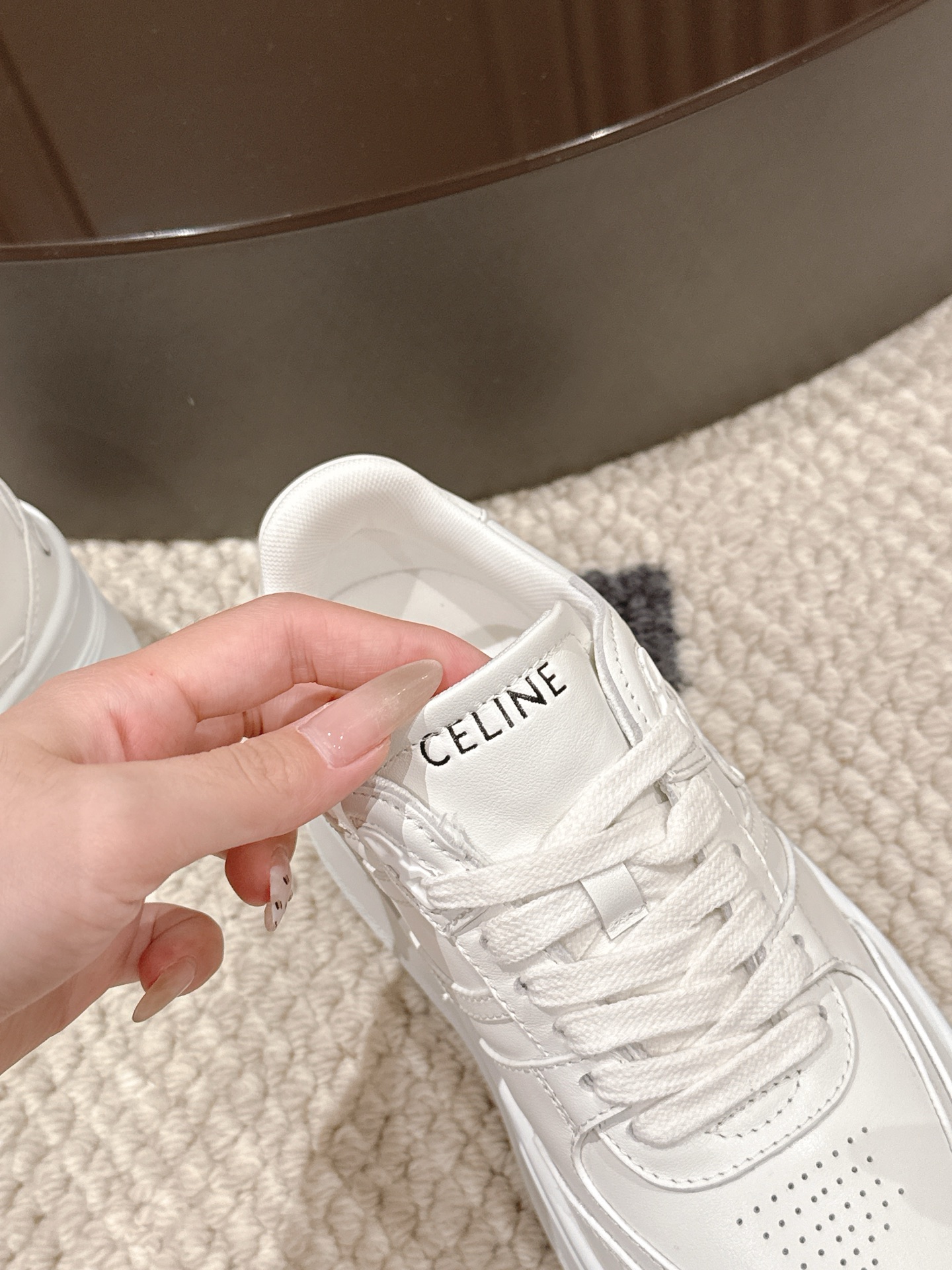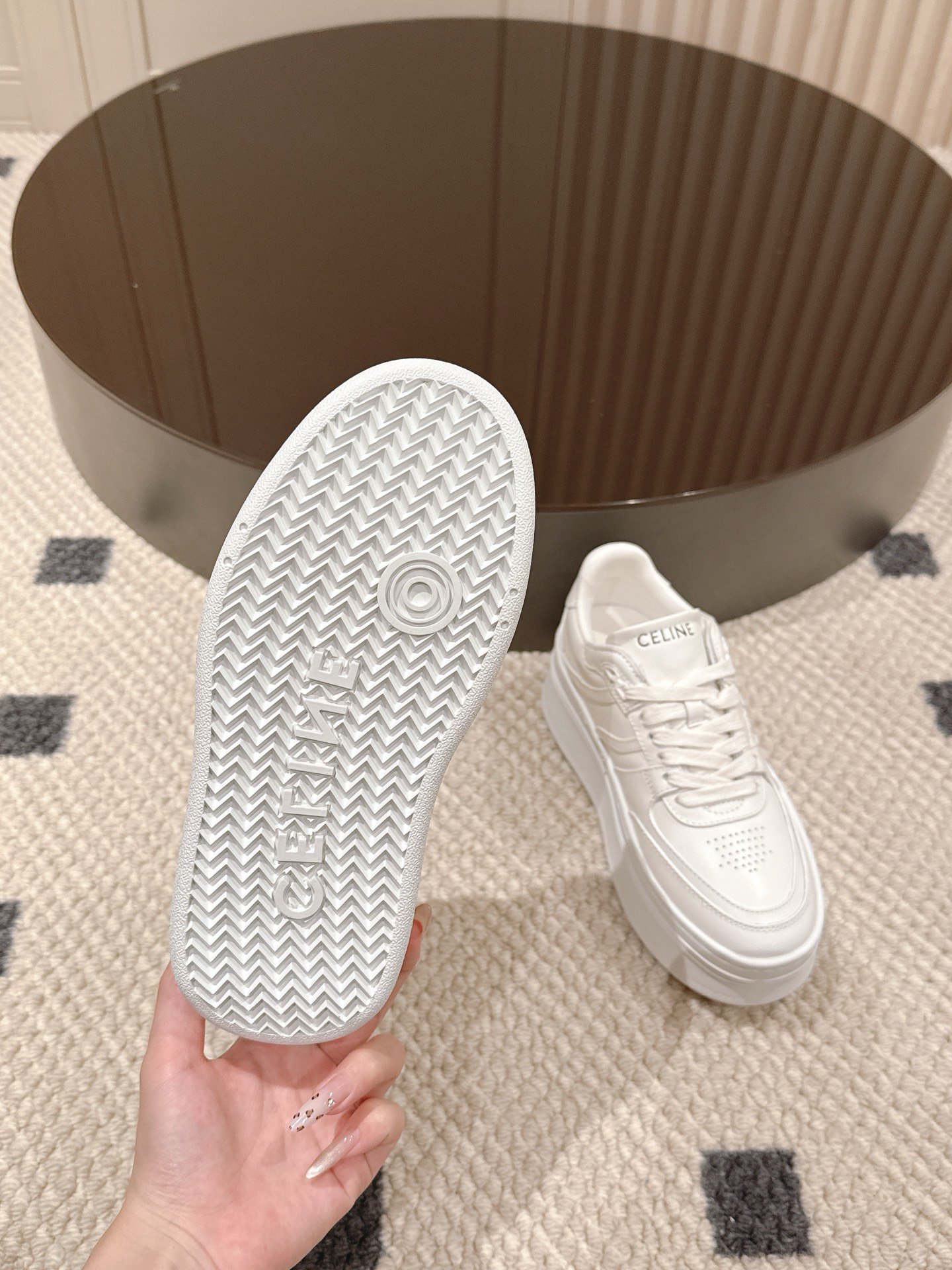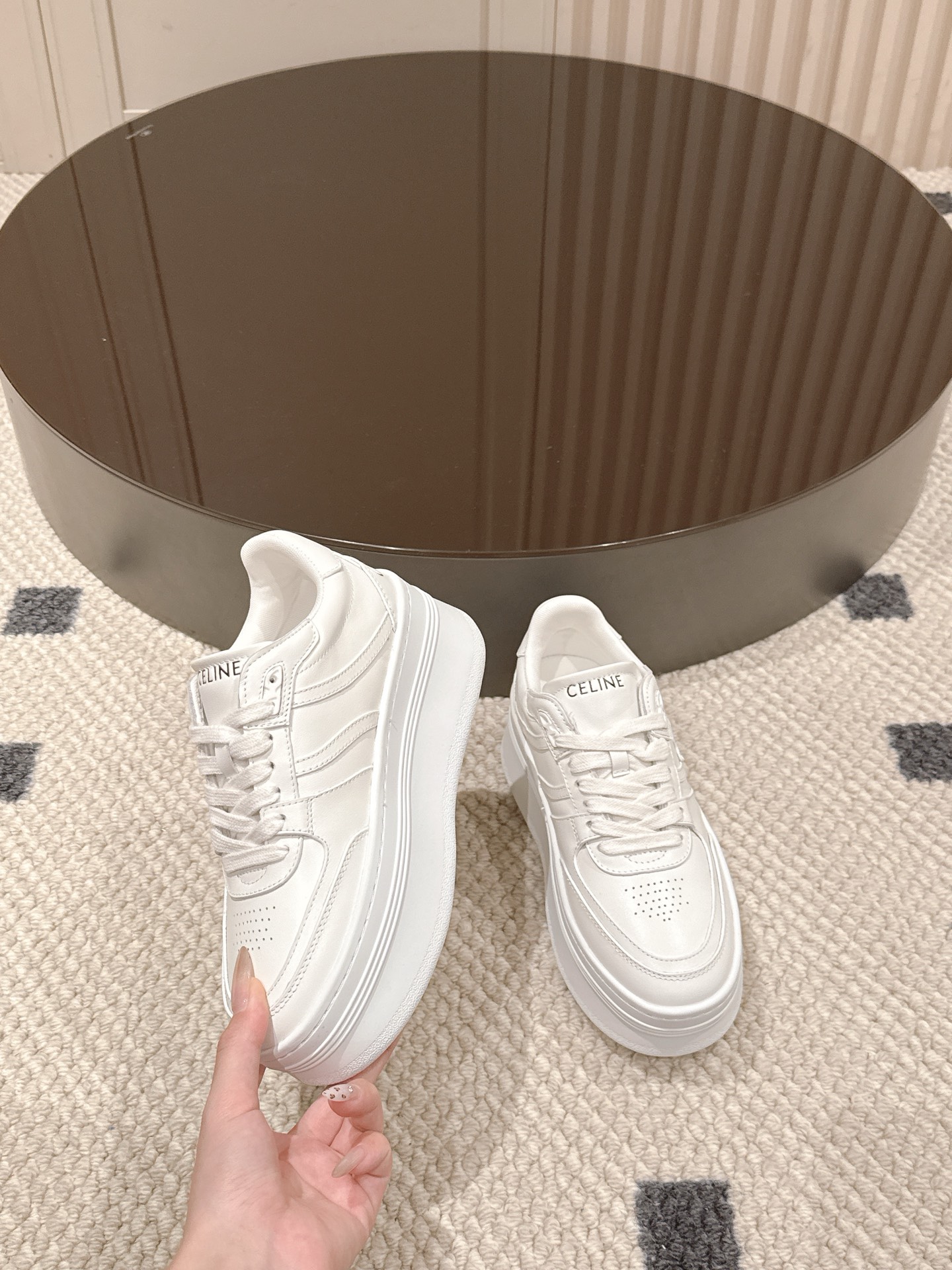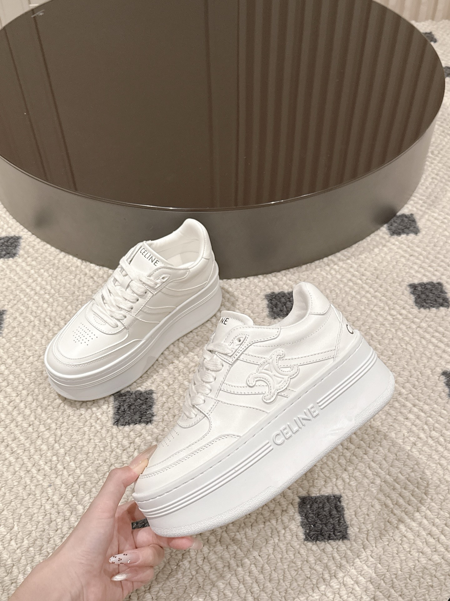 这款鞋子是AAAAA 1:1 质量 (非常棒). 使用了和原版一模一样的材料. 商标部分也保持了和思琳/Celine一样. 图片拍摄是实物鞋子拍摄, 您所收到的实物保证和我们图片一模一样.