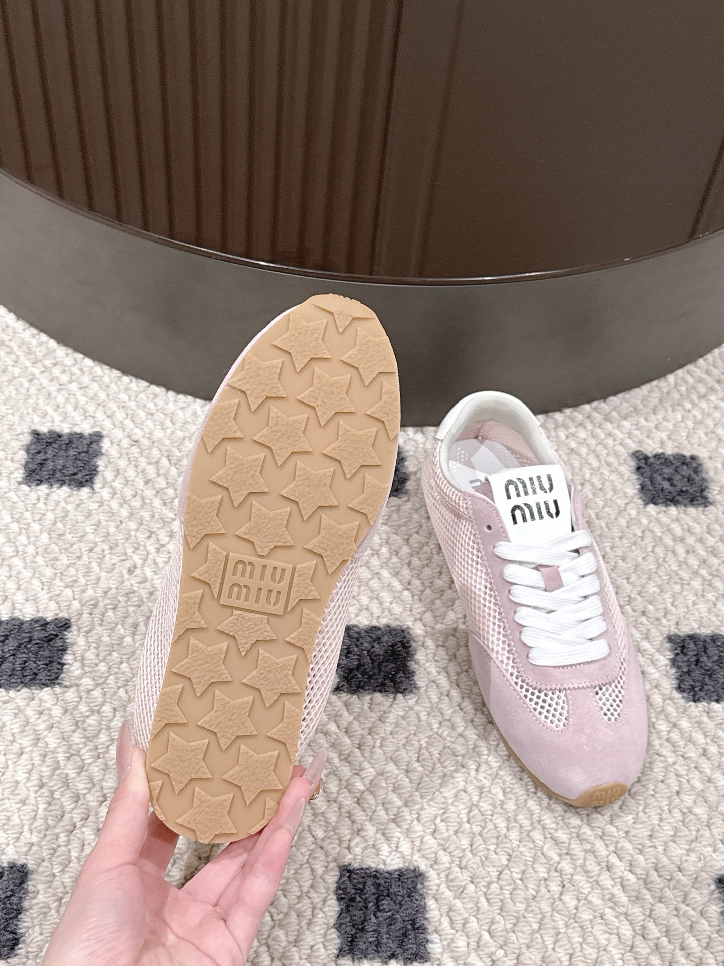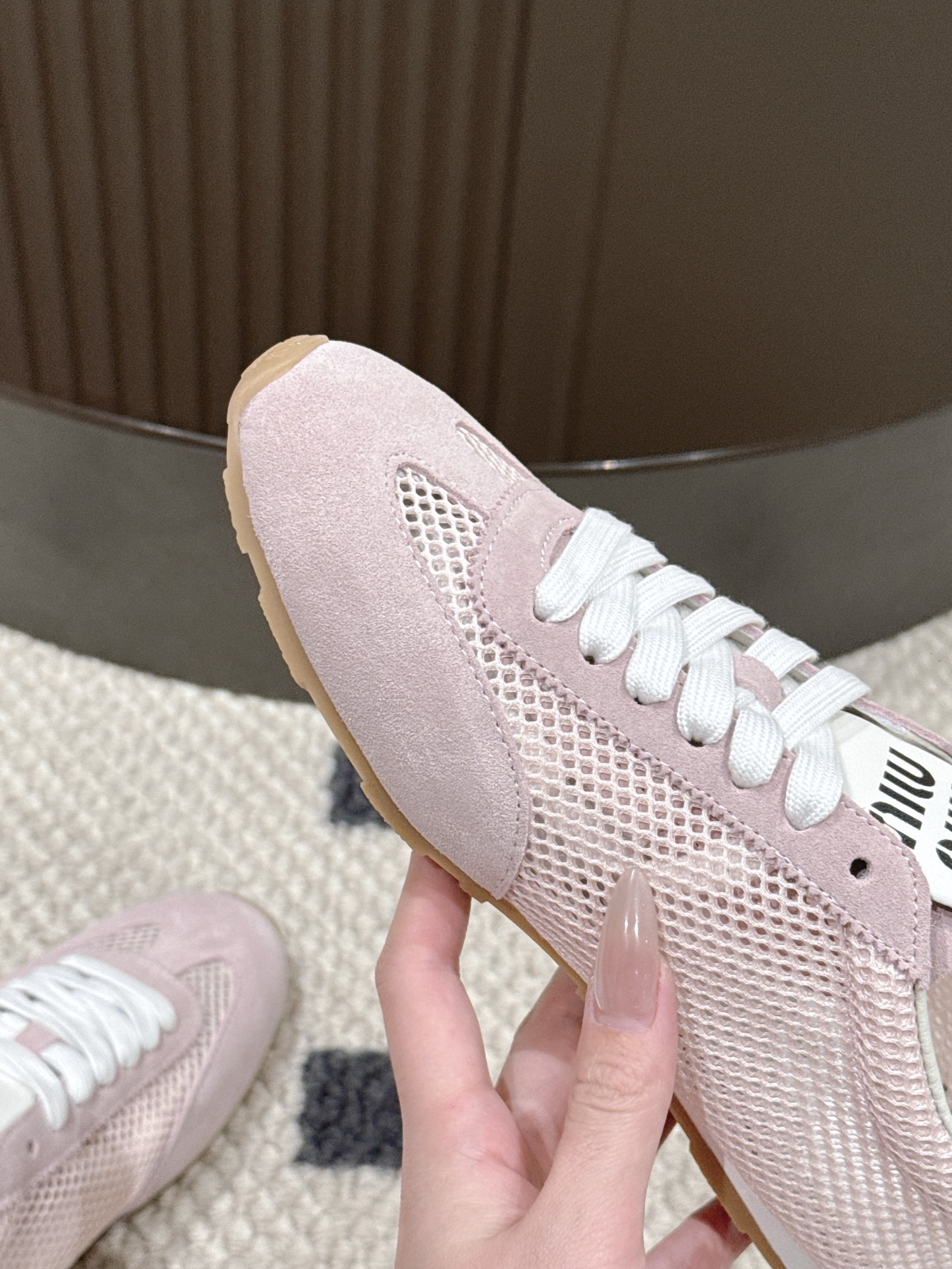 这款鞋子是AAAAA 1:1 质量 (非常棒). 使用了和原版一模一样的材料. 商标部分也保持了和缪缪/Miu Miu一样. 图片拍摄是实物鞋子拍摄, 您所收到的实物保证和我们图片一模一样.