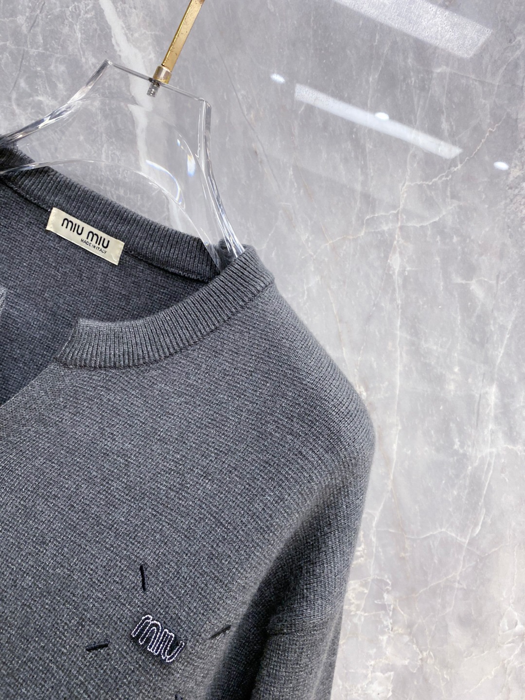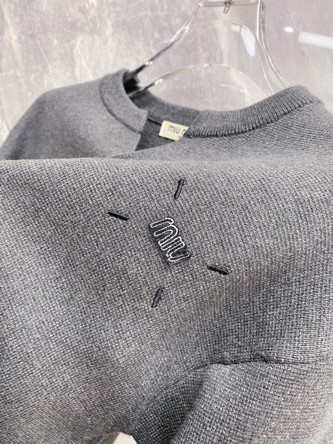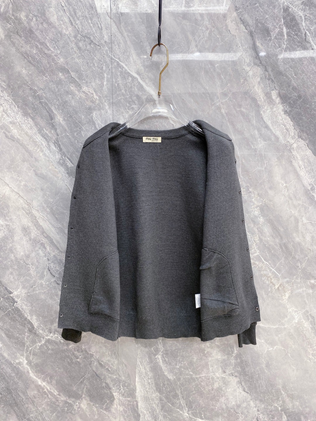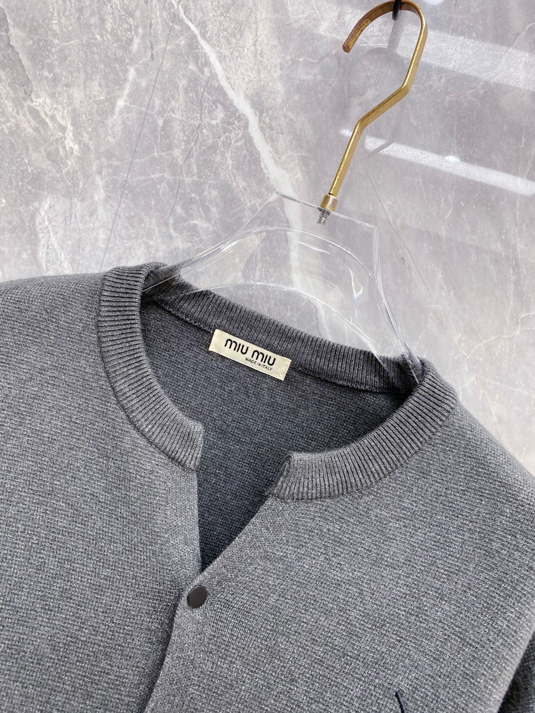 这款衣服是AAAAA 1:1 质量 (非常棒). 使用了和原版一模一样的材料. 商标部分也保持了和缪缪/Miu Miu一样. 图片拍摄是实物衣服拍摄, 您所收到的实物保证和我们图片一模一样.
