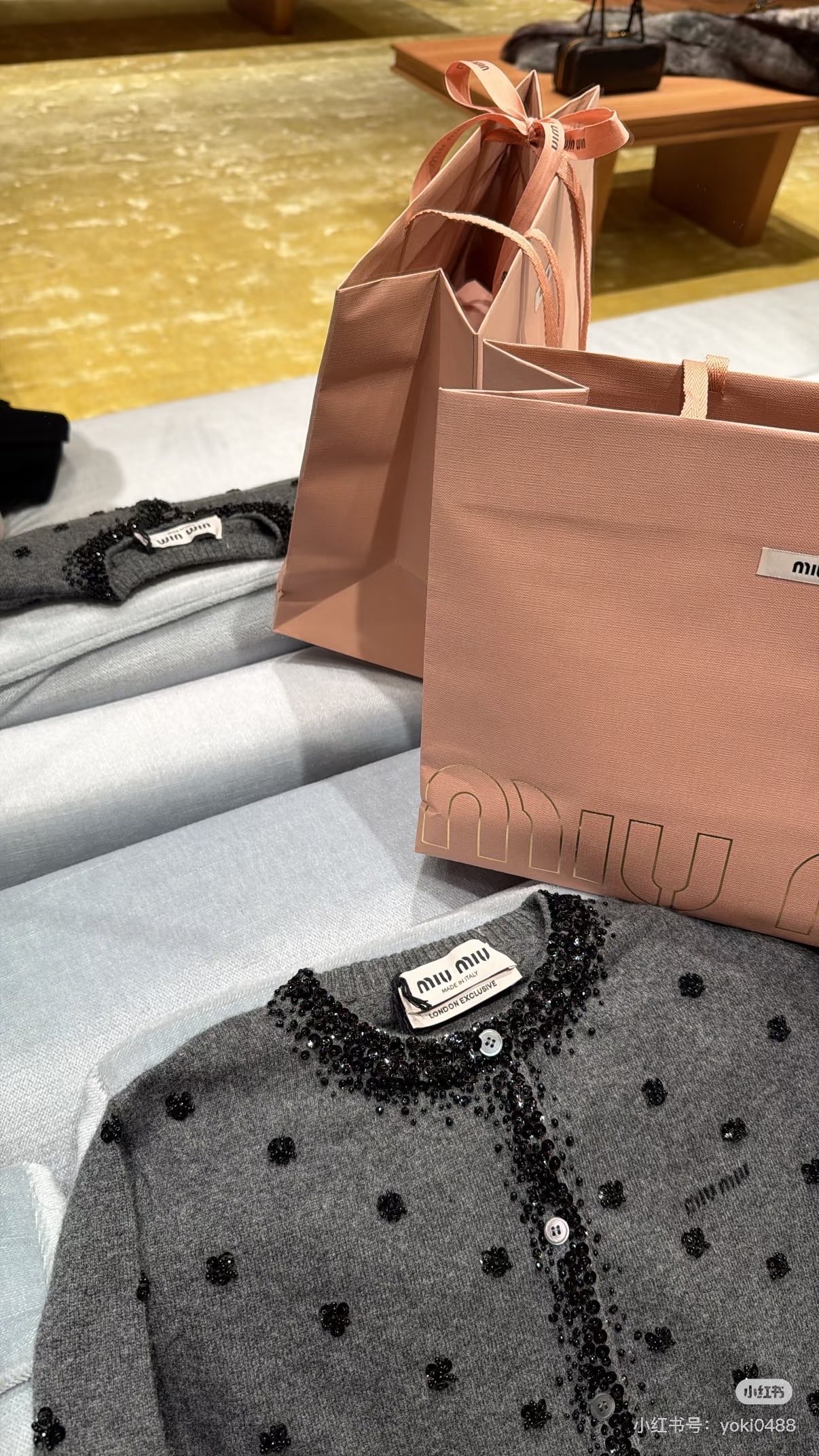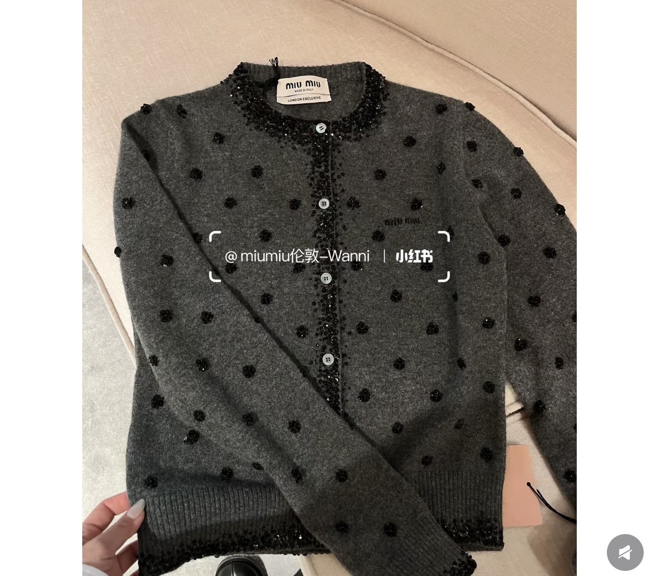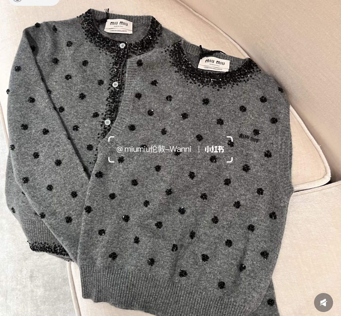 这款衣服是AAAAA 1:1 质量 (非常棒). 使用了和原版一模一样的材料. 商标部分也保持了和缪缪/Miu Miu一样. 图片拍摄是实物衣服拍摄, 您所收到的实物保证和我们图片一模一样.