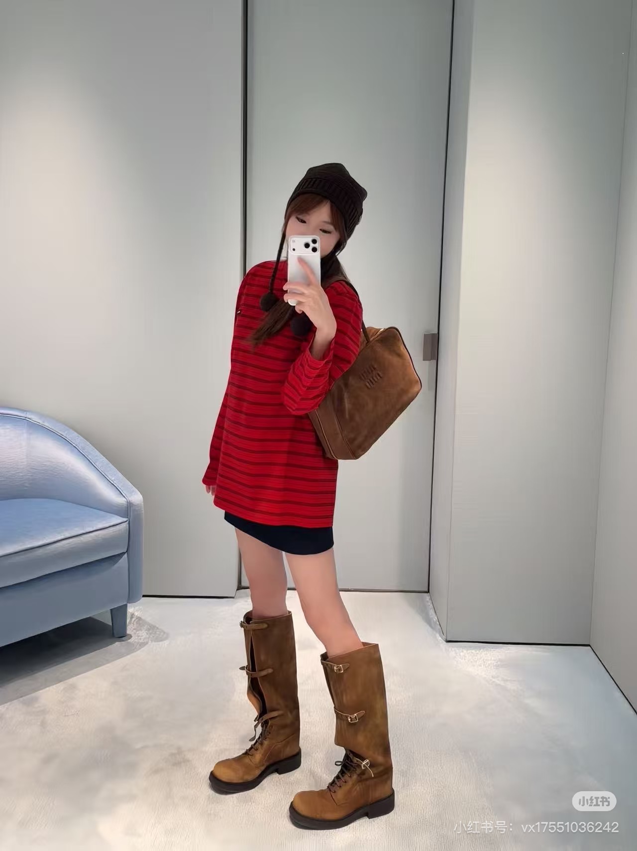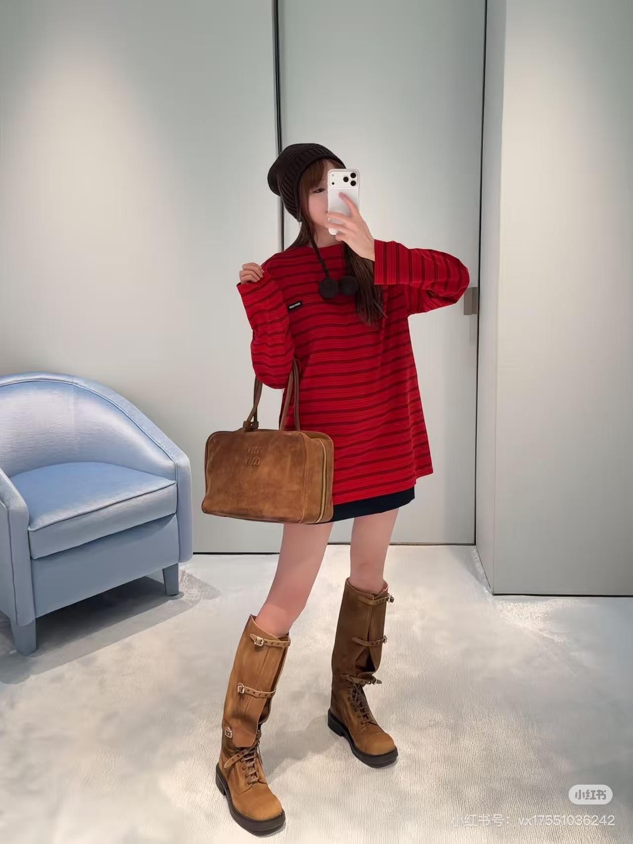 这款衣服是AAAAA 1:1 质量 (非常棒). 使用了和原版一模一样的材料. 商标部分也保持了和缪缪/Miu Miu一样. 图片拍摄是实物衣服拍摄, 您所收到的实物保证和我们图片一模一样.