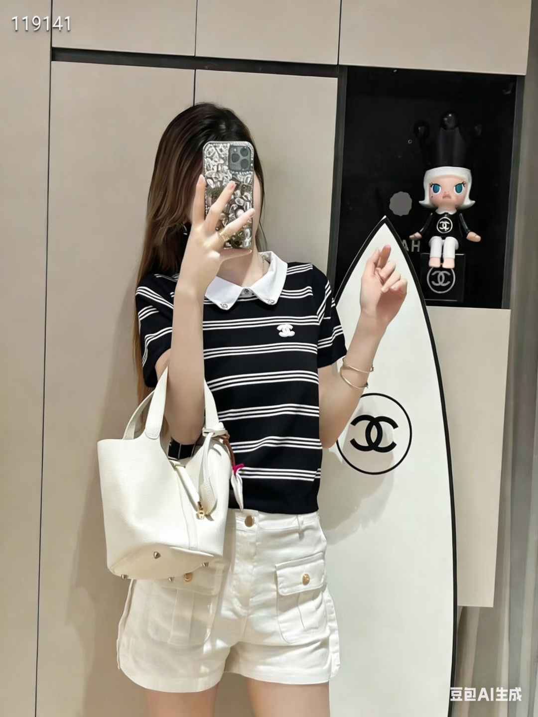 这款衣服是AAAAA 1:1 质量 (非常棒). 使用了和原版一模一样的材料. 商标部分也保持了和香奈儿/Chanel一样. 图片拍摄是实物衣服拍摄, 您所收到的实物保证和我们图片一模一样.