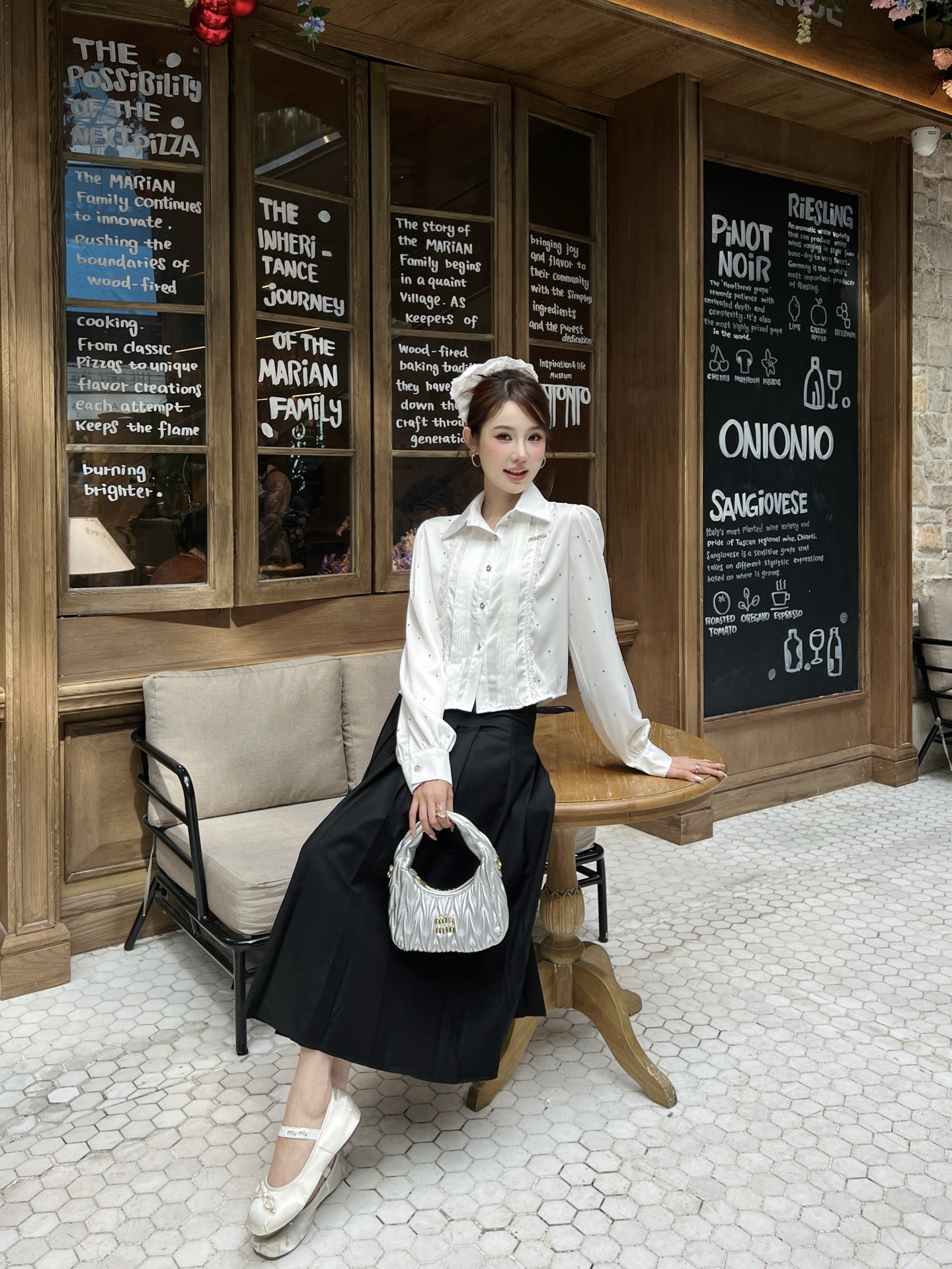 这款衣服是AAAAA 1:1 质量 (非常棒). 使用了和原版一模一样的材料. 商标部分也保持了和缪缪/Miu Miu一样. 图片拍摄是实物衣服拍摄, 您所收到的实物保证和我们图片一模一样.