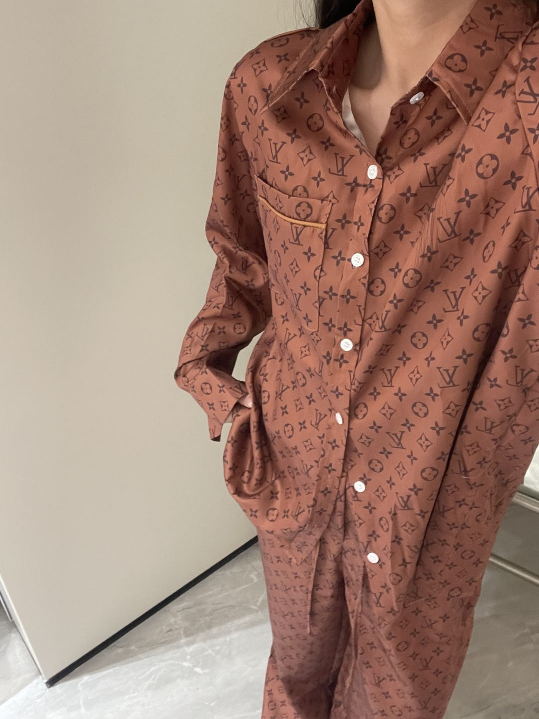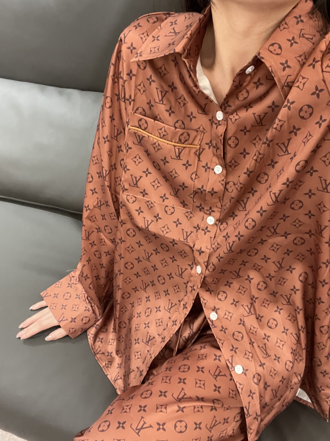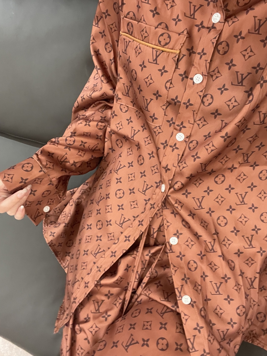 这款衣服是AAAAA 1:1 质量 (非常棒). 使用了和原版一模一样的材料. 商标部分也保持了和路易威登/Louis Vuitton一样. 图片拍摄是实物衣服拍摄, 您所收到的实物保证和我们图片一模一样.