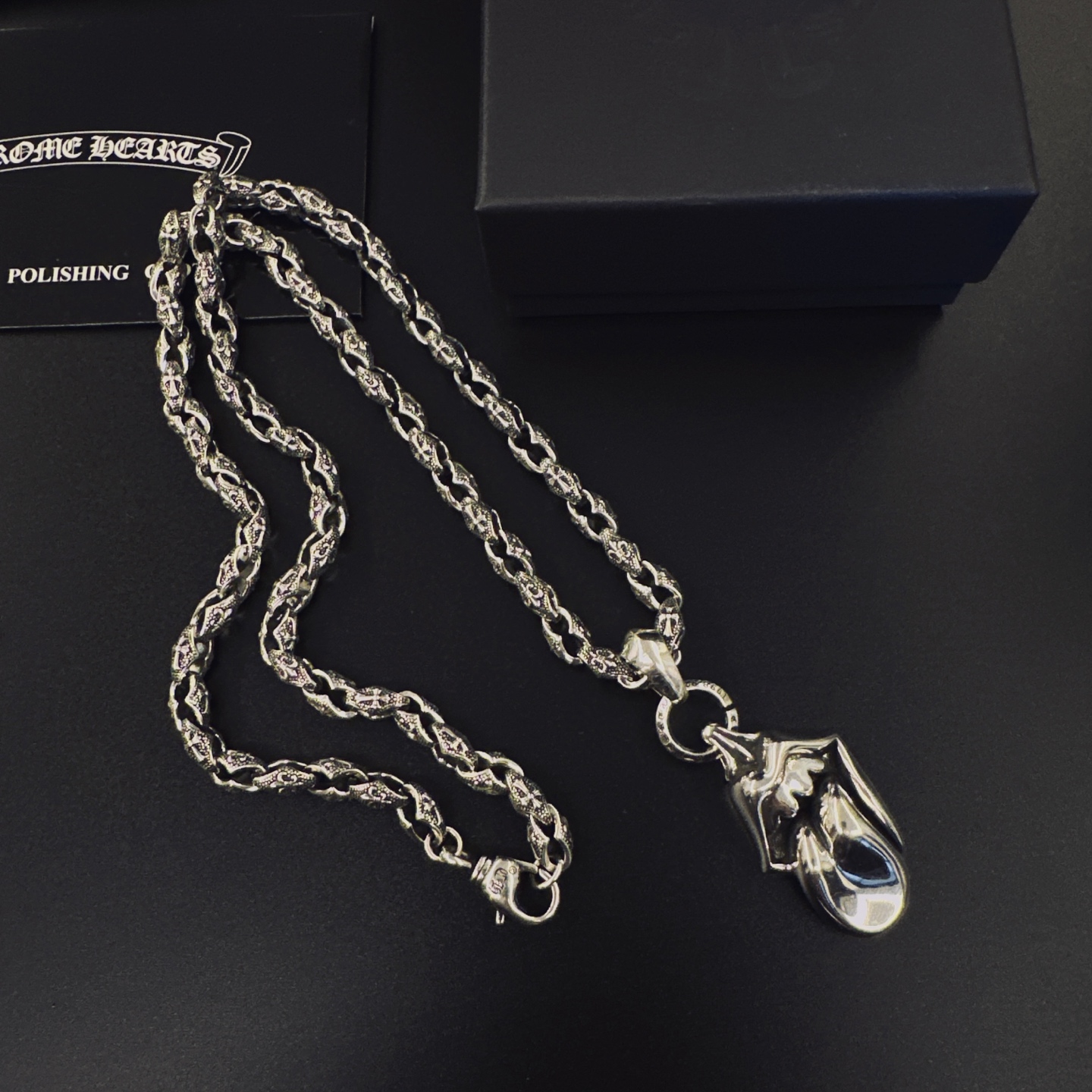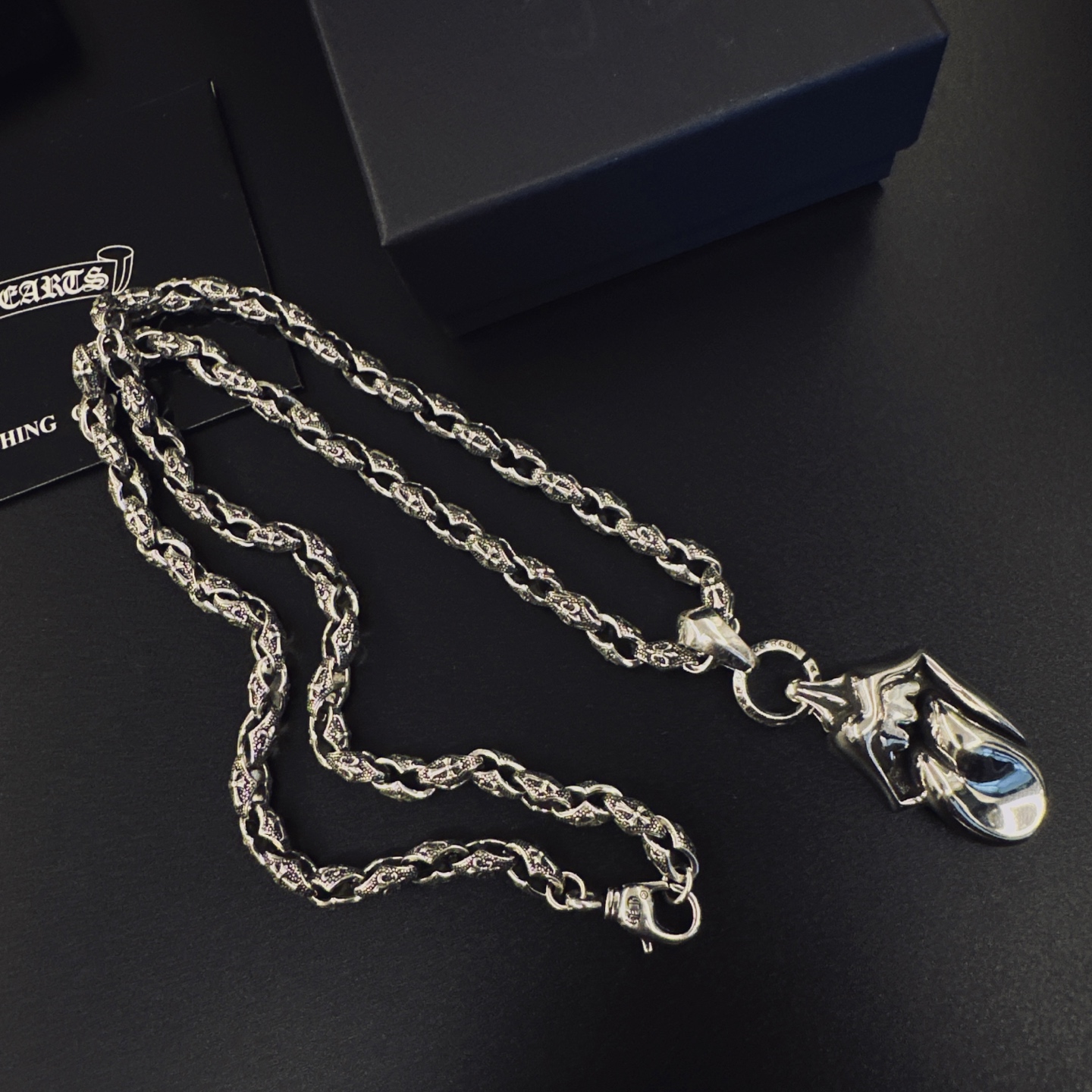 这款首饰是AAAAA 1:1 质量 (非常棒). 使用了和原版一模一样的材料. 商标部分也保持了和克罗心/Chrome Hearts一样. 图片拍摄是实物首饰拍摄, 您所收到的实物保证和我们图片一模一样.