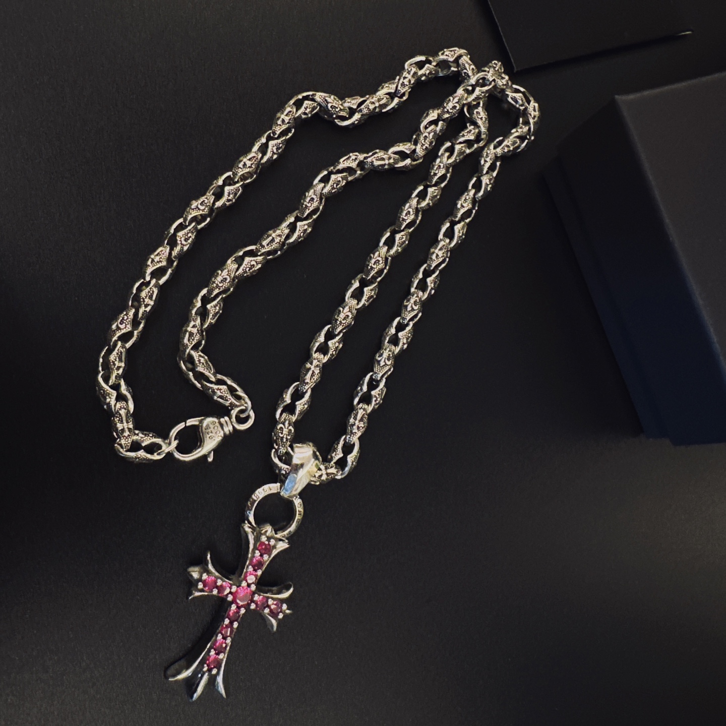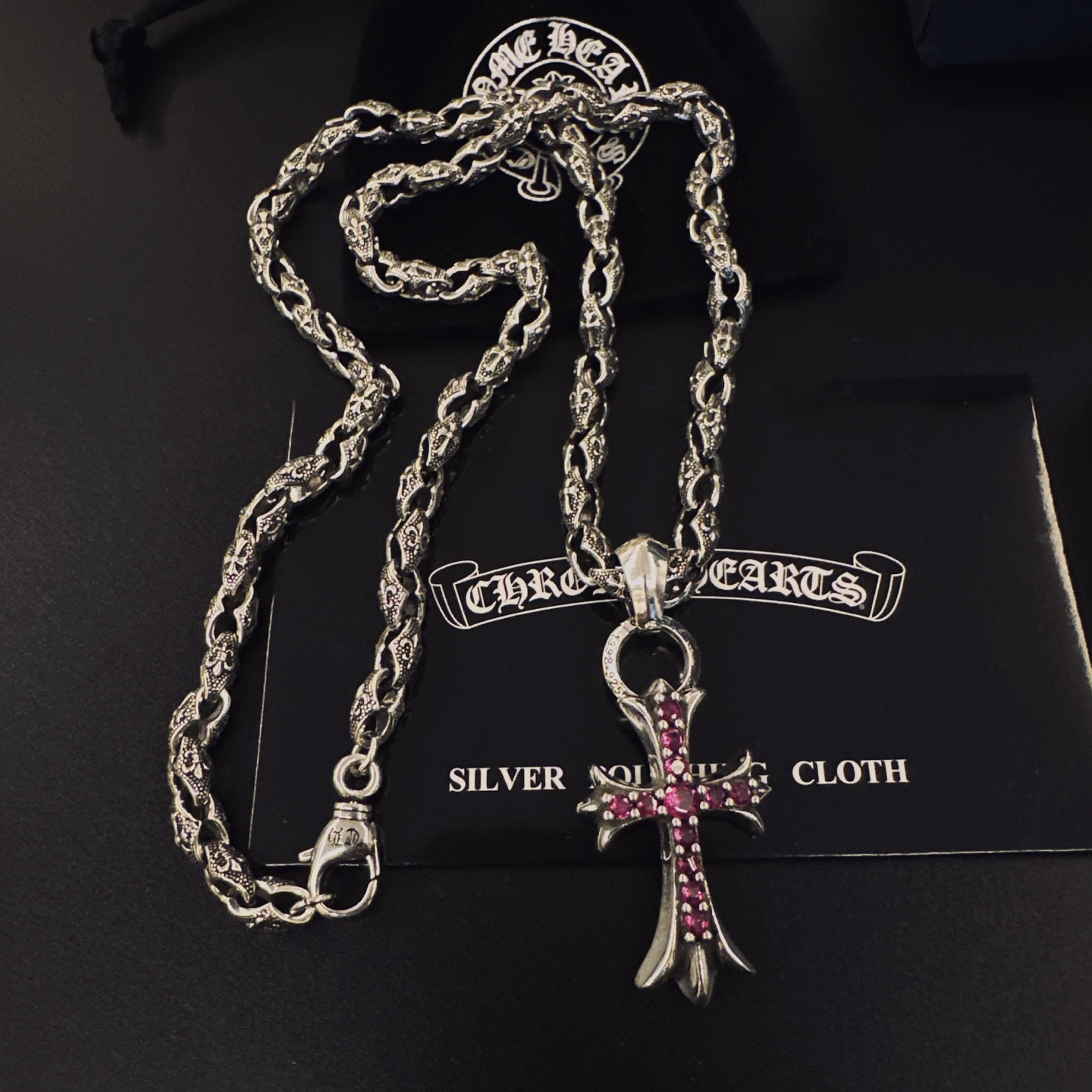 这款首饰是AAAAA 1:1 质量 (非常棒). 使用了和原版一模一样的材料. 商标部分也保持了和克罗心/Chrome Hearts一样. 图片拍摄是实物首饰拍摄, 您所收到的实物保证和我们图片一模一样.
