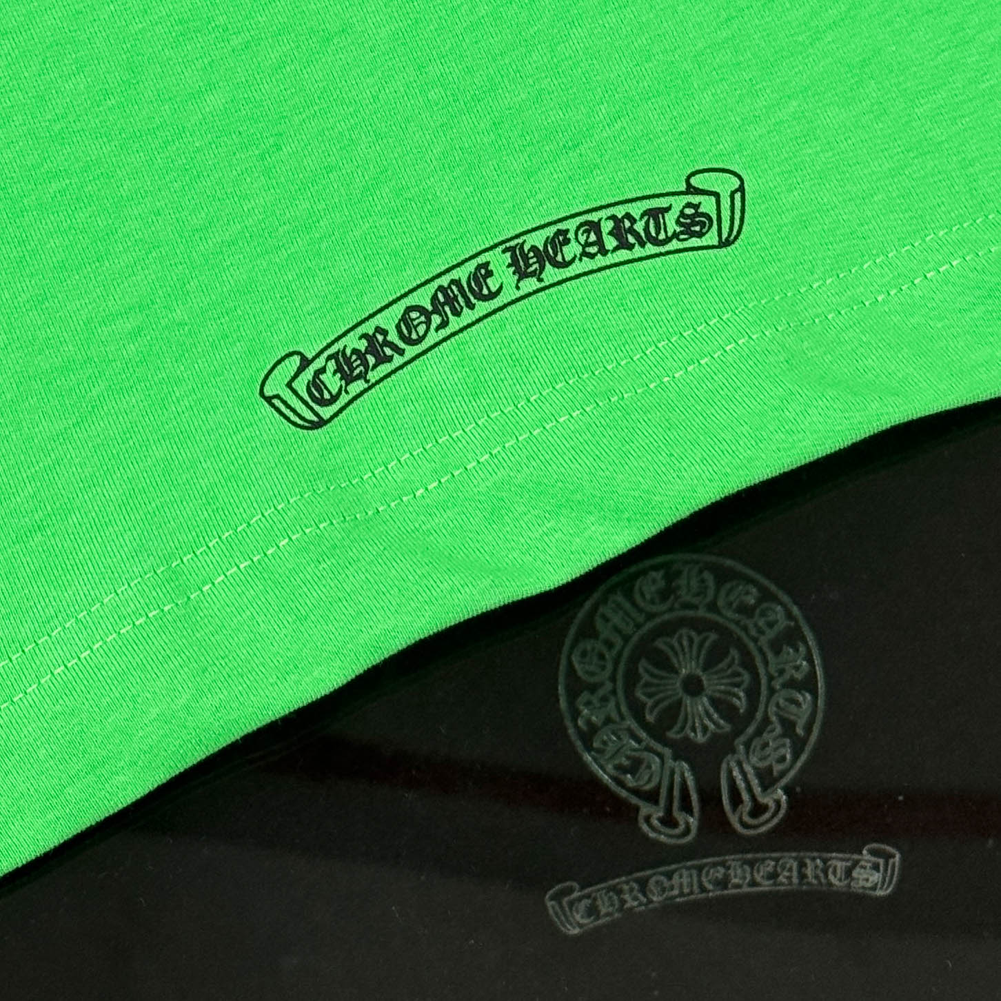 这款衣服是AAAAA 1:1 质量 (非常棒). 使用了和原版一模一样的材料. 商标部分也保持了和克罗心/Chrome Hearts一样. 图片拍摄是实物衣服拍摄, 您所收到的实物保证和我们图片一模一样.