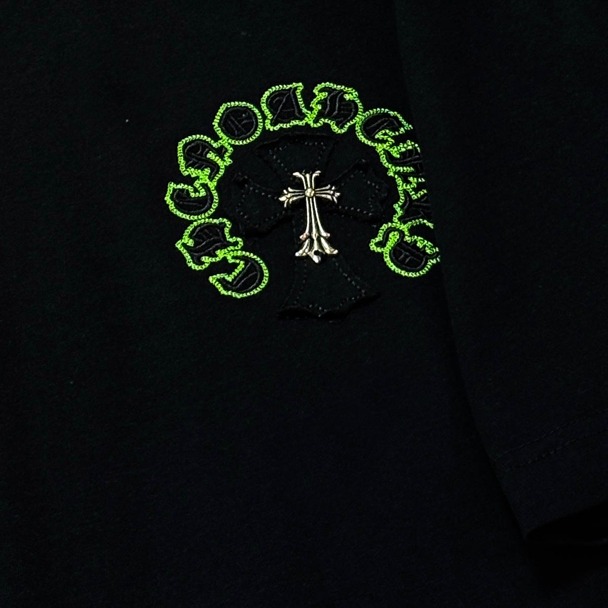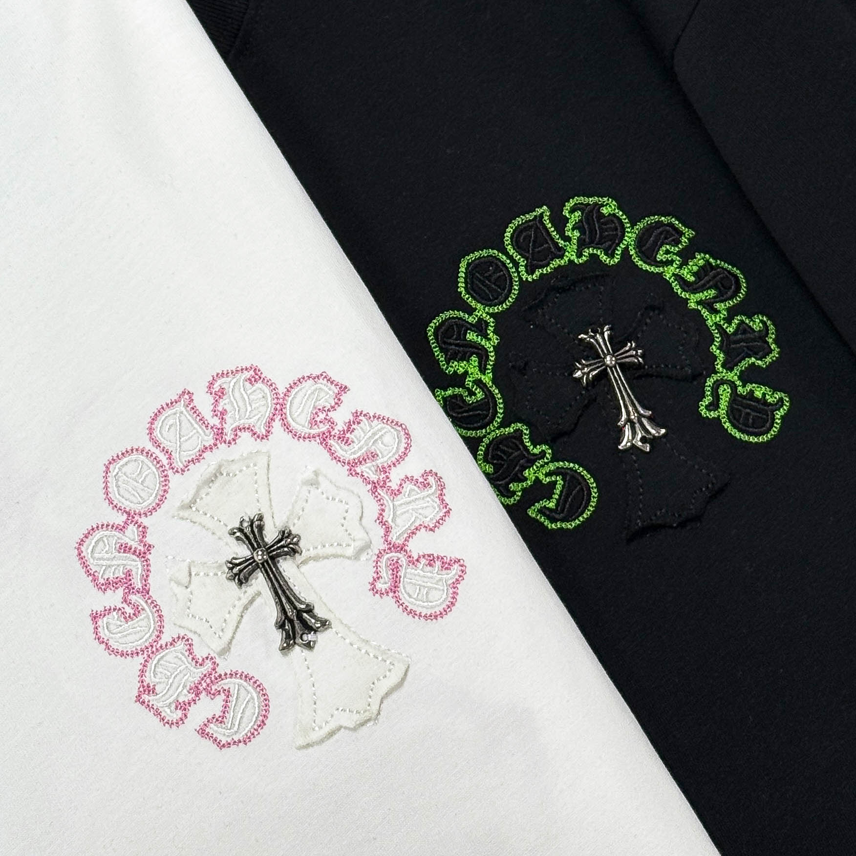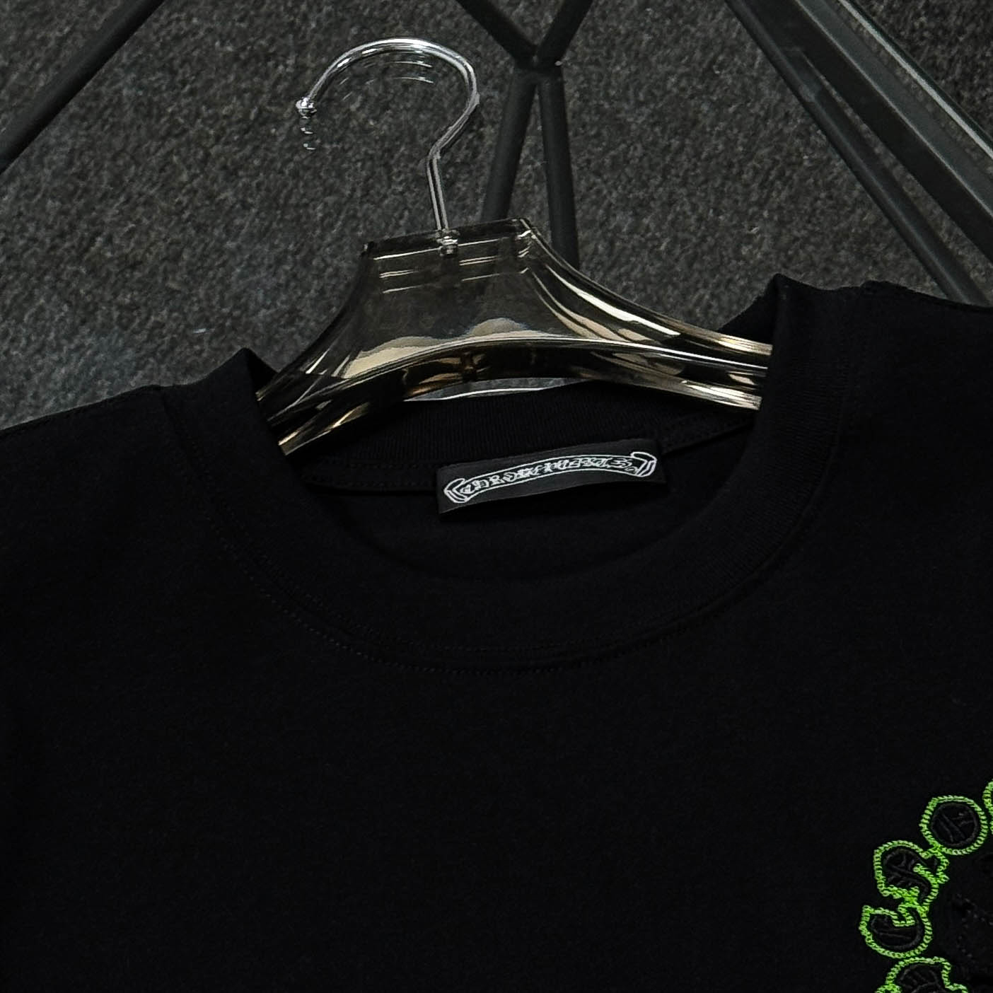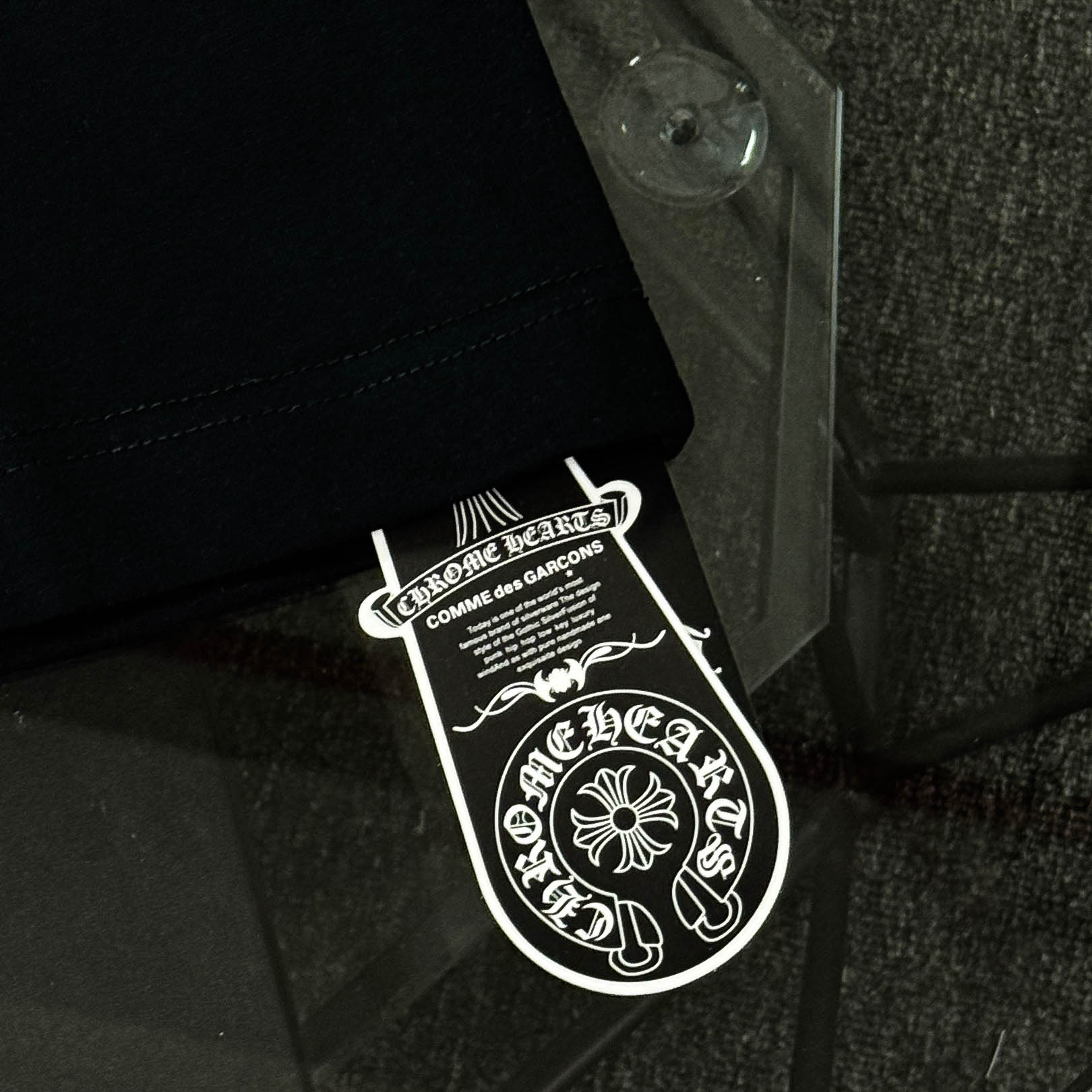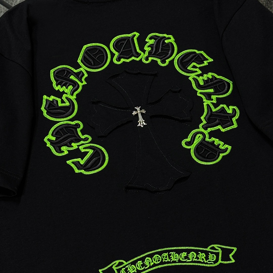 这款衣服是AAAAA 1:1 质量 (非常棒). 使用了和原版一模一样的材料. 商标部分也保持了和克罗心/Chrome Hearts一样. 图片拍摄是实物衣服拍摄, 您所收到的实物保证和我们图片一模一样.