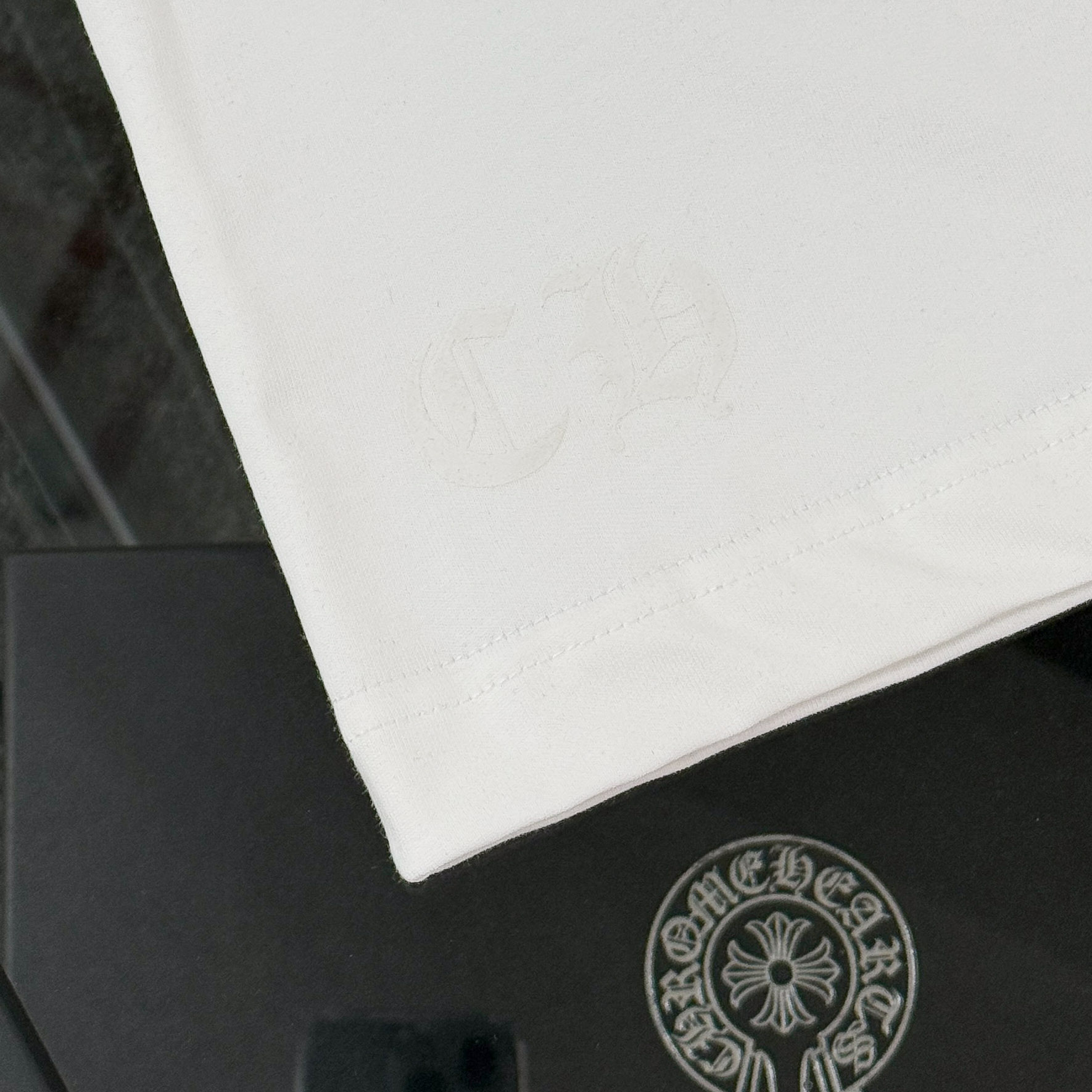 这款衣服是AAAAA 1:1 质量 (非常棒). 使用了和原版一模一样的材料. 商标部分也保持了和克罗心/Chrome Hearts一样. 图片拍摄是实物衣服拍摄, 您所收到的实物保证和我们图片一模一样.