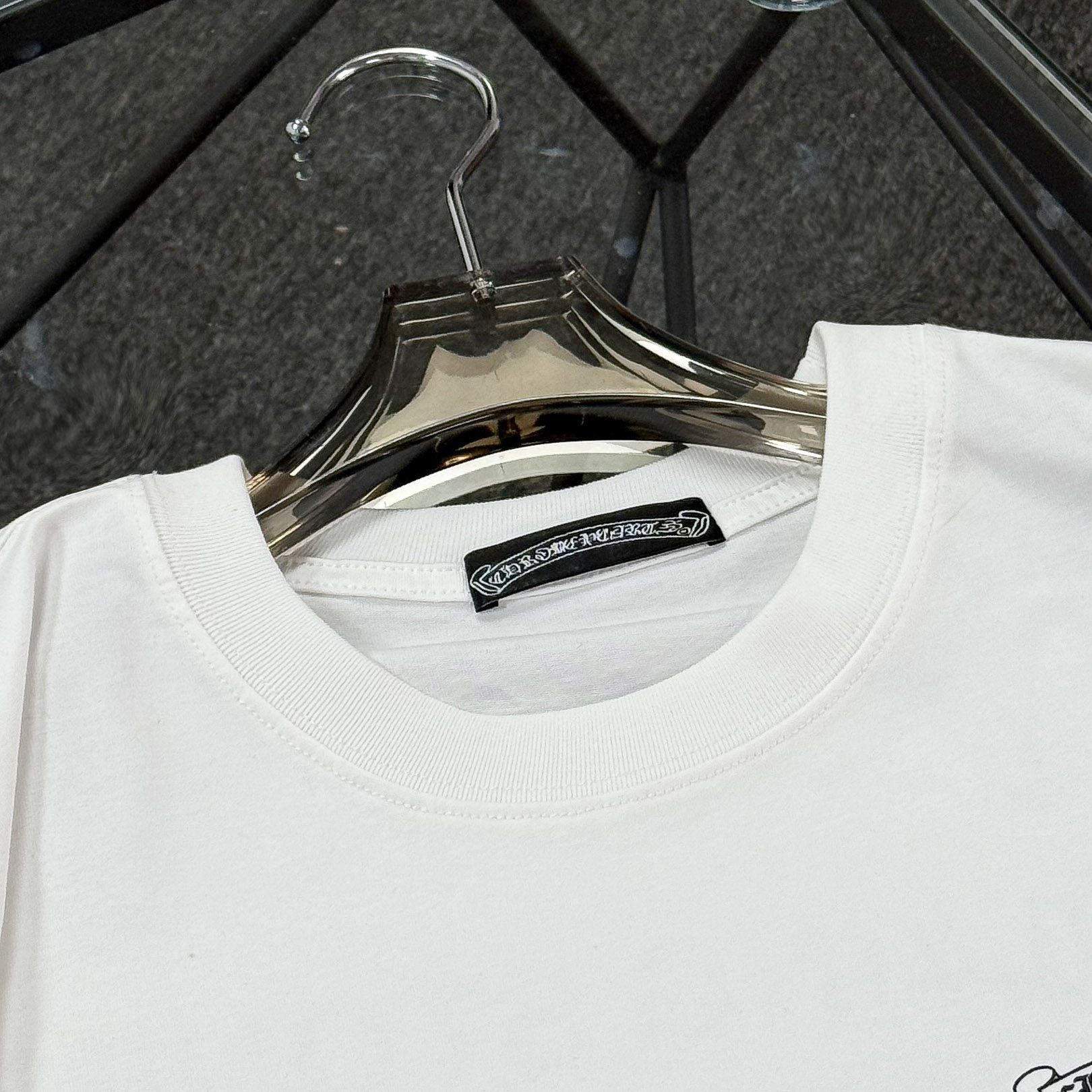 这款衣服是AAAAA 1:1 质量 (非常棒). 使用了和原版一模一样的材料. 商标部分也保持了和克罗心/Chrome Hearts一样. 图片拍摄是实物衣服拍摄, 您所收到的实物保证和我们图片一模一样.