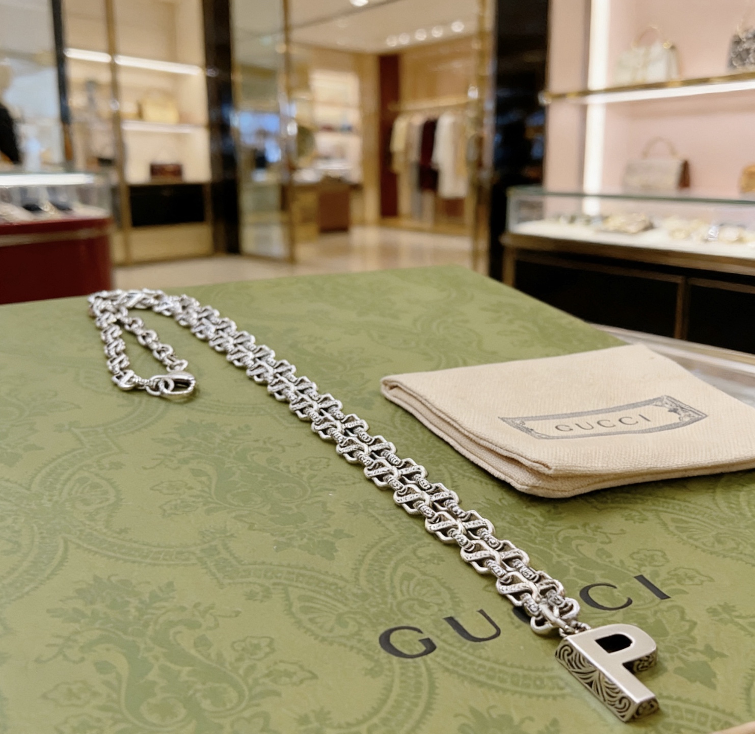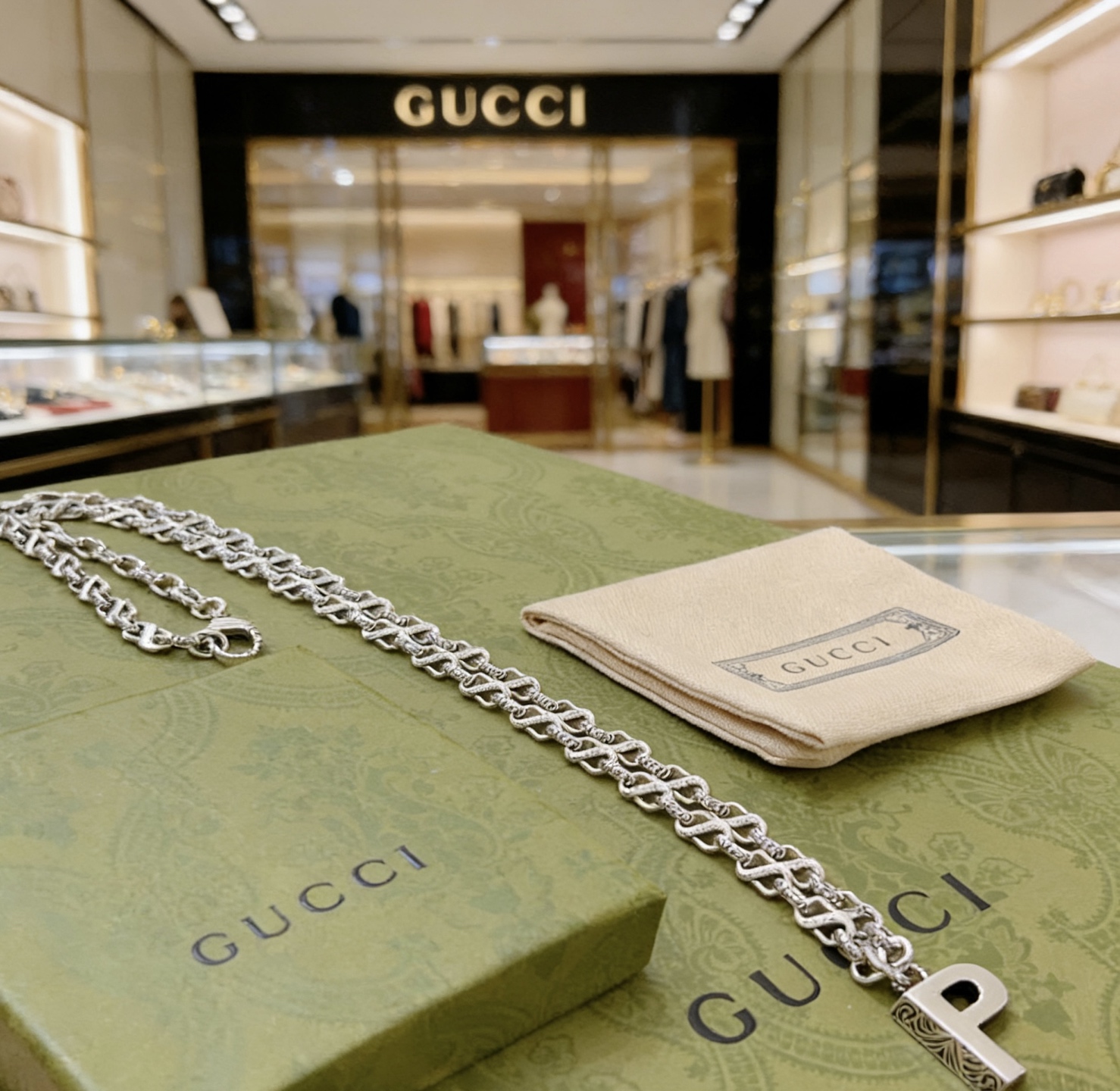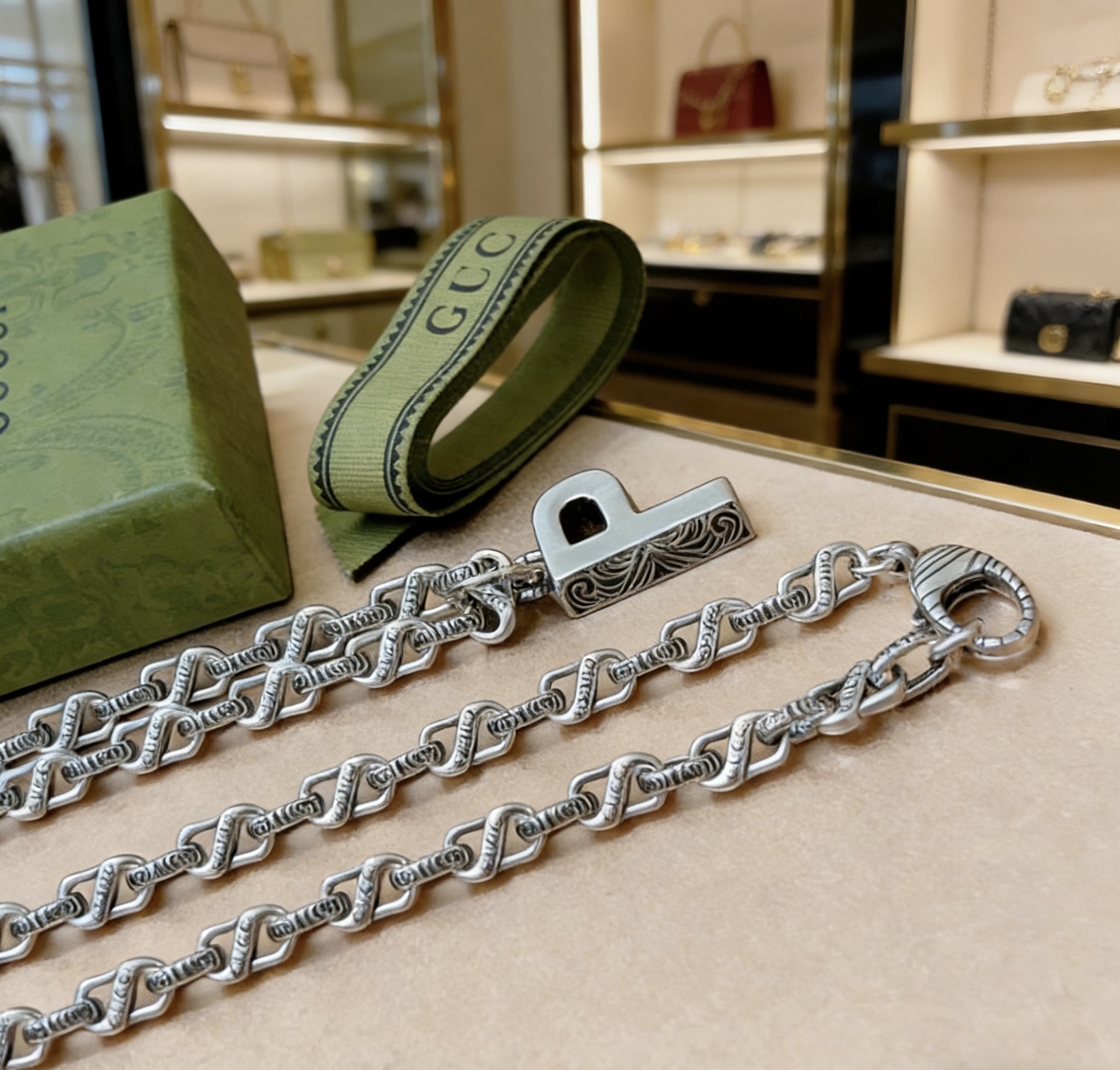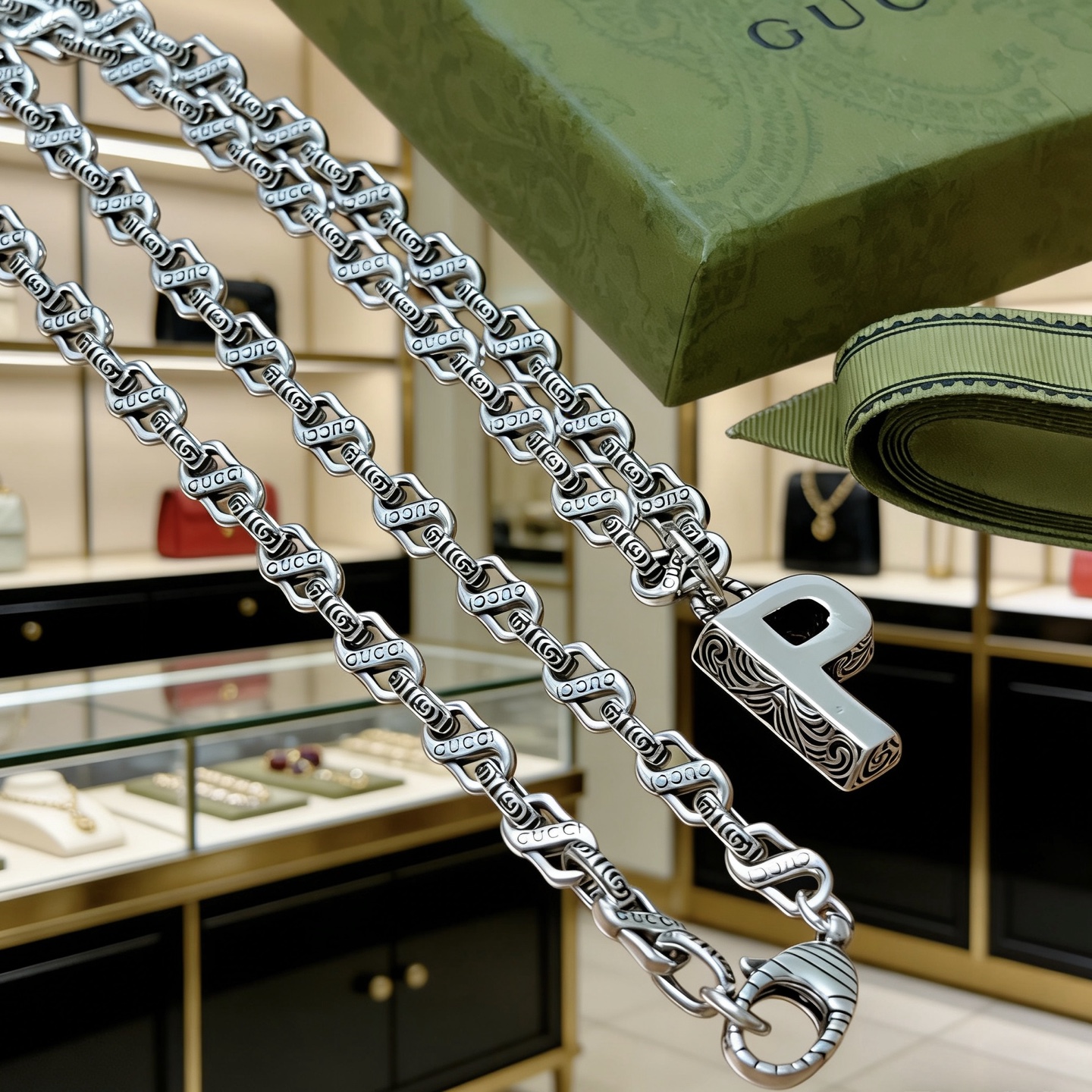 这款首饰是AAAAA 1:1 质量 (非常棒). 使用了和原版一模一样的材料. 商标部分也保持了和古奇/Gucci一样. 图片拍摄是实物首饰拍摄, 您所收到的实物保证和我们图片一模一样.