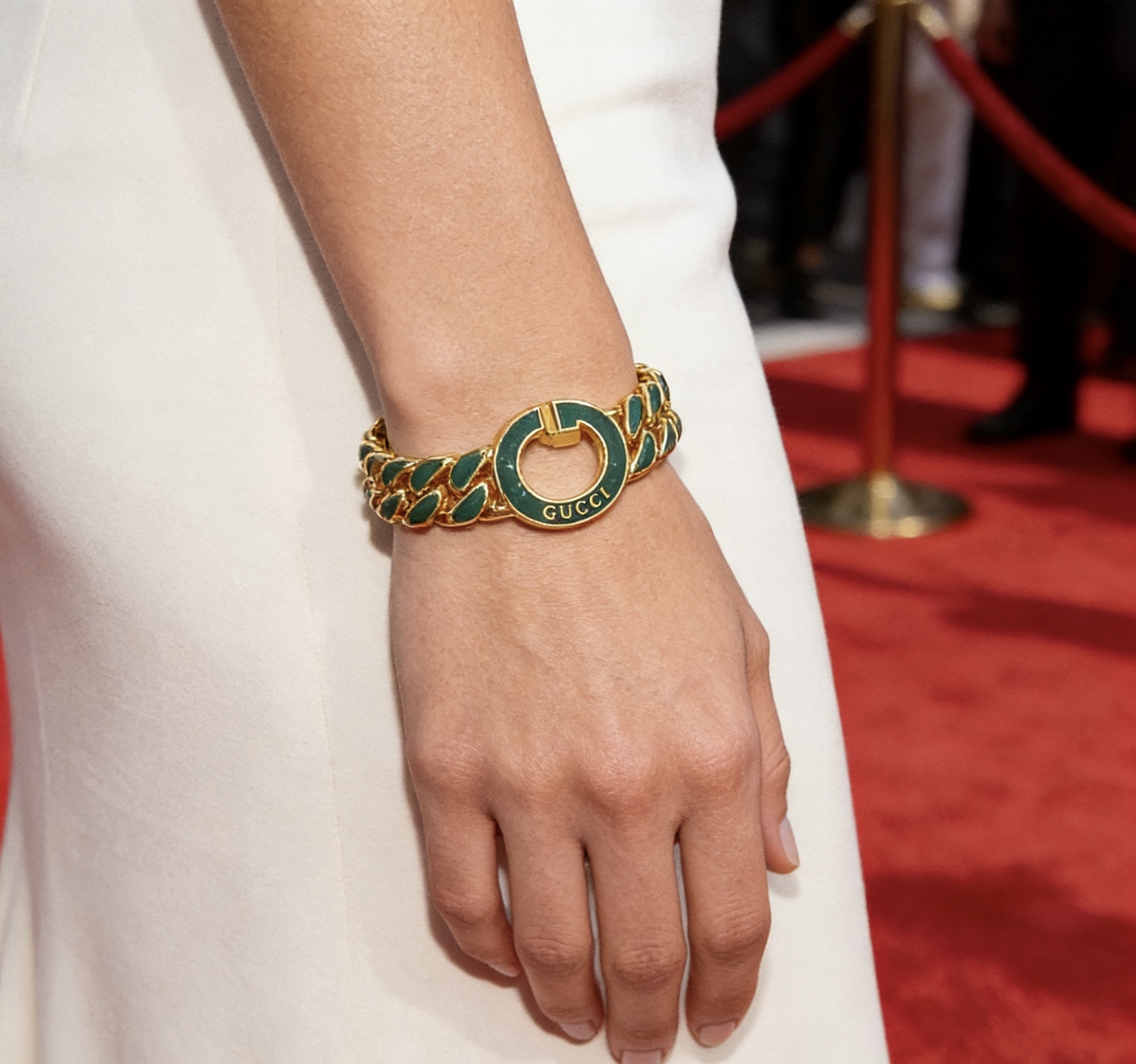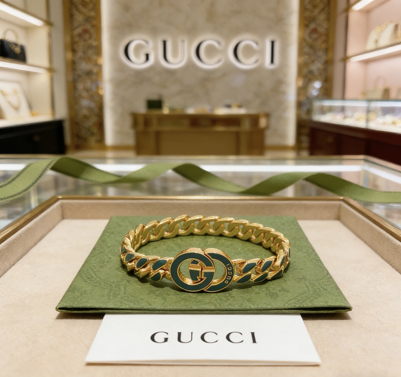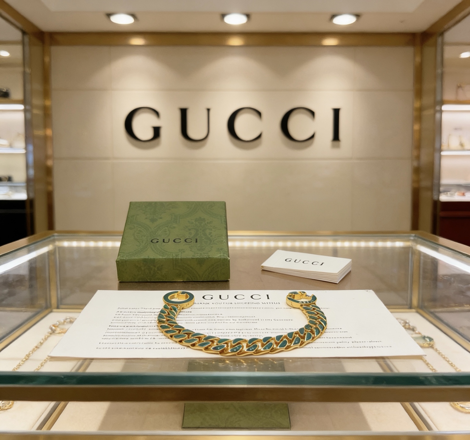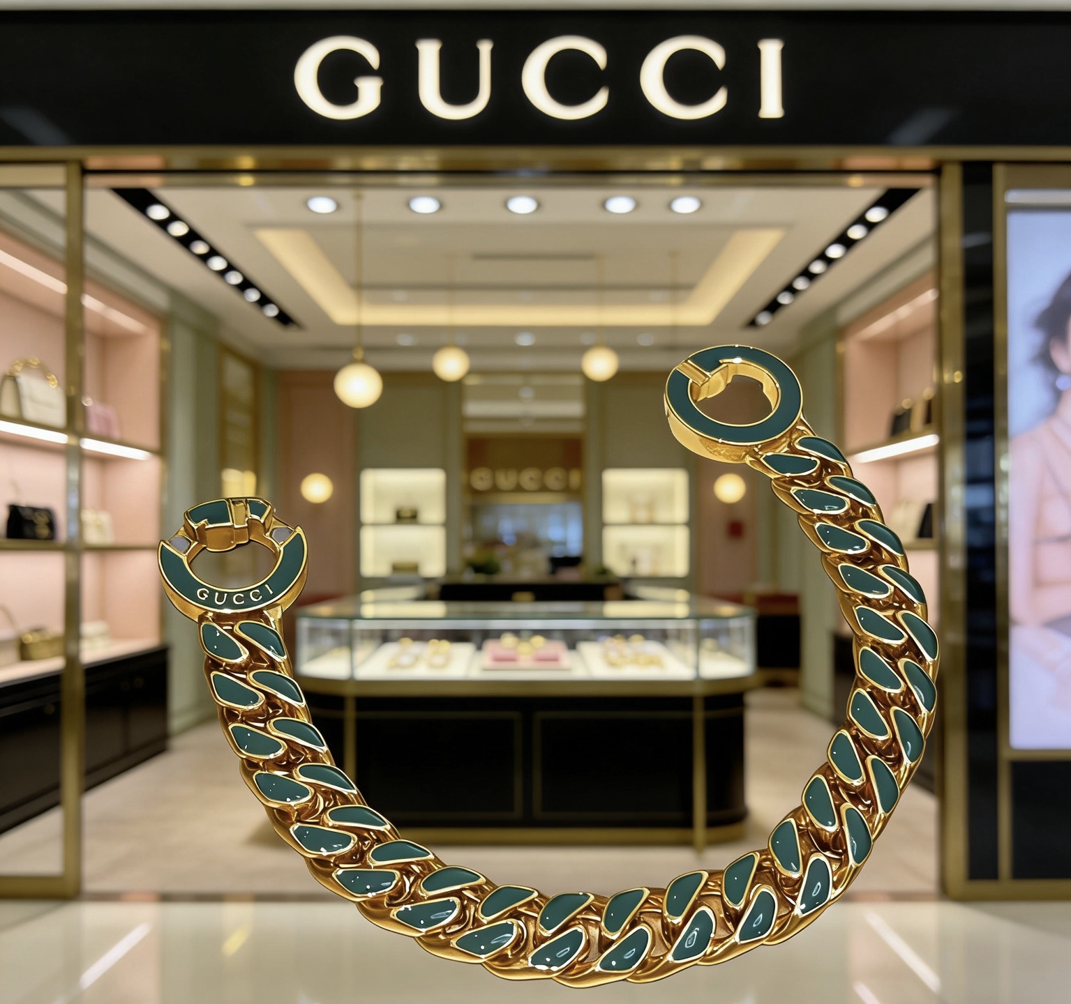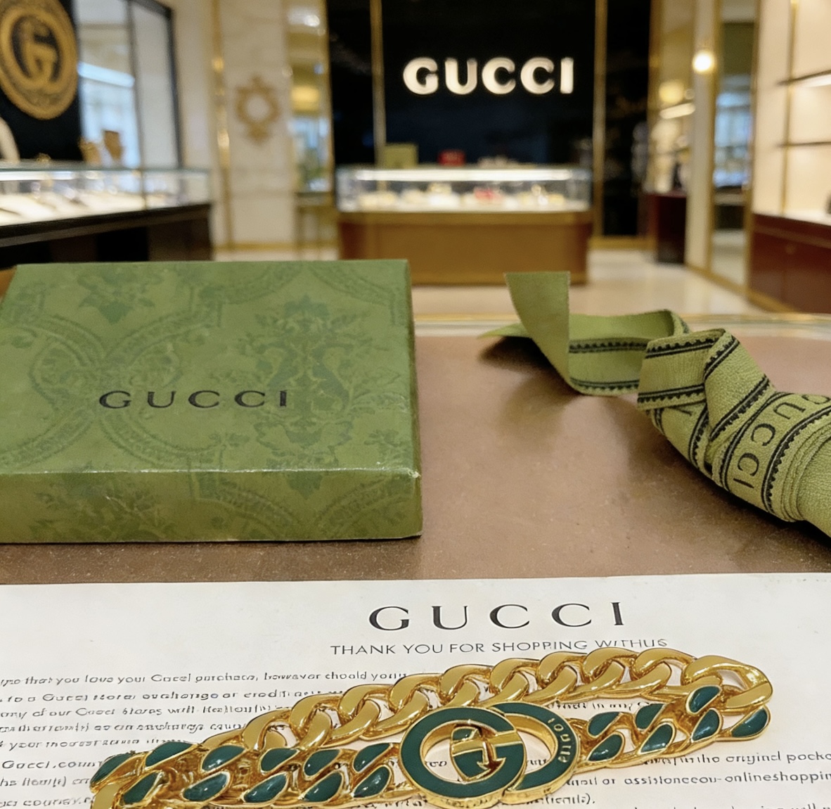 这款首饰是AAAAA 1:1 质量 (非常棒). 使用了和原版一模一样的材料. 商标部分也保持了和古奇/Gucci一样. 图片拍摄是实物首饰拍摄, 您所收到的实物保证和我们图片一模一样.