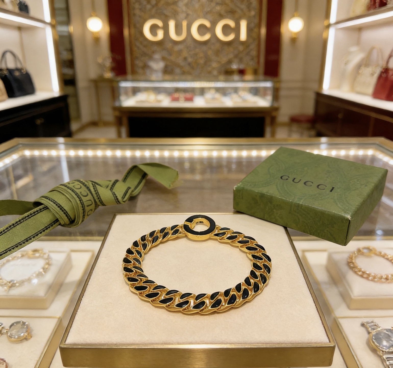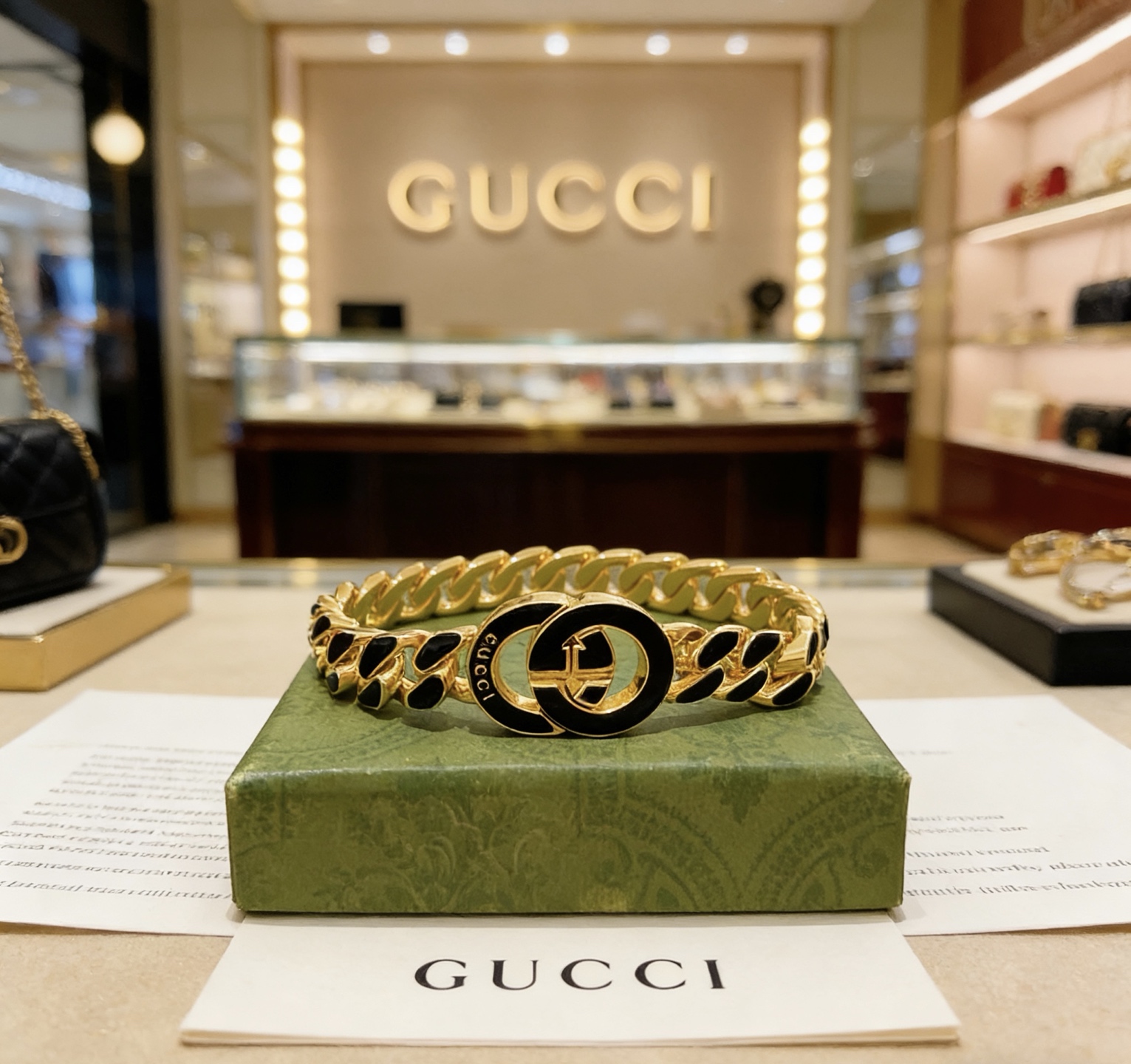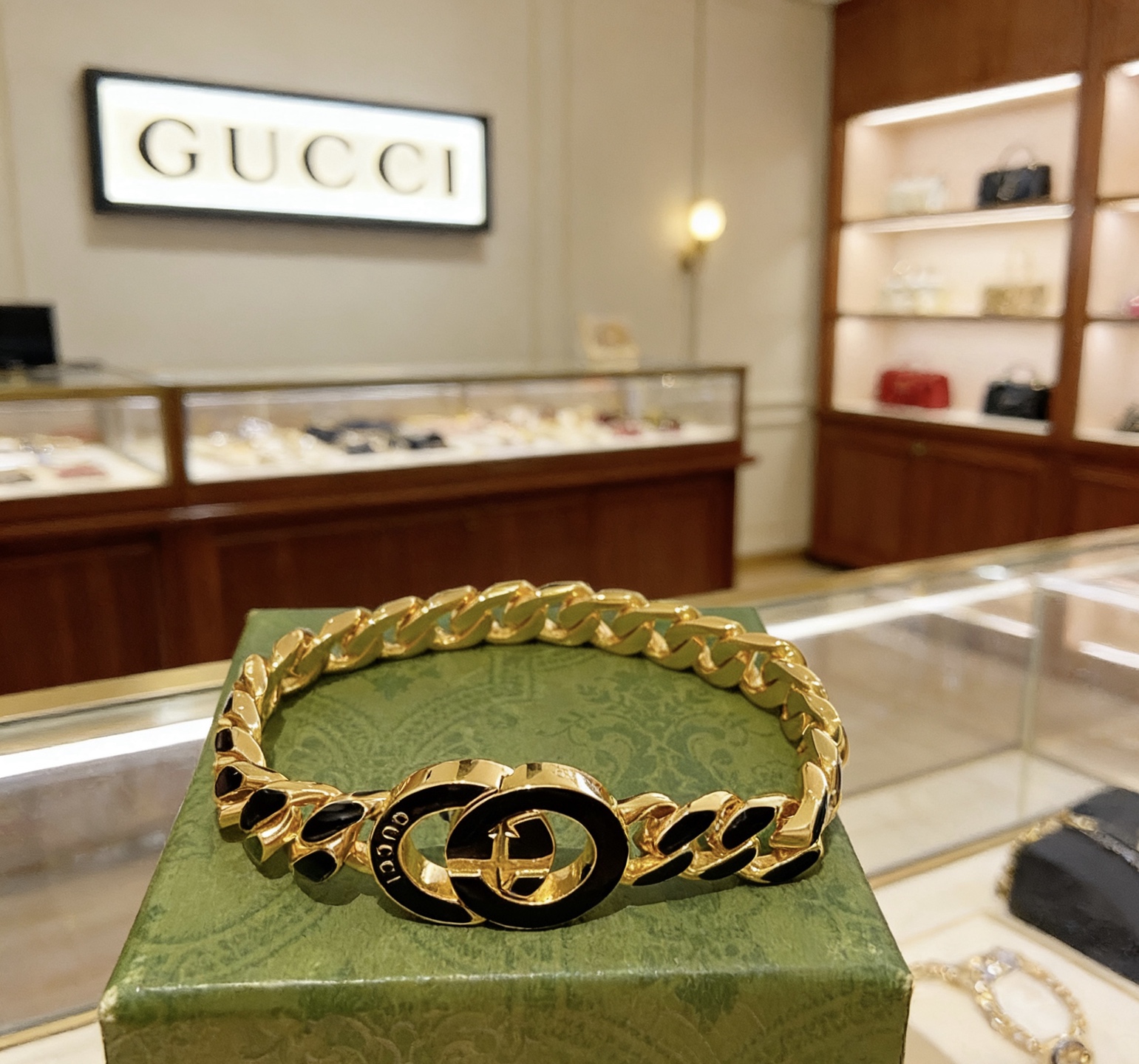 这款首饰是AAAAA 1:1 质量 (非常棒). 使用了和原版一模一样的材料. 商标部分也保持了和古奇/Gucci一样. 图片拍摄是实物首饰拍摄, 您所收到的实物保证和我们图片一模一样.