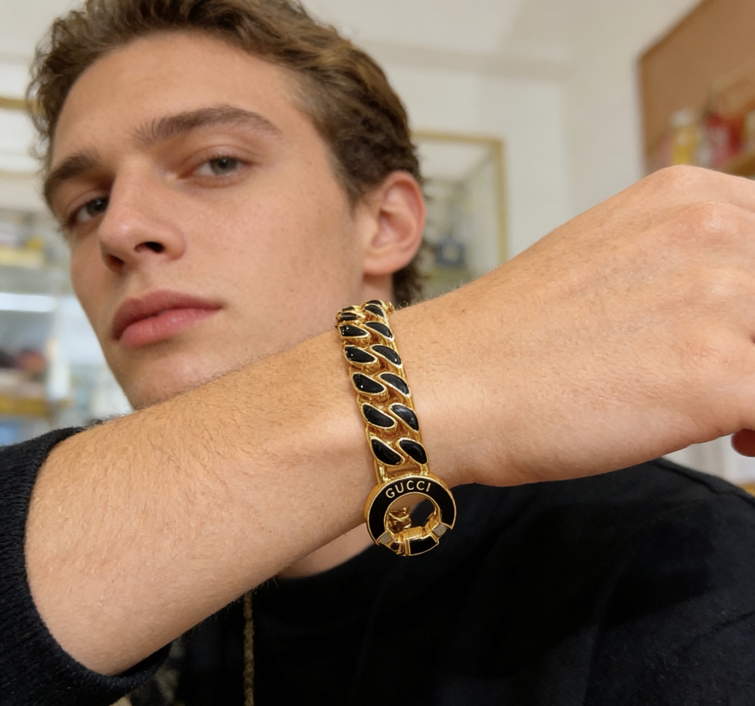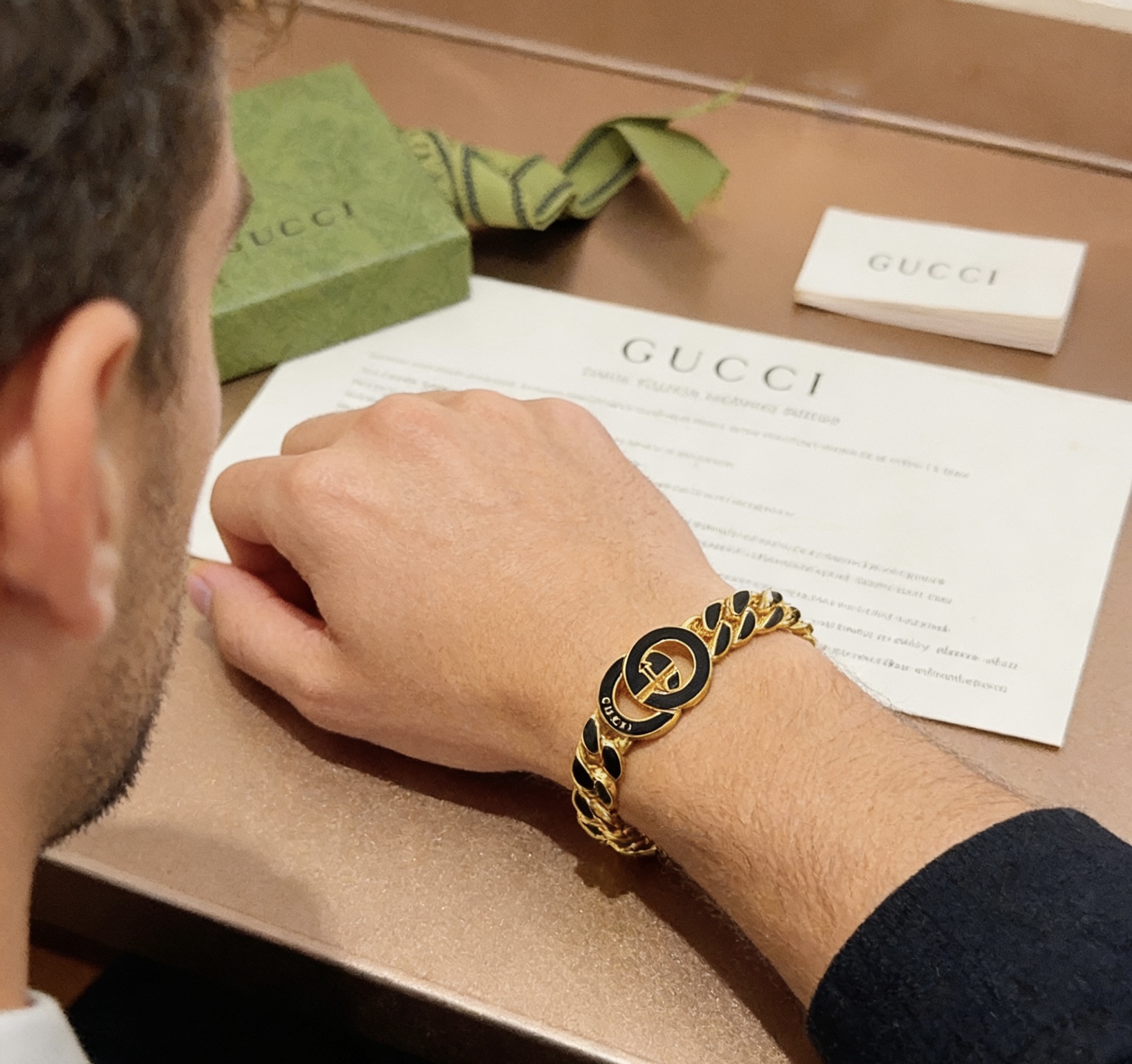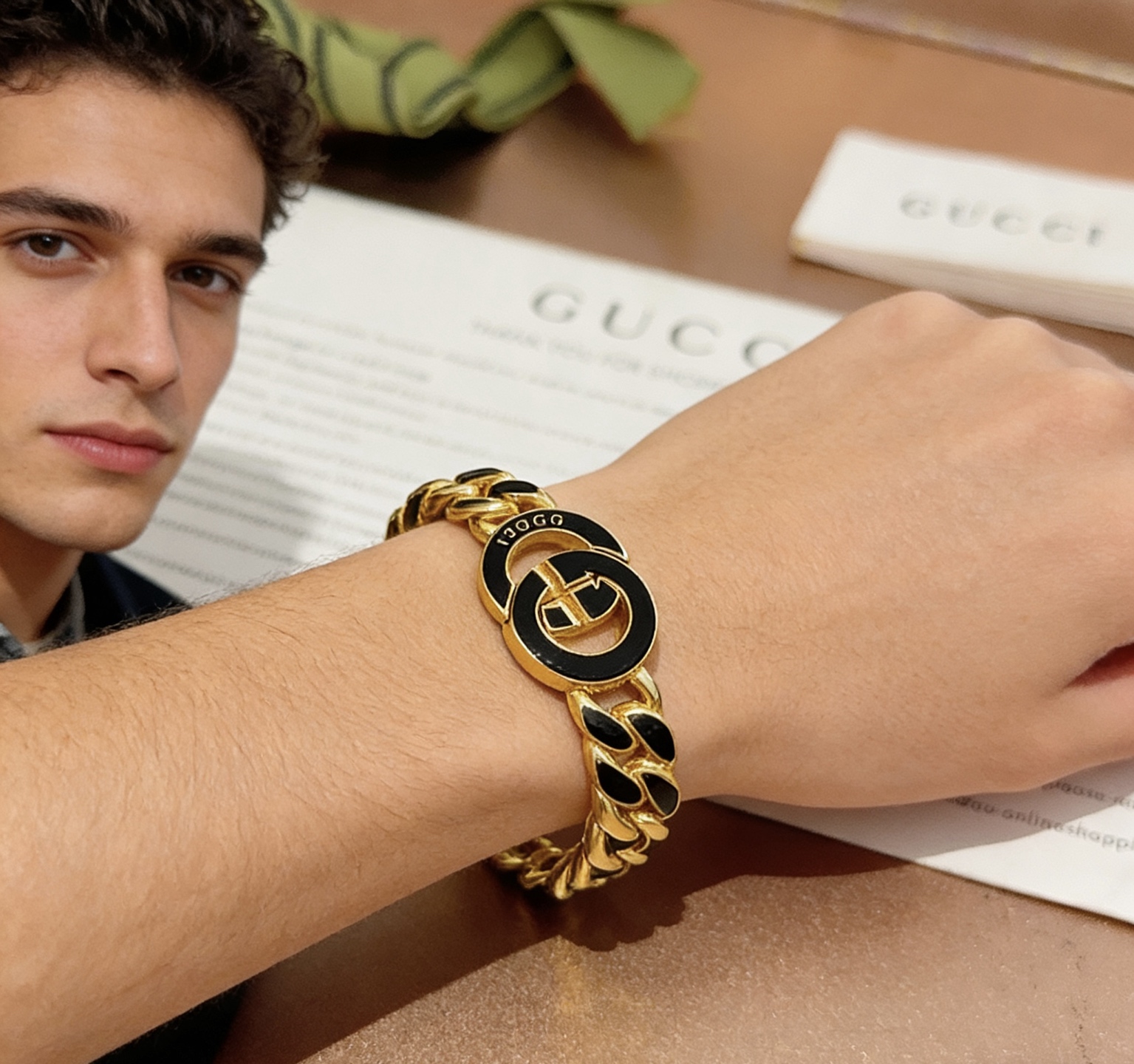 这款首饰是AAAAA 1:1 质量 (非常棒). 使用了和原版一模一样的材料. 商标部分也保持了和古奇/Gucci一样. 图片拍摄是实物首饰拍摄, 您所收到的实物保证和我们图片一模一样.
