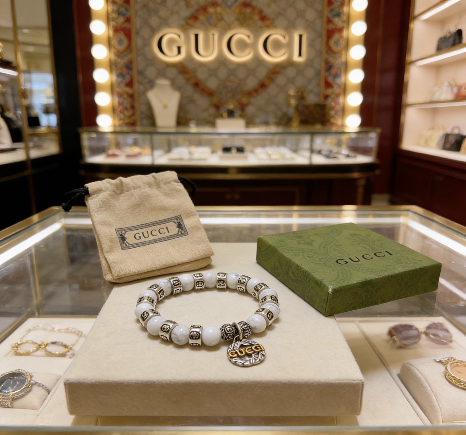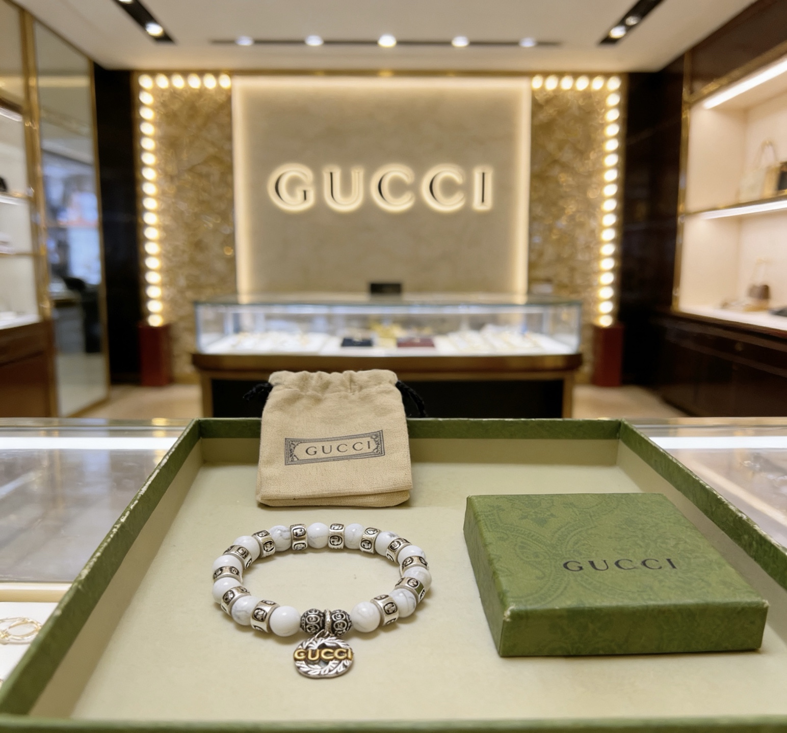 这款首饰是AAAAA 1:1 质量 (非常棒). 使用了和原版一模一样的材料. 商标部分也保持了和古奇/Gucci一样. 图片拍摄是实物首饰拍摄, 您所收到的实物保证和我们图片一模一样.