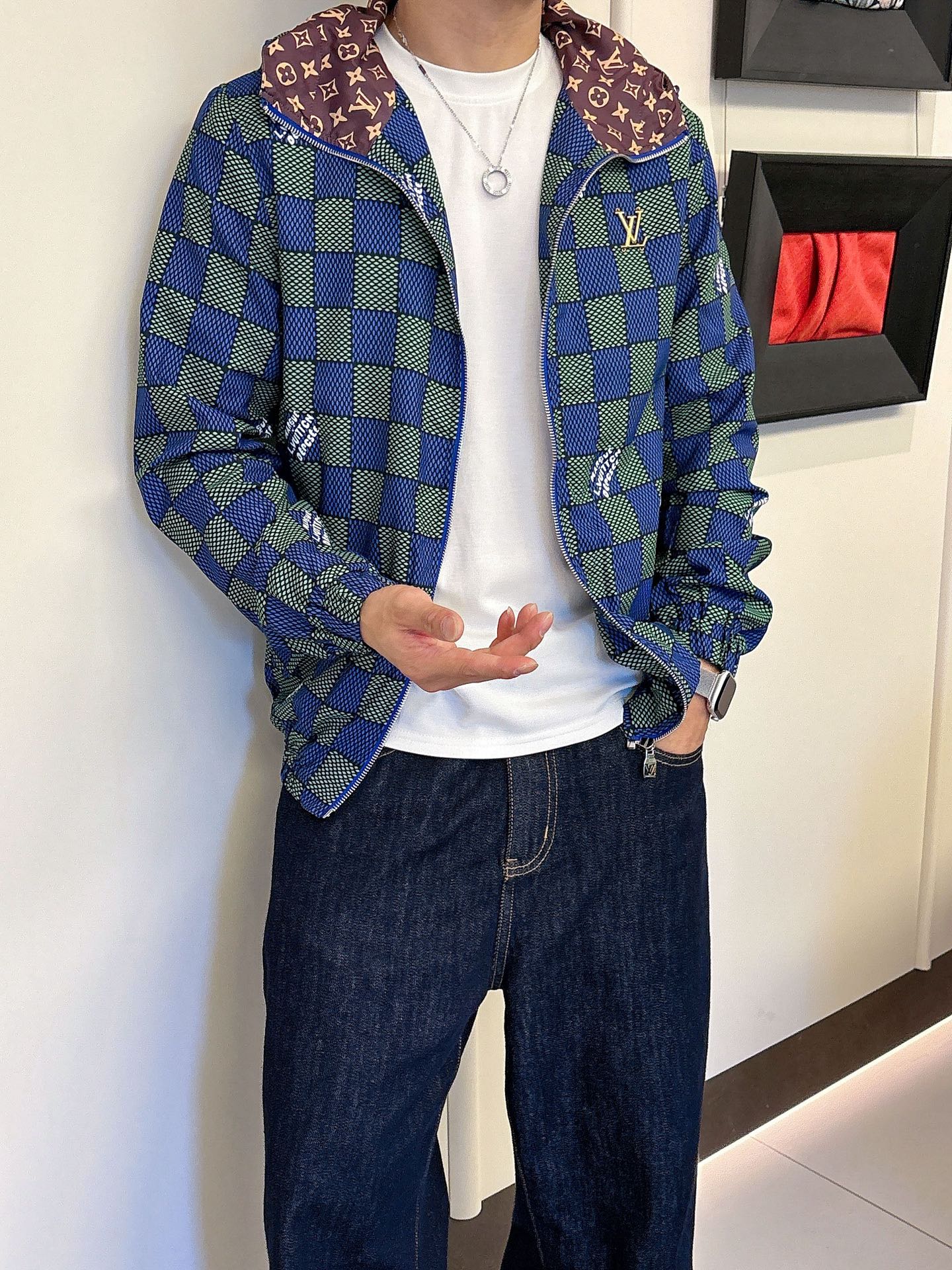 这款衣服是AAAAA 1:1 质量 (非常棒). 使用了和原版一模一样的材料. 商标部分也保持了和路易威登/Louis Vuitton一样. 图片拍摄是实物衣服拍摄, 您所收到的实物保证和我们图片一模一样.