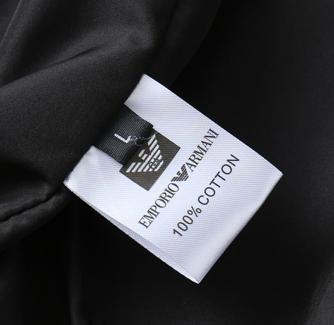 这款衣服是AAAAA 1:1 质量 (非常棒). 使用了和原版一模一样的材料. 商标部分也保持了和阿玛尼/Armani一样. 图片拍摄是实物衣服拍摄, 您所收到的实物保证和我们图片一模一样.
