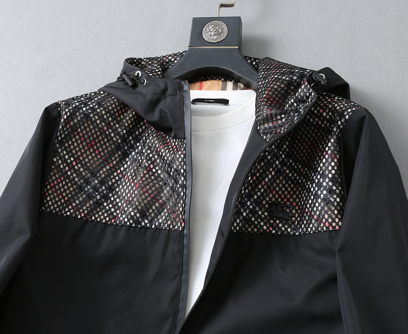 这款衣服是AAAAA 1:1 质量 (非常棒). 使用了和原版一模一样的材料. 商标部分也保持了和巴宝莉/Burberry一样. 图片拍摄是实物衣服拍摄, 您所收到的实物保证和我们图片一模一样.