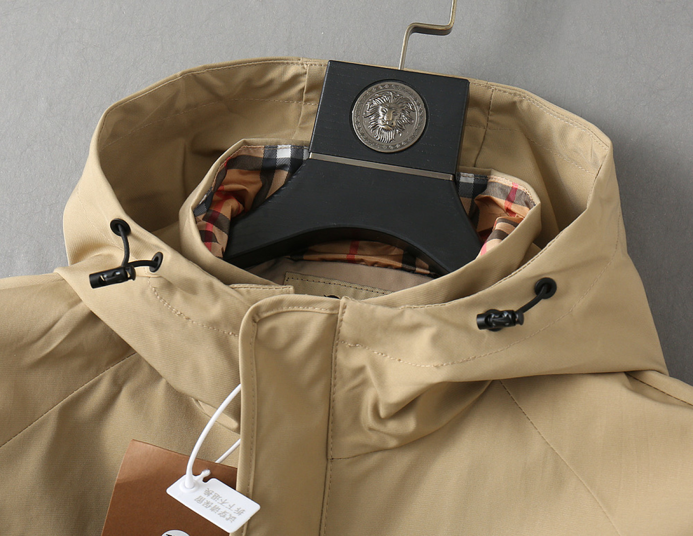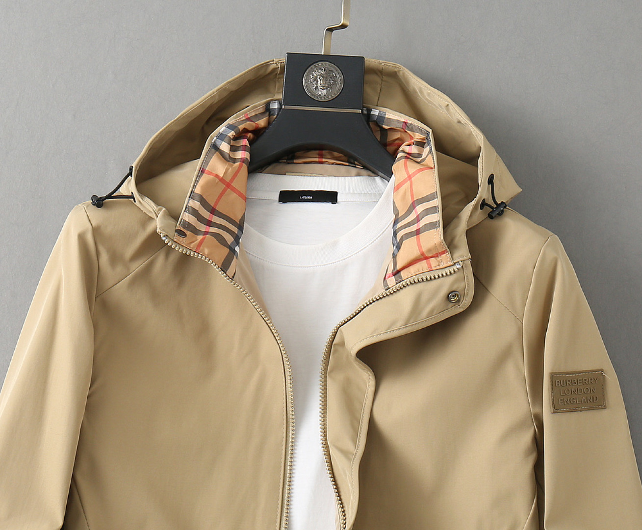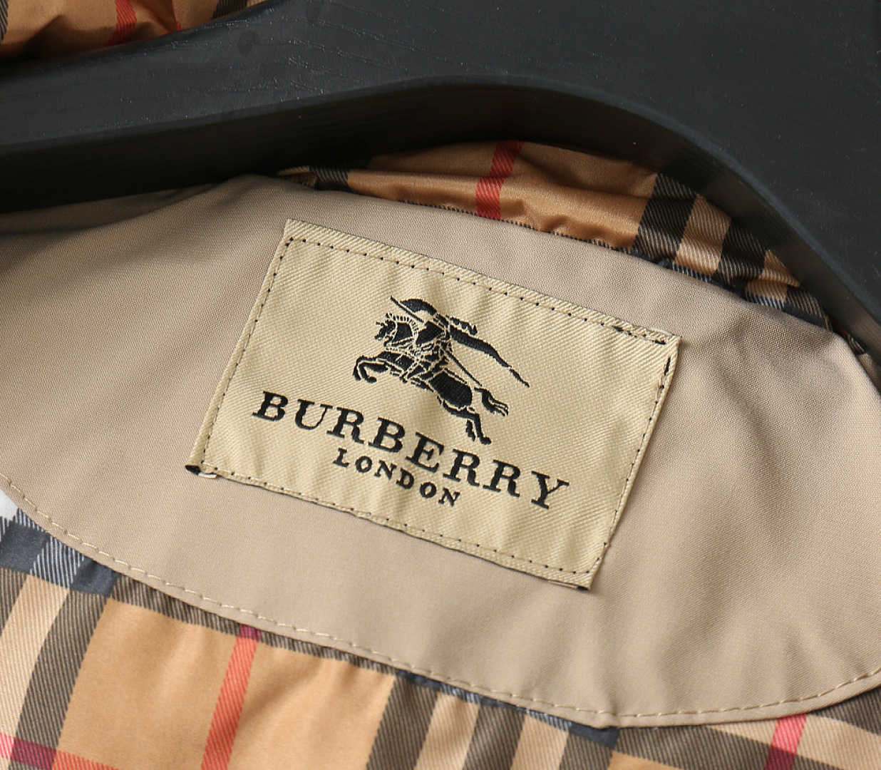 这款衣服是AAAAA 1:1 质量 (非常棒). 使用了和原版一模一样的材料. 商标部分也保持了和巴宝莉/Burberry一样. 图片拍摄是实物衣服拍摄, 您所收到的实物保证和我们图片一模一样.