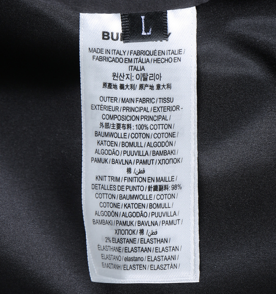 这款衣服是AAAAA 1:1 质量 (非常棒). 使用了和原版一模一样的材料. 商标部分也保持了和巴宝莉/Burberry一样. 图片拍摄是实物衣服拍摄, 您所收到的实物保证和我们图片一模一样.