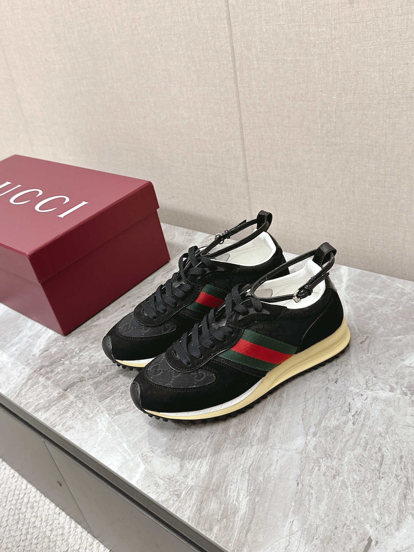 这款鞋子是AAAAA 1:1 质量 (非常棒). 使用了和原版一模一样的材料. 商标部分也保持了和古奇/Gucci一样. 图片拍摄是实物鞋子拍摄, 您所收到的实物保证和我们图片一模一样.