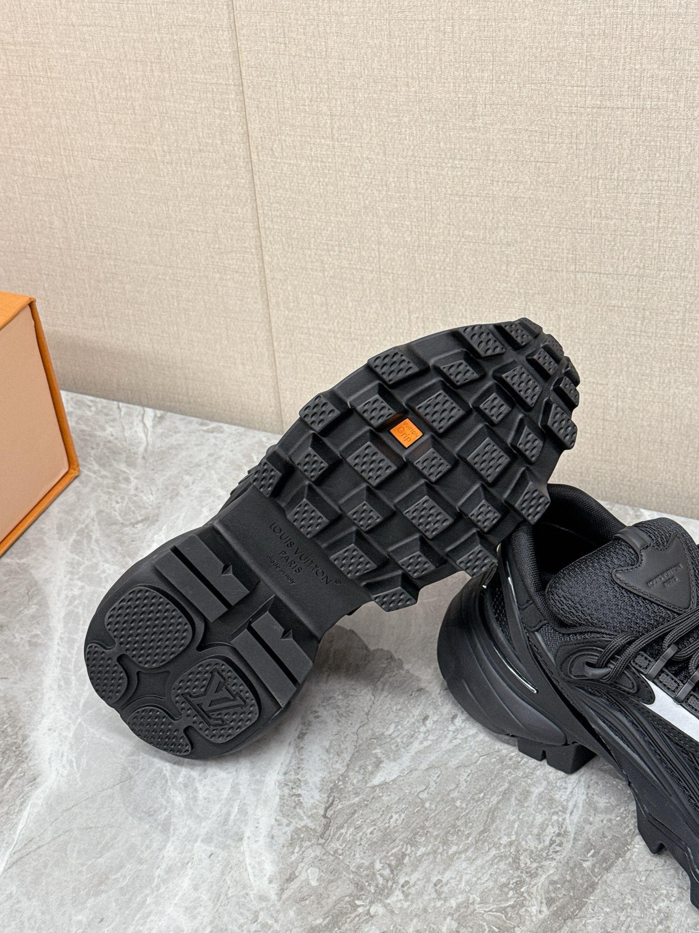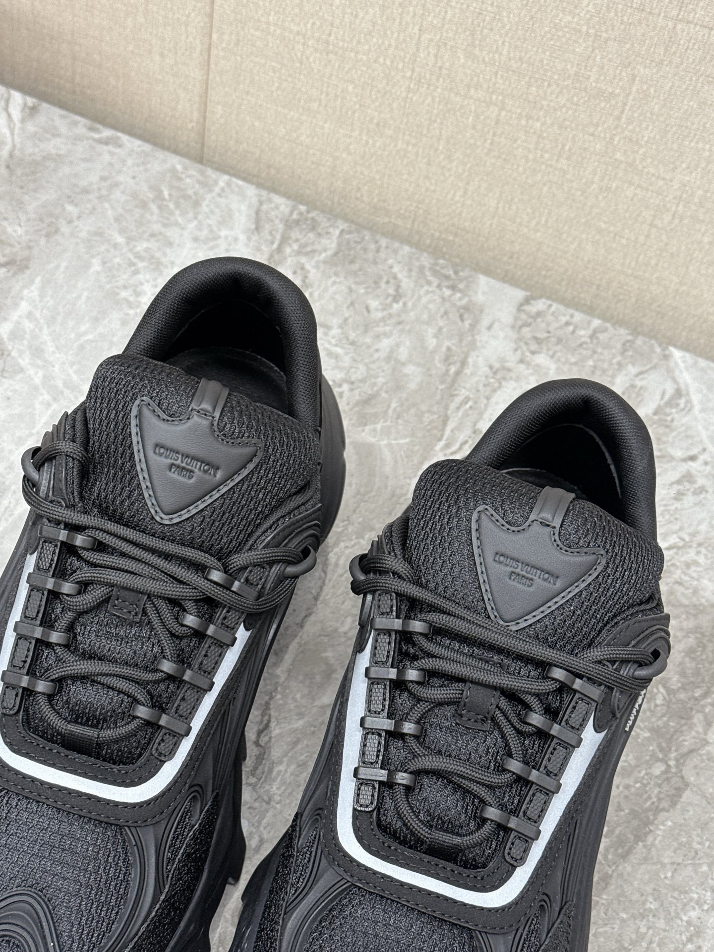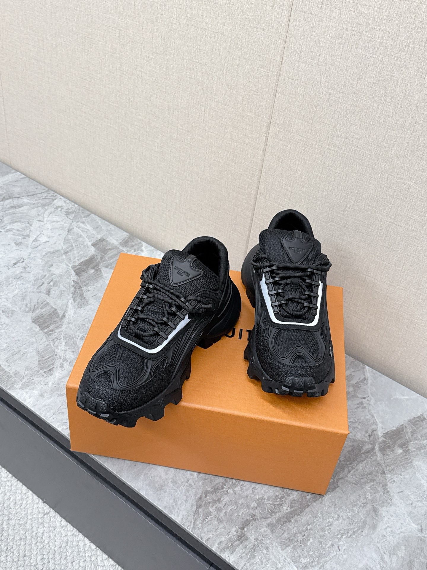 这款鞋子是AAAAA 1:1 质量 (非常棒). 使用了和原版一模一样的材料. 商标部分也保持了和路易威登/Louis Vuitton一样. 图片拍摄是实物鞋子拍摄, 您所收到的实物保证和我们图片一模一样.