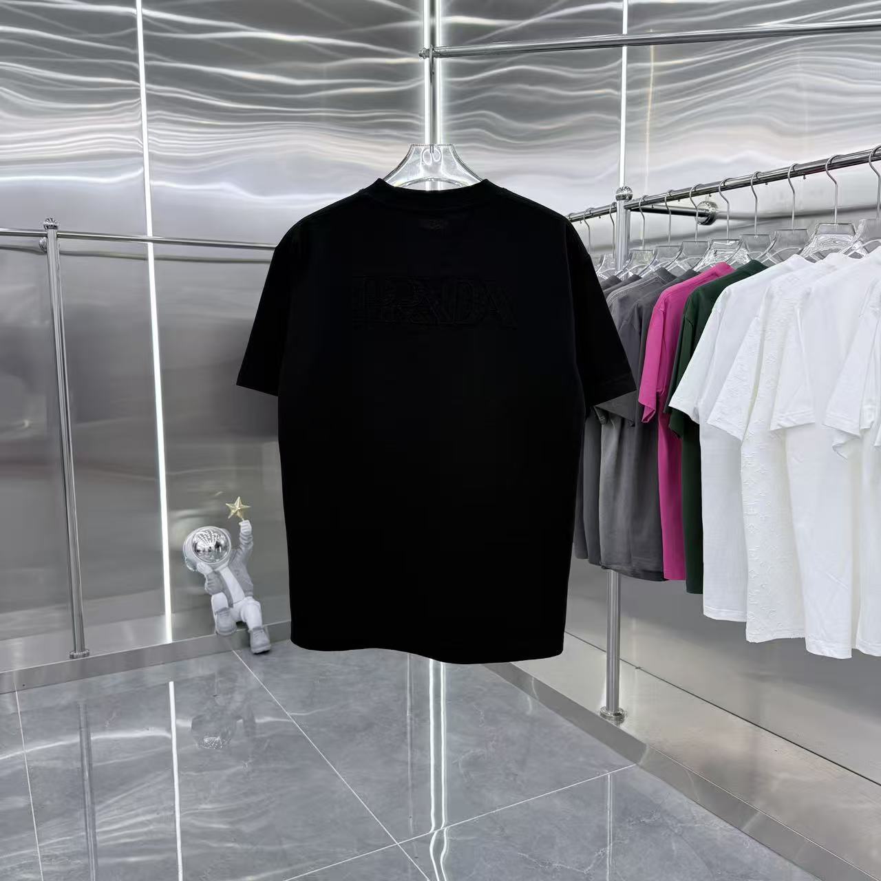 这款衣服是AAAAA 1:1 质量 (非常棒). 使用了和原版一模一样的材料. 商标部分也保持了和普拉达/Prada一样. 图片拍摄是实物衣服拍摄, 您所收到的实物保证和我们图片一模一样.