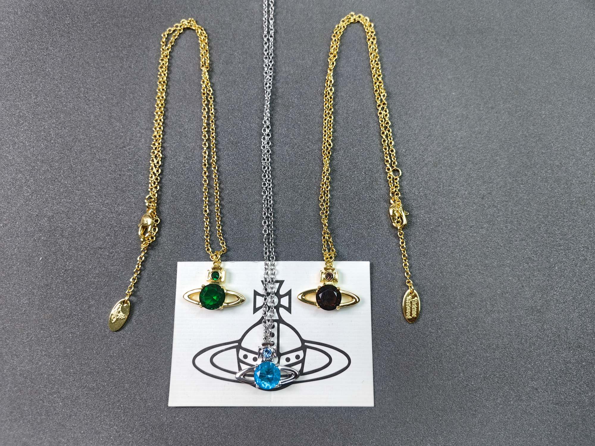 这款首饰是AAAAA 1:1 质量 (非常棒). 使用了和原版一模一样的材料. 商标部分也保持了和Vivienne Westwood一样. 图片拍摄是实物首饰拍摄, 您所收到的实物保证和我们图片一模一样.