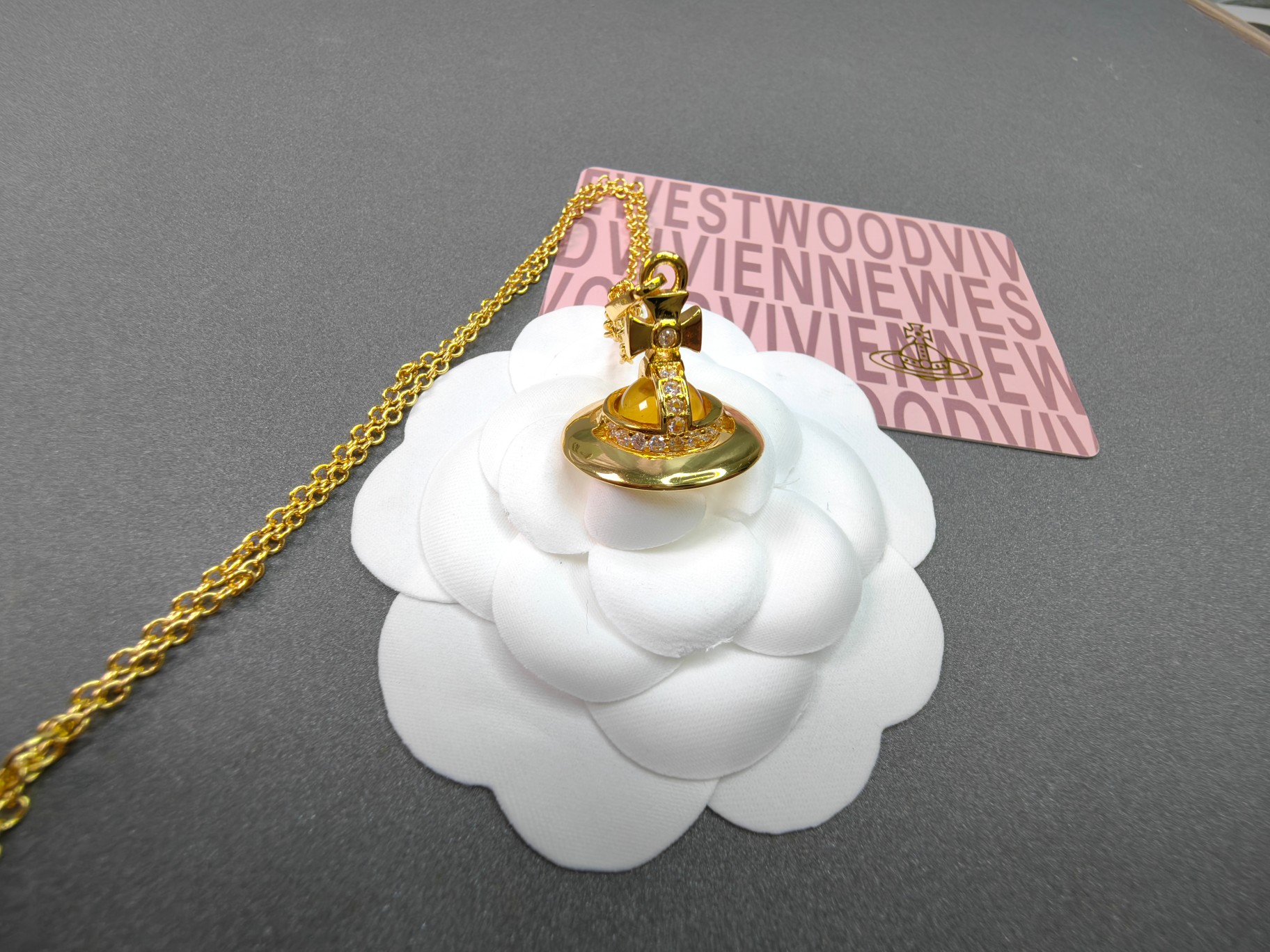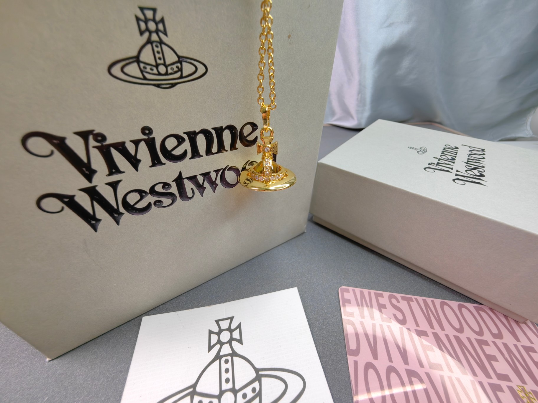 这款首饰是AAAAA 1:1 质量 (非常棒). 使用了和原版一模一样的材料. 商标部分也保持了和Vivienne Westwood一样. 图片拍摄是实物首饰拍摄, 您所收到的实物保证和我们图片一模一样.