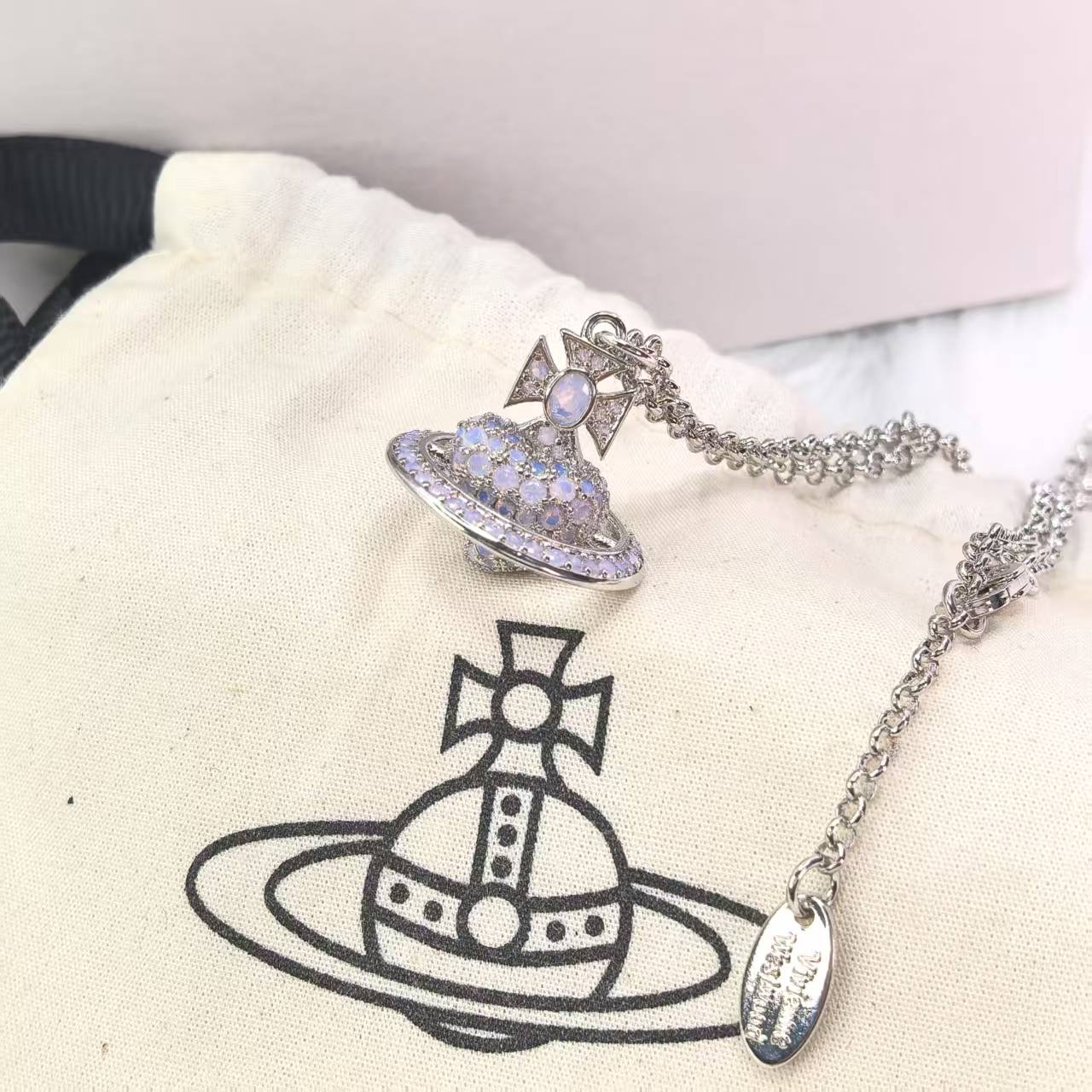 这款首饰是AAAAA 1:1 质量 (非常棒). 使用了和原版一模一样的材料. 商标部分也保持了和Vivienne Westwood一样. 图片拍摄是实物首饰拍摄, 您所收到的实物保证和我们图片一模一样.