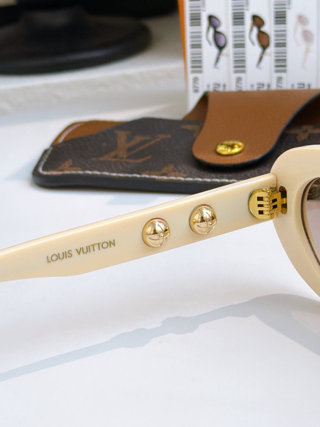 这款太阳眼镜是AAAAA 1:1 质量 (非常棒). 使用了和原版一模一样的材料. 商标部分也保持了和路易威登/Louis Vuitton一样. 图片拍摄是实物太阳眼镜拍摄, 您所收到的实物保证和我们图片一模一样.
