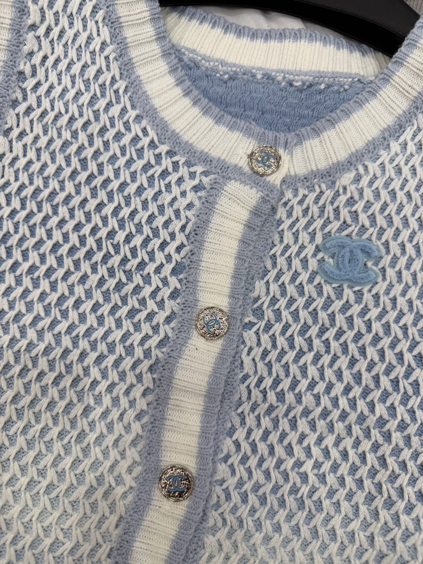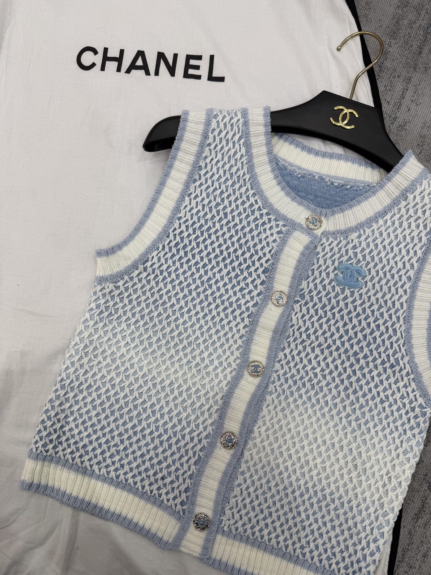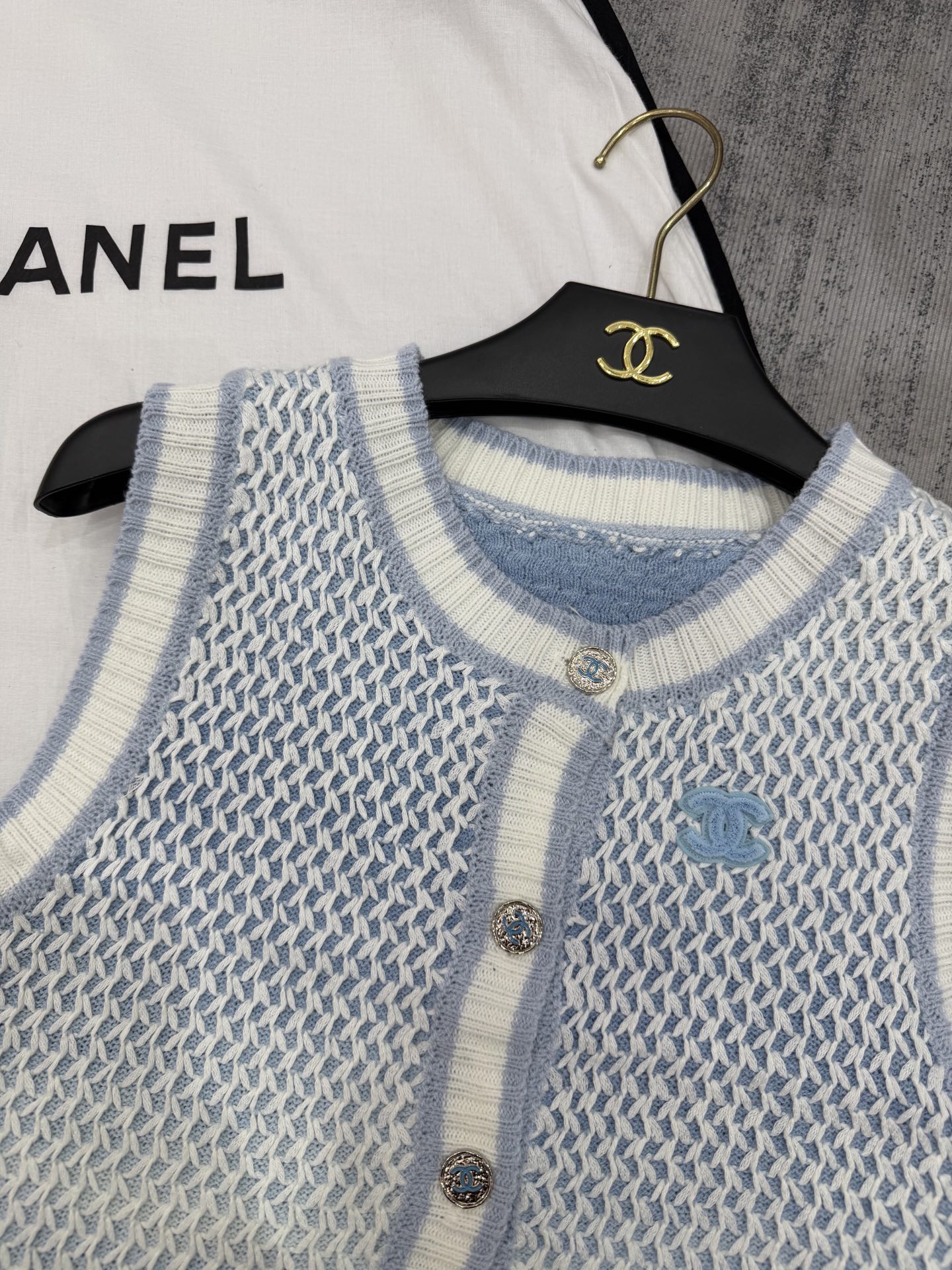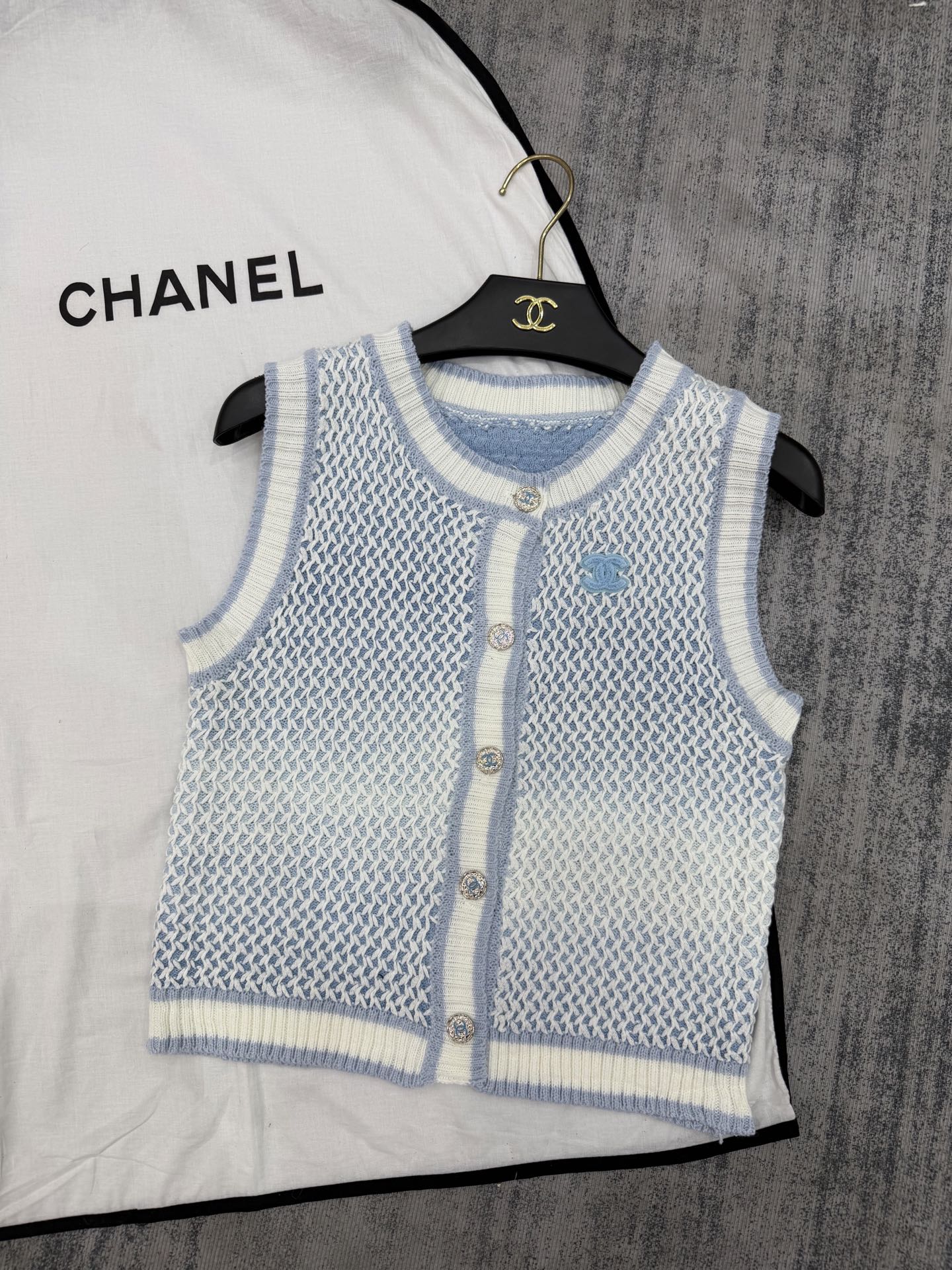 这款衣服是AAAAA 1:1 质量 (非常棒). 使用了和原版一模一样的材料. 商标部分也保持了和香奈儿/Chanel一样. 图片拍摄是实物衣服拍摄, 您所收到的实物保证和我们图片一模一样.