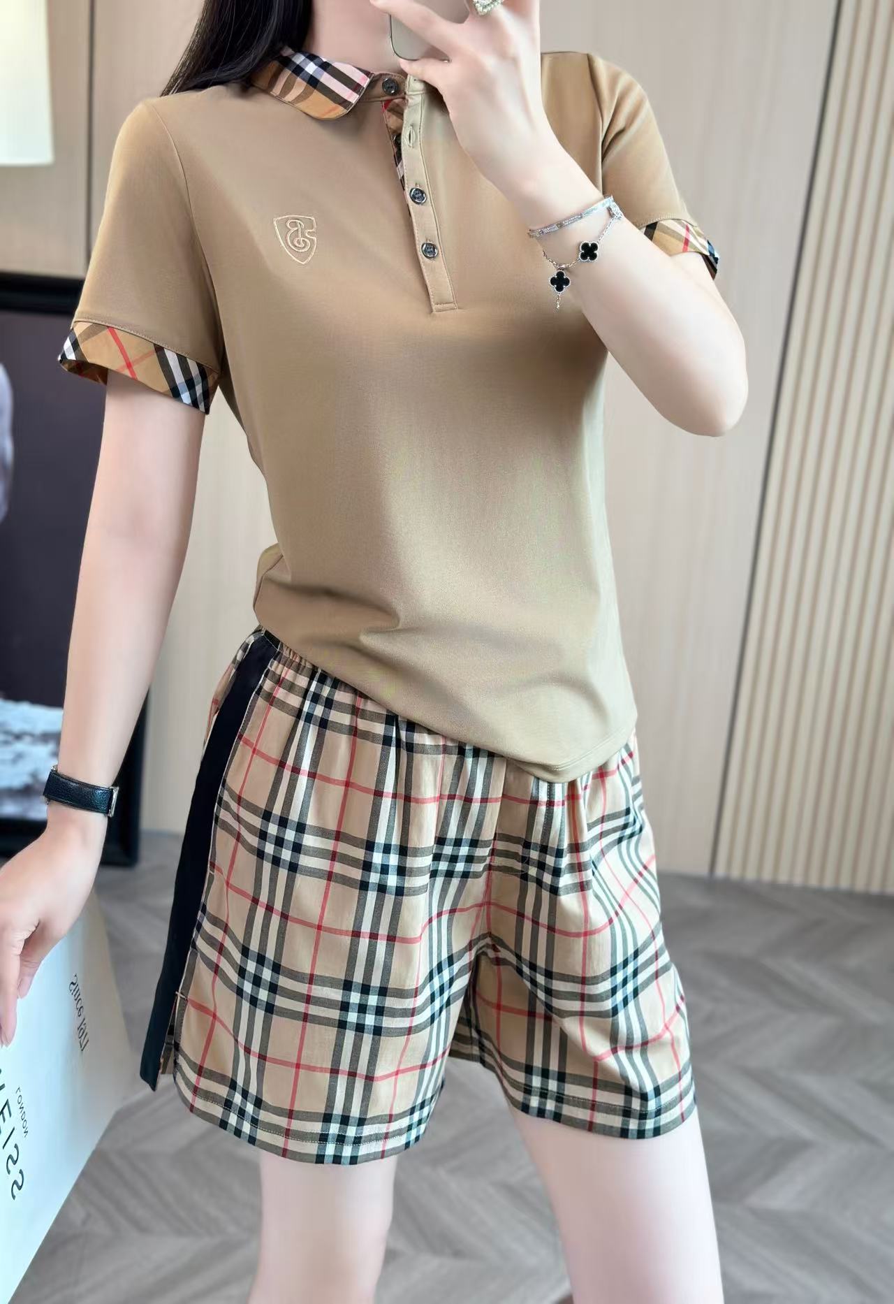 这款衣服是AAAAA 1:1 质量 (非常棒). 使用了和原版一模一样的材料. 商标部分也保持了和巴宝莉/Burberry一样. 图片拍摄是实物衣服拍摄, 您所收到的实物保证和我们图片一模一样.