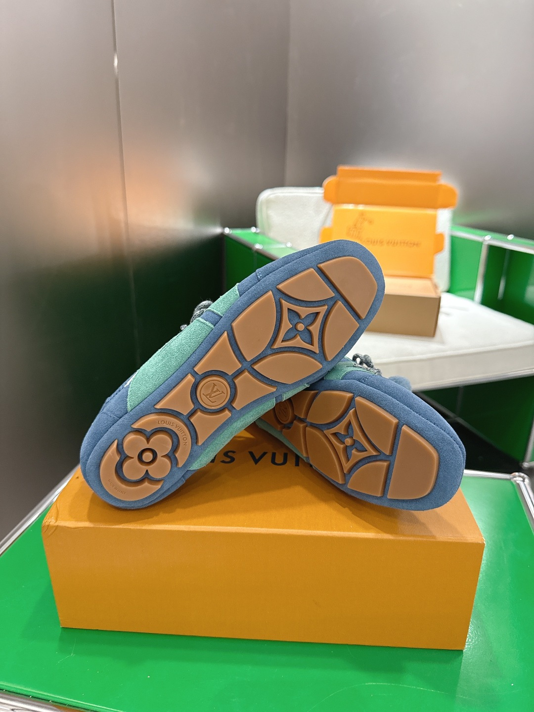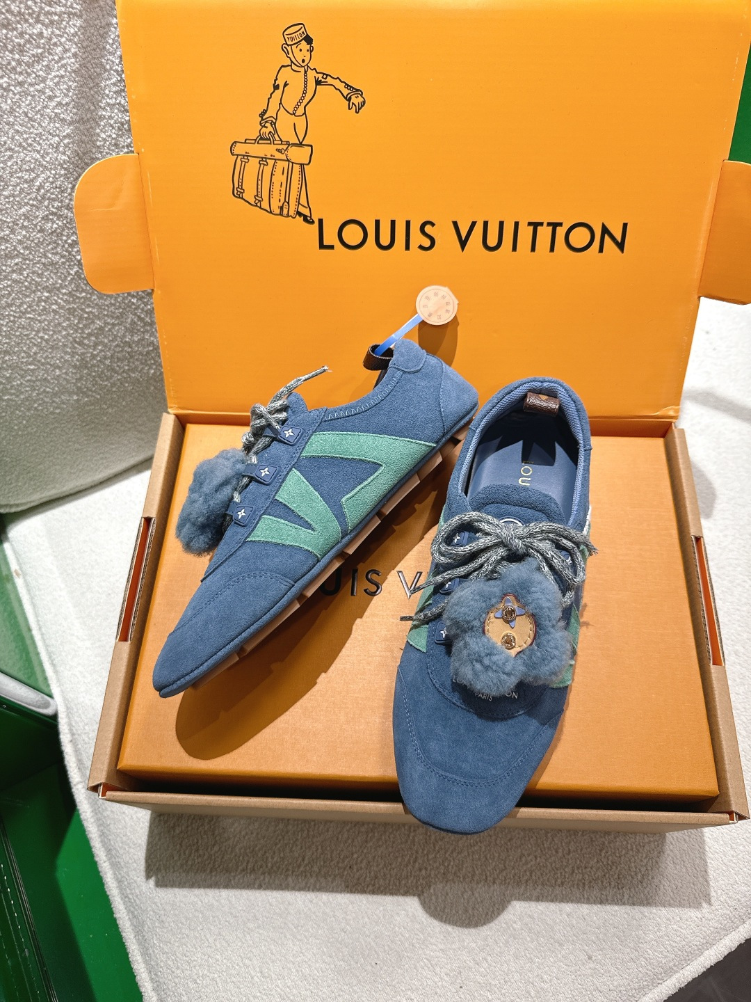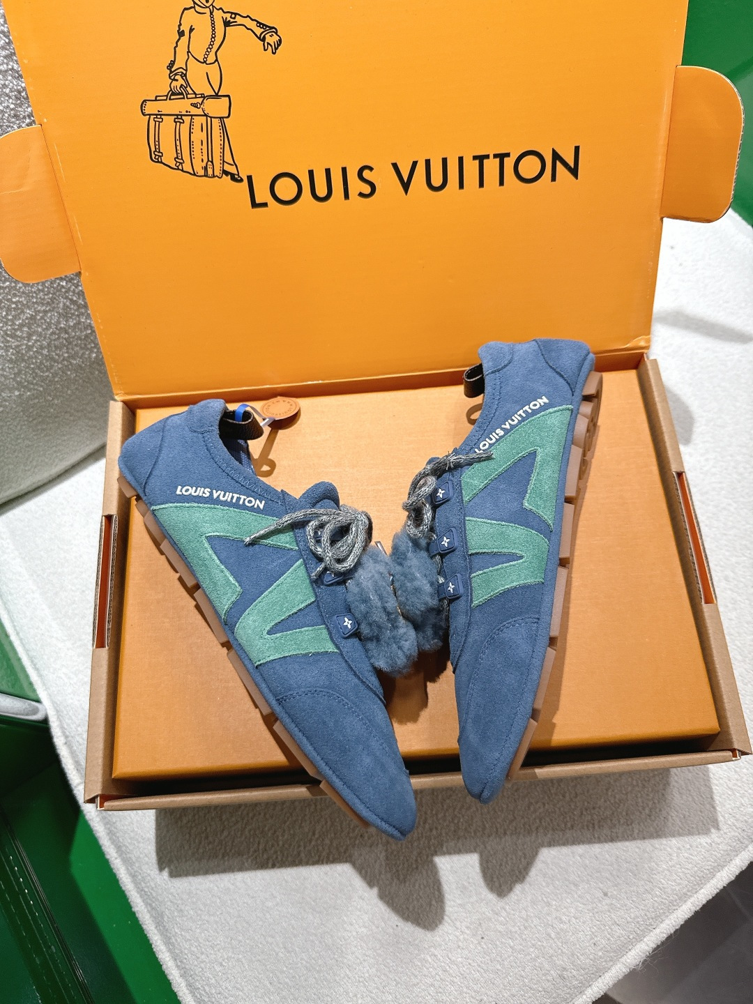 这款鞋子是AAAAA 1:1 质量 (非常棒). 使用了和原版一模一样的材料. 商标部分也保持了和路易威登/Louis Vuitton一样. 图片拍摄是实物鞋子拍摄, 您所收到的实物保证和我们图片一模一样.