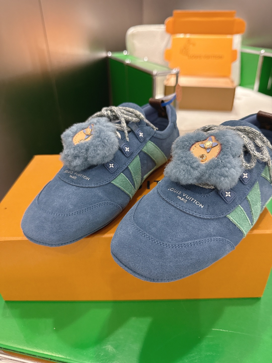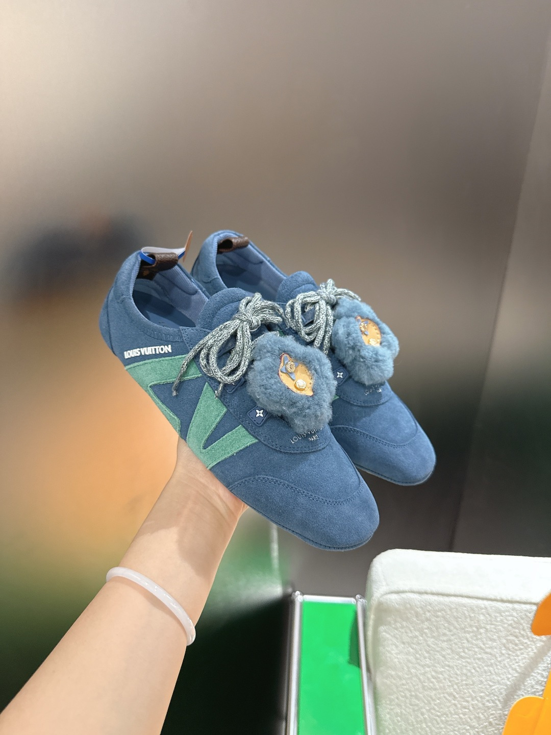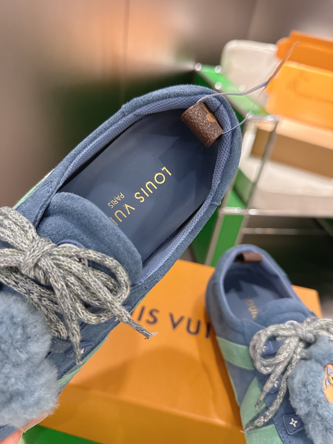 这款鞋子是AAAAA 1:1 质量 (非常棒). 使用了和原版一模一样的材料. 商标部分也保持了和路易威登/Louis Vuitton一样. 图片拍摄是实物鞋子拍摄, 您所收到的实物保证和我们图片一模一样.