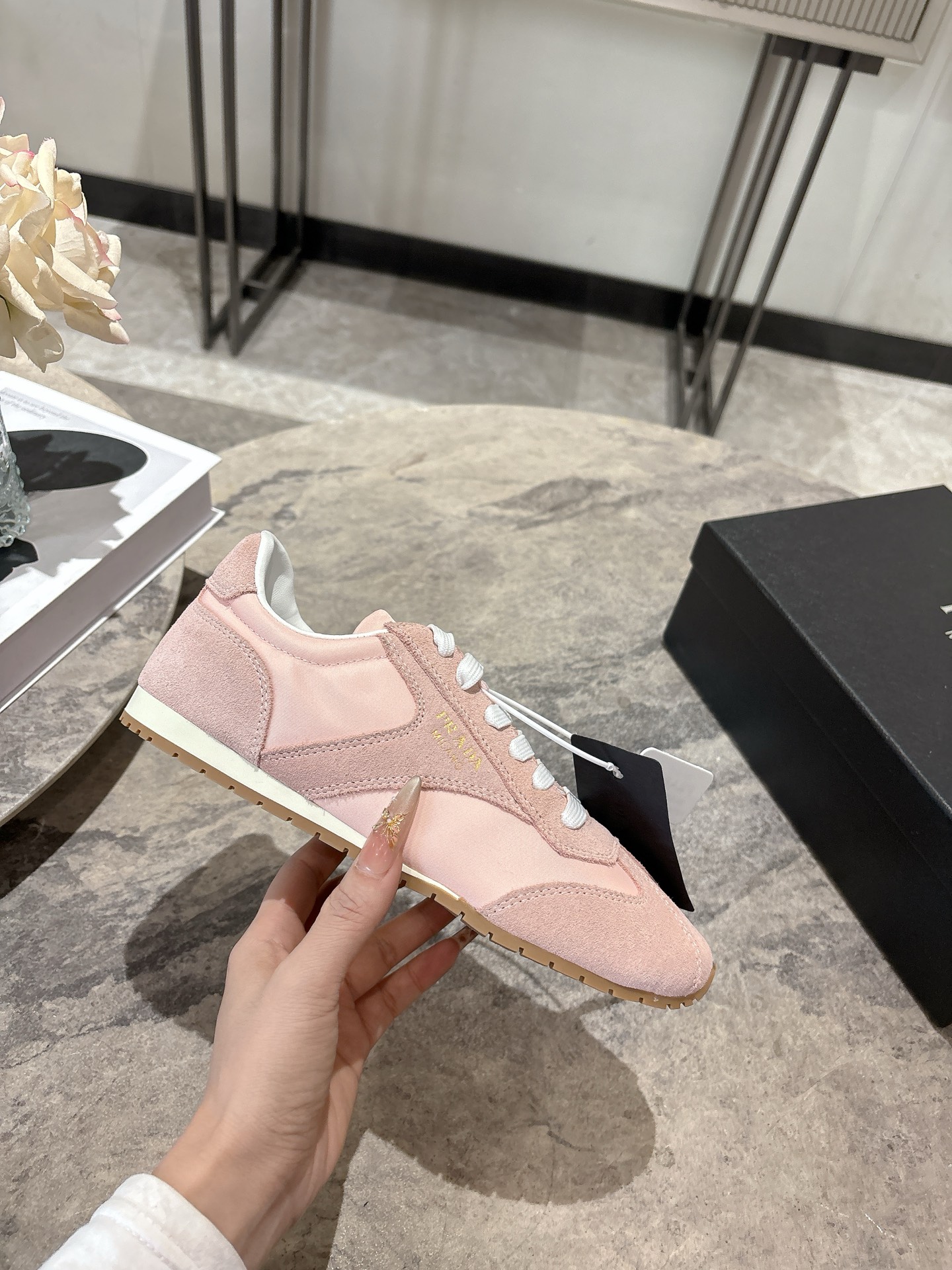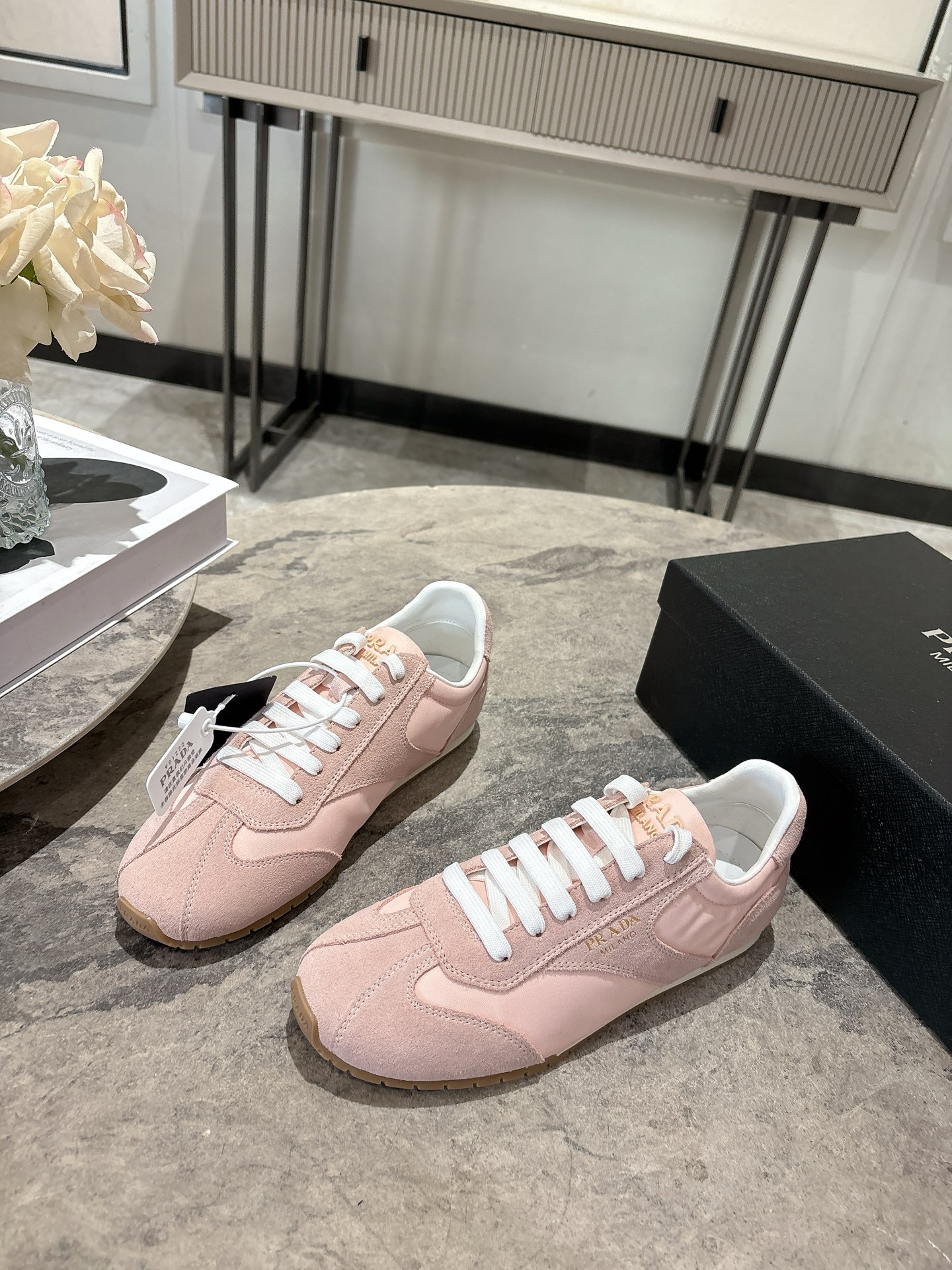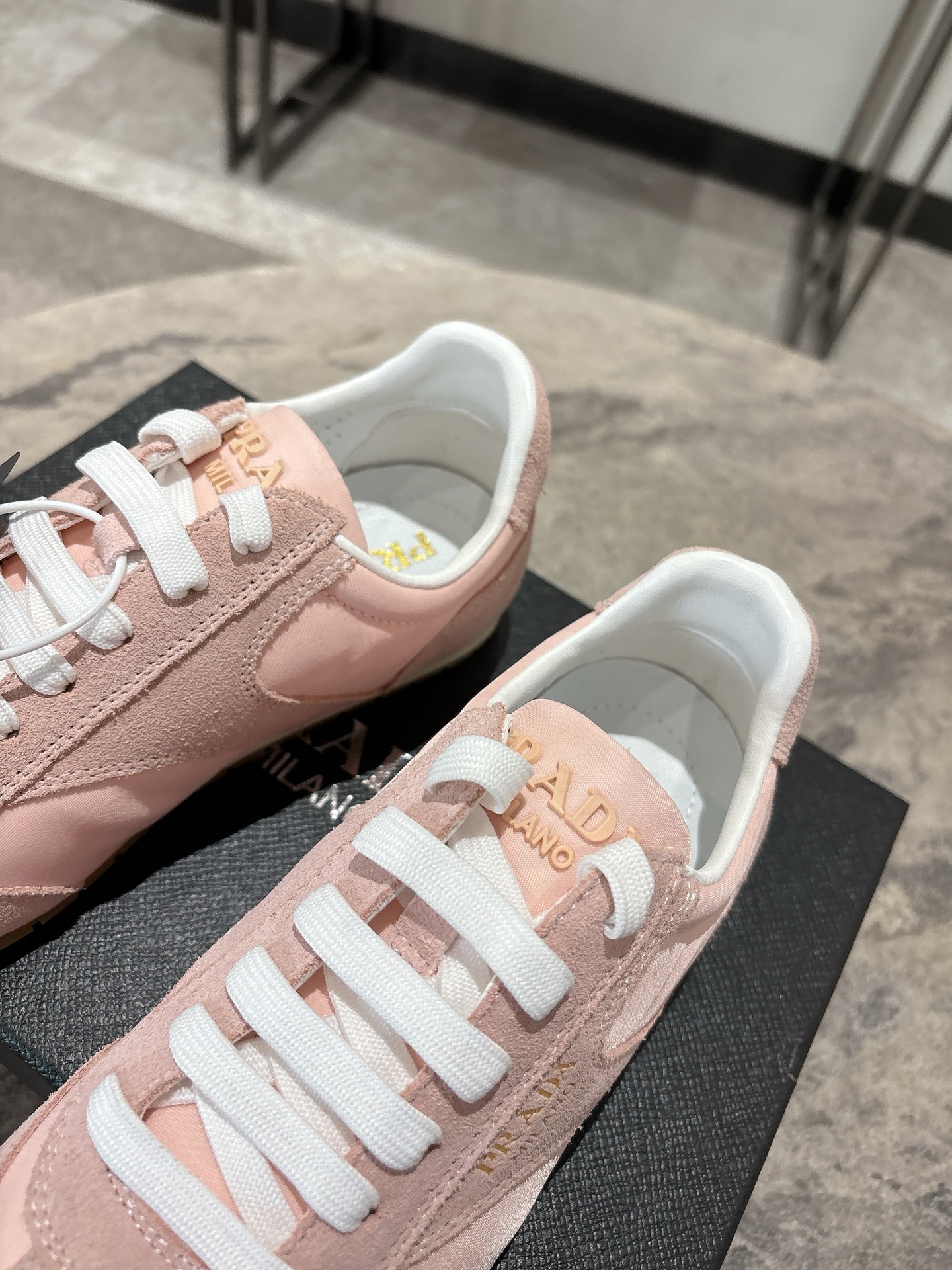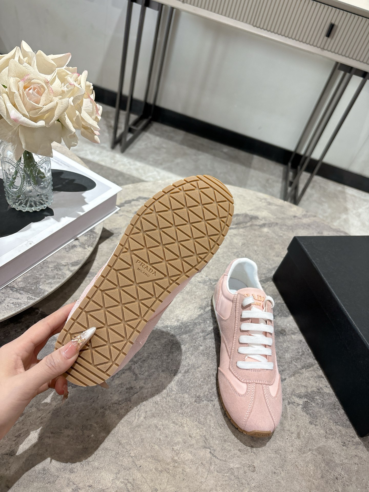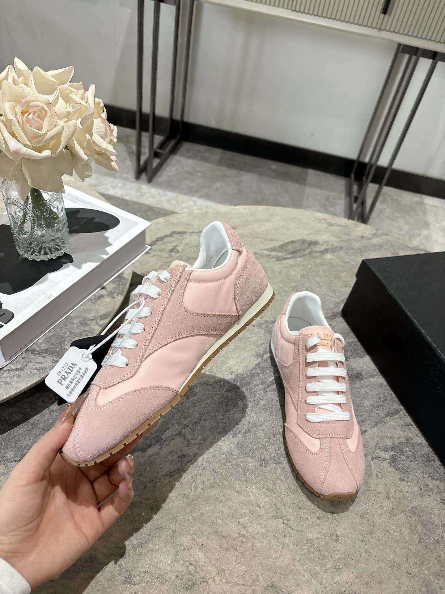 这款鞋子是AAAAA 1:1 质量 (非常棒). 使用了和原版一模一样的材料. 商标部分也保持了和普拉达/Prada一样. 图片拍摄是实物鞋子拍摄, 您所收到的实物保证和我们图片一模一样.