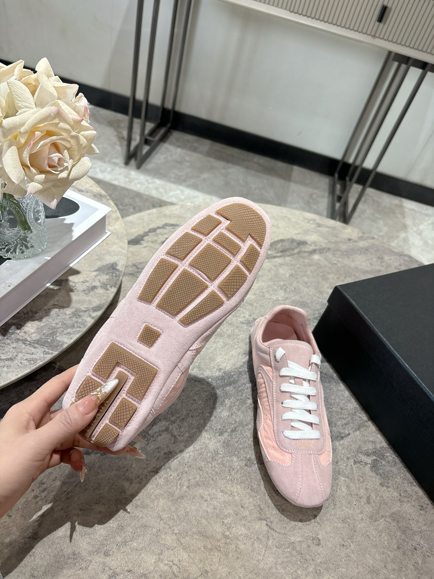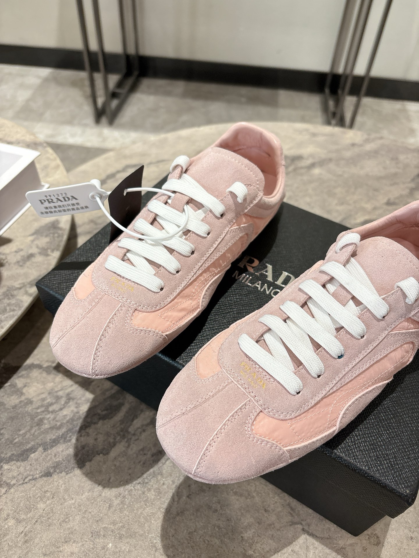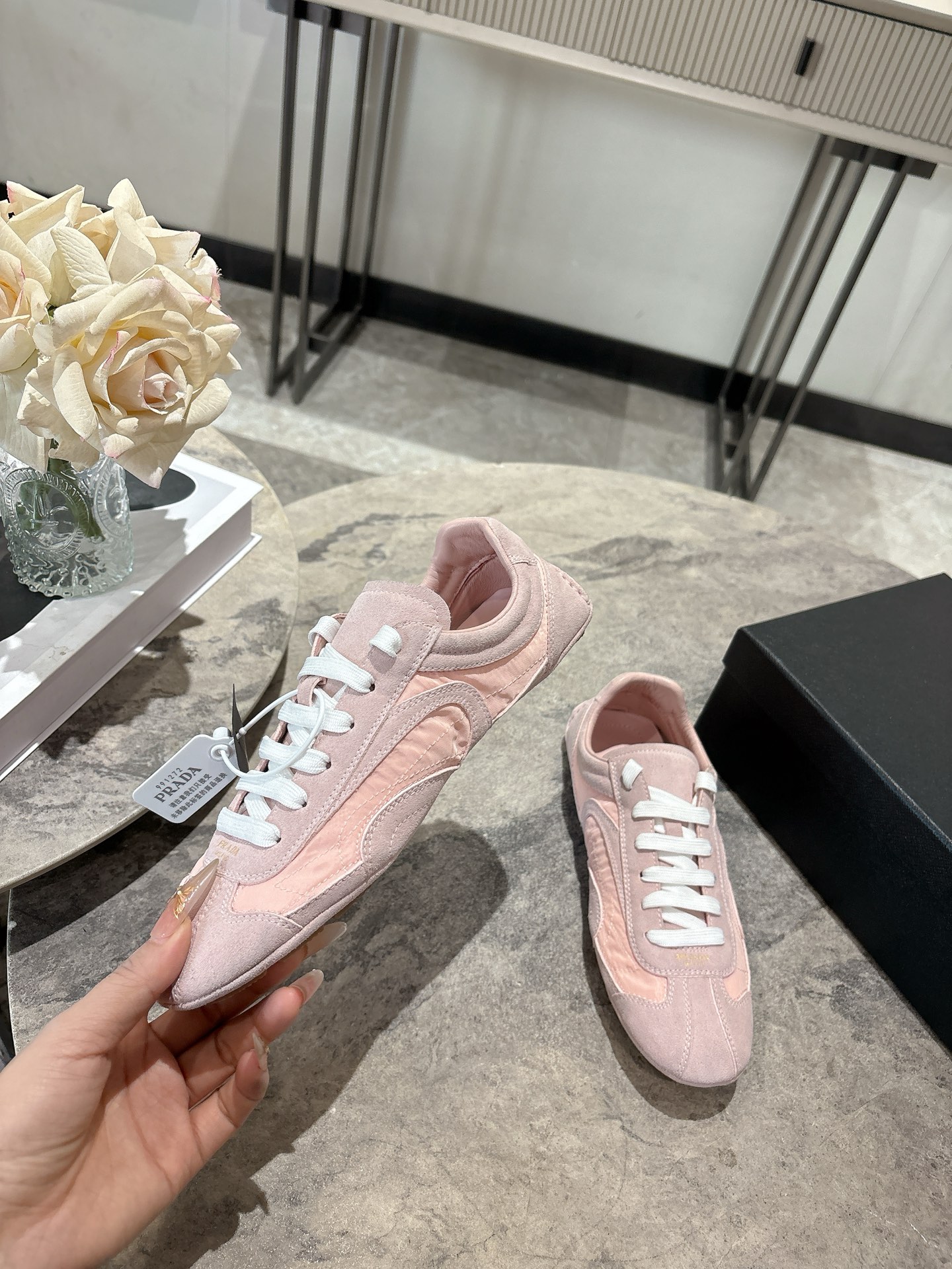这款鞋子是AAAAA 1:1 质量 (非常棒). 使用了和原版一模一样的材料. 商标部分也保持了和普拉达/Prada一样. 图片拍摄是实物鞋子拍摄, 您所收到的实物保证和我们图片一模一样.