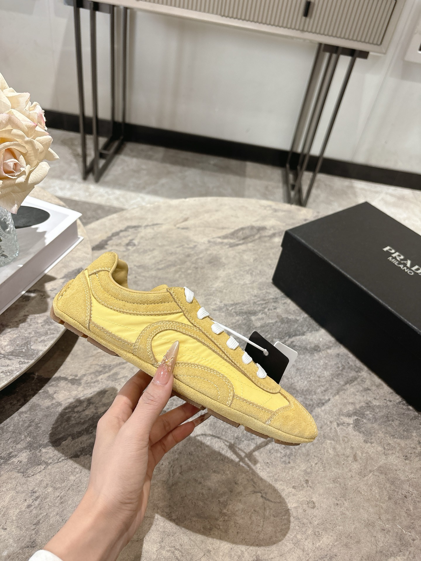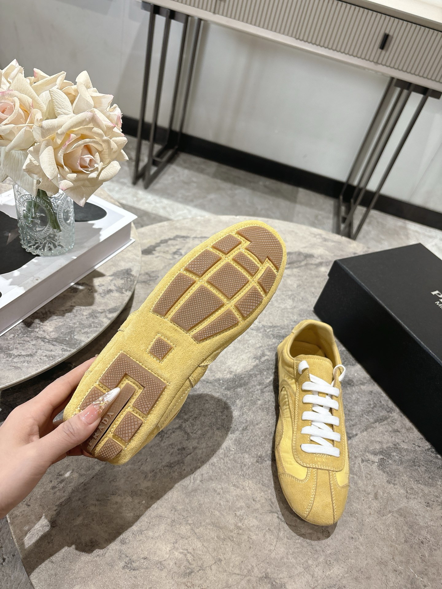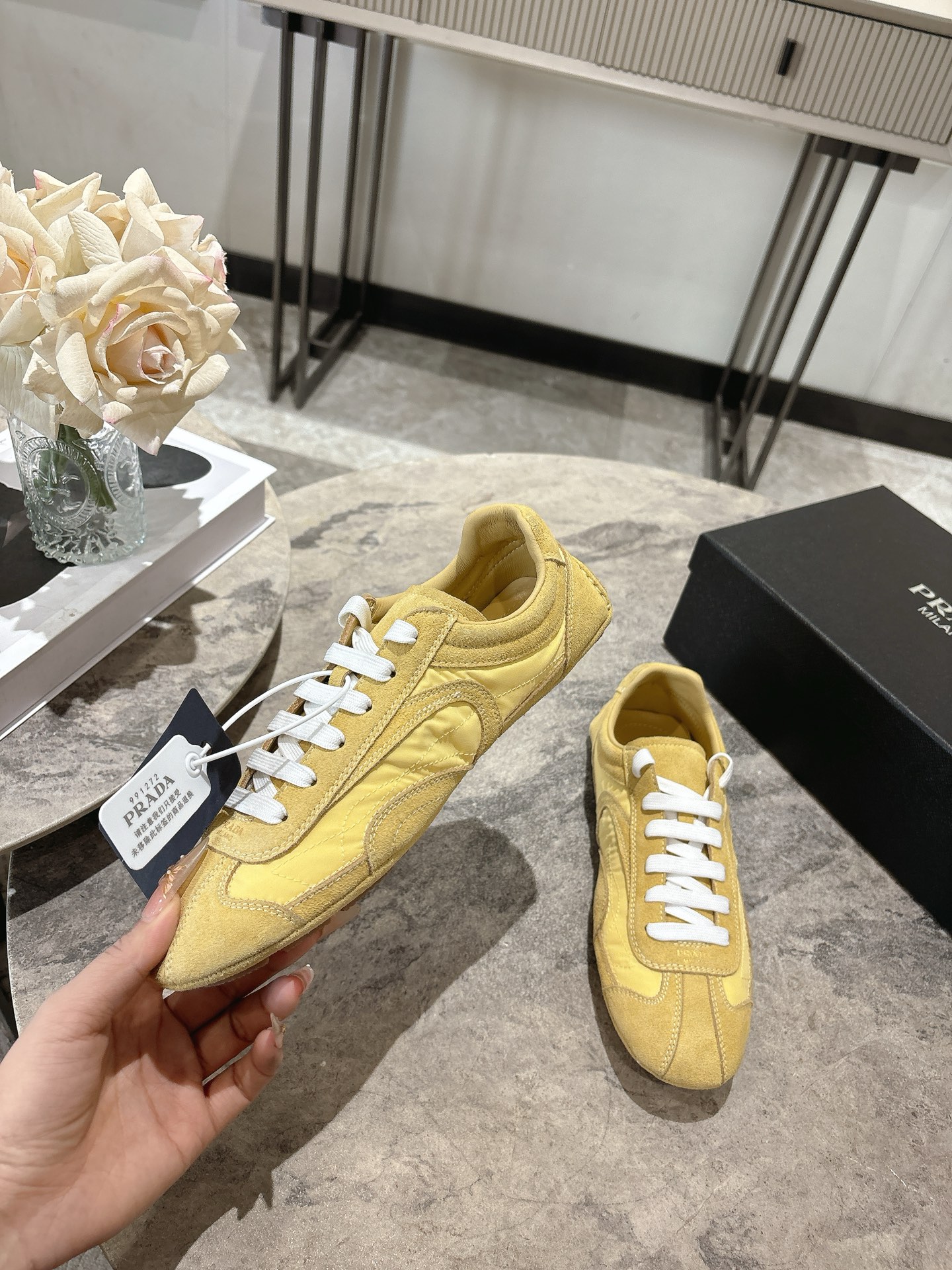 这款鞋子是AAAAA 1:1 质量 (非常棒). 使用了和原版一模一样的材料. 商标部分也保持了和普拉达/Prada一样. 图片拍摄是实物鞋子拍摄, 您所收到的实物保证和我们图片一模一样.