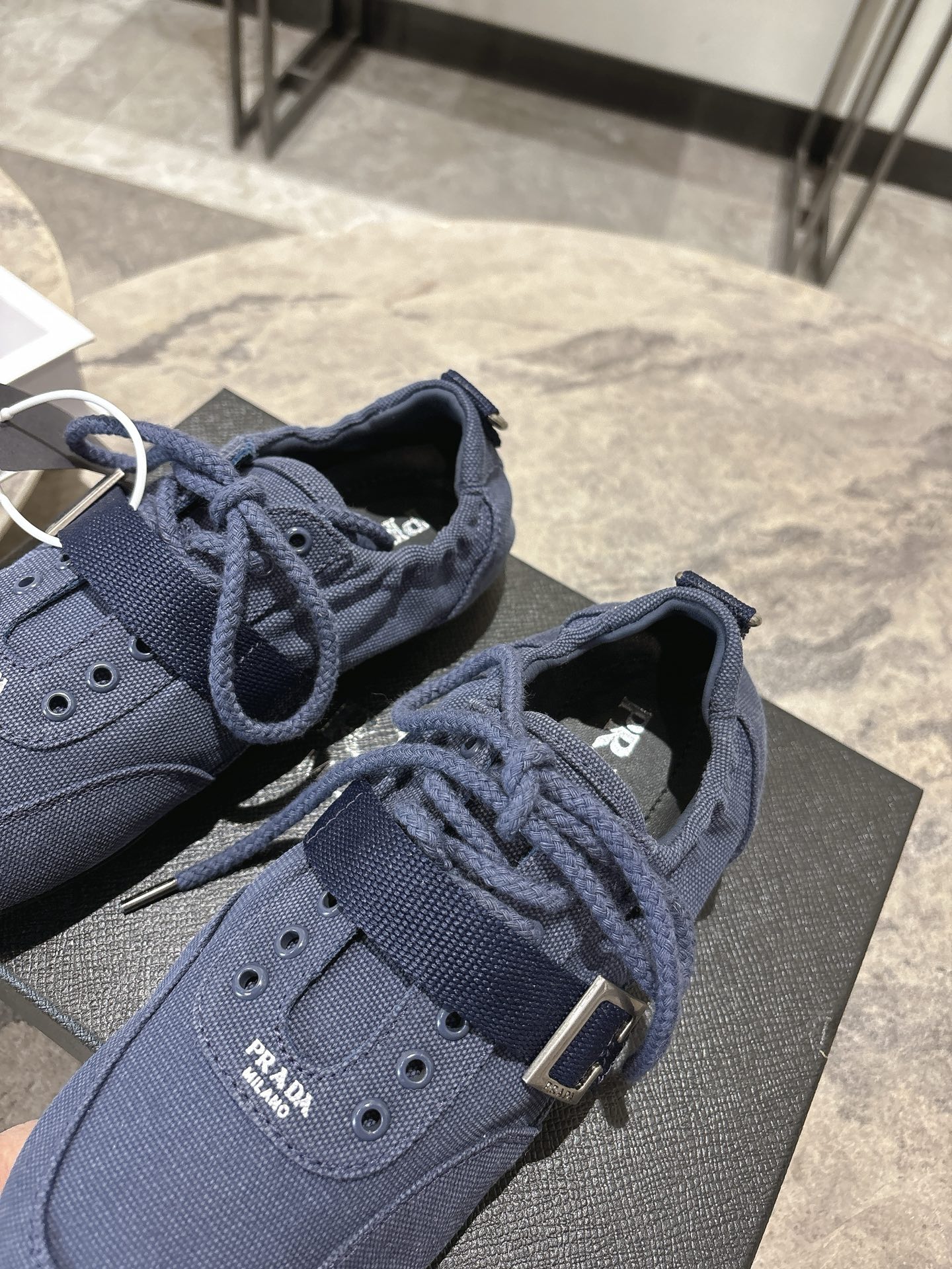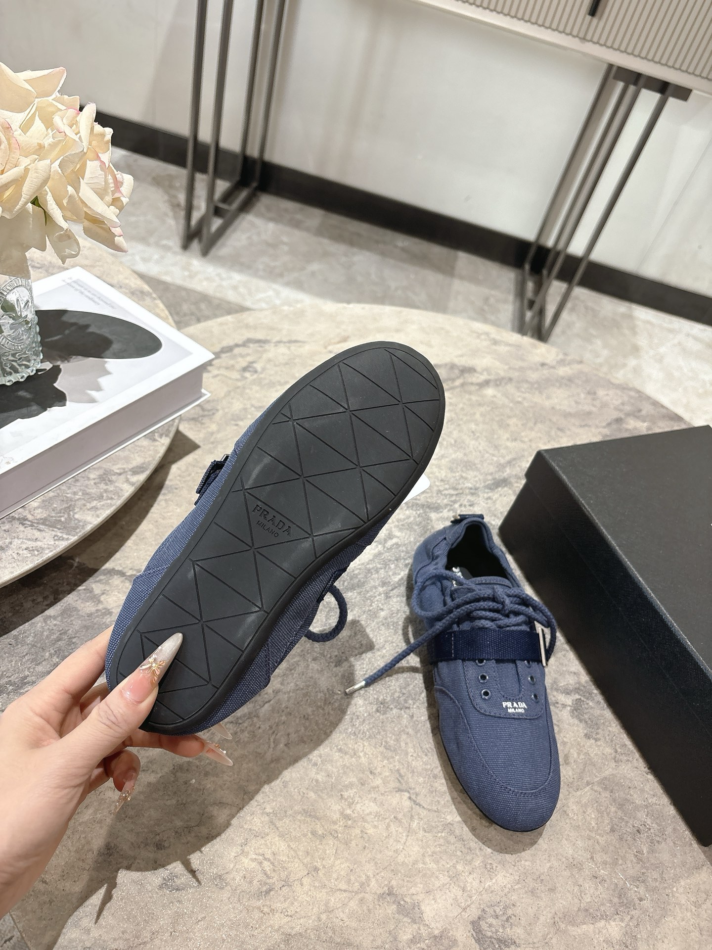 这款鞋子是AAAAA 1:1 质量 (非常棒). 使用了和原版一模一样的材料. 商标部分也保持了和普拉达/Prada一样. 图片拍摄是实物鞋子拍摄, 您所收到的实物保证和我们图片一模一样.