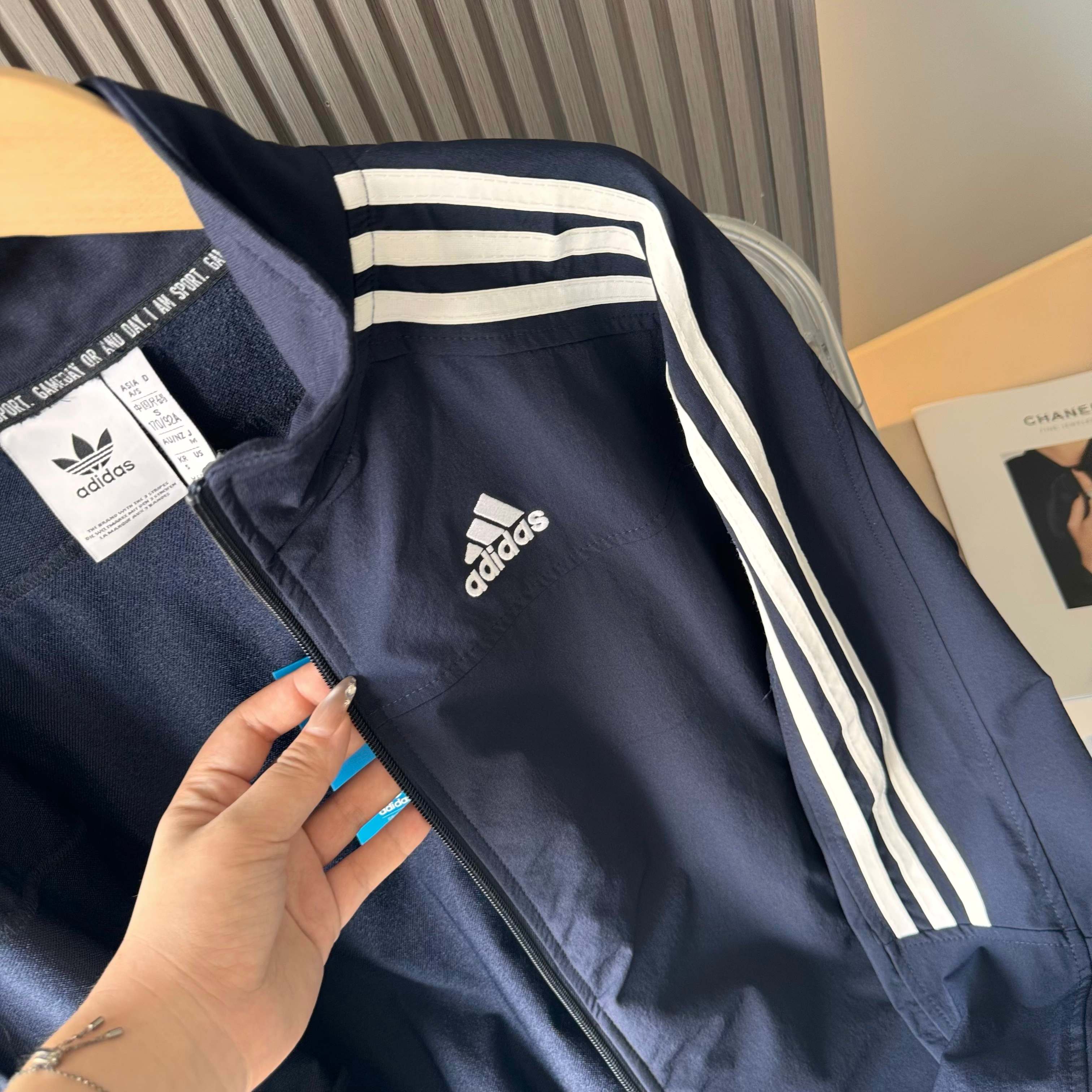 这款衣服是AAAAA 1:1 质量 (非常棒). 使用了和原版一模一样的材料. 商标部分也保持了和阿迪达斯/Adidas一样. 图片拍摄是实物衣服拍摄, 您所收到的实物保证和我们图片一模一样.