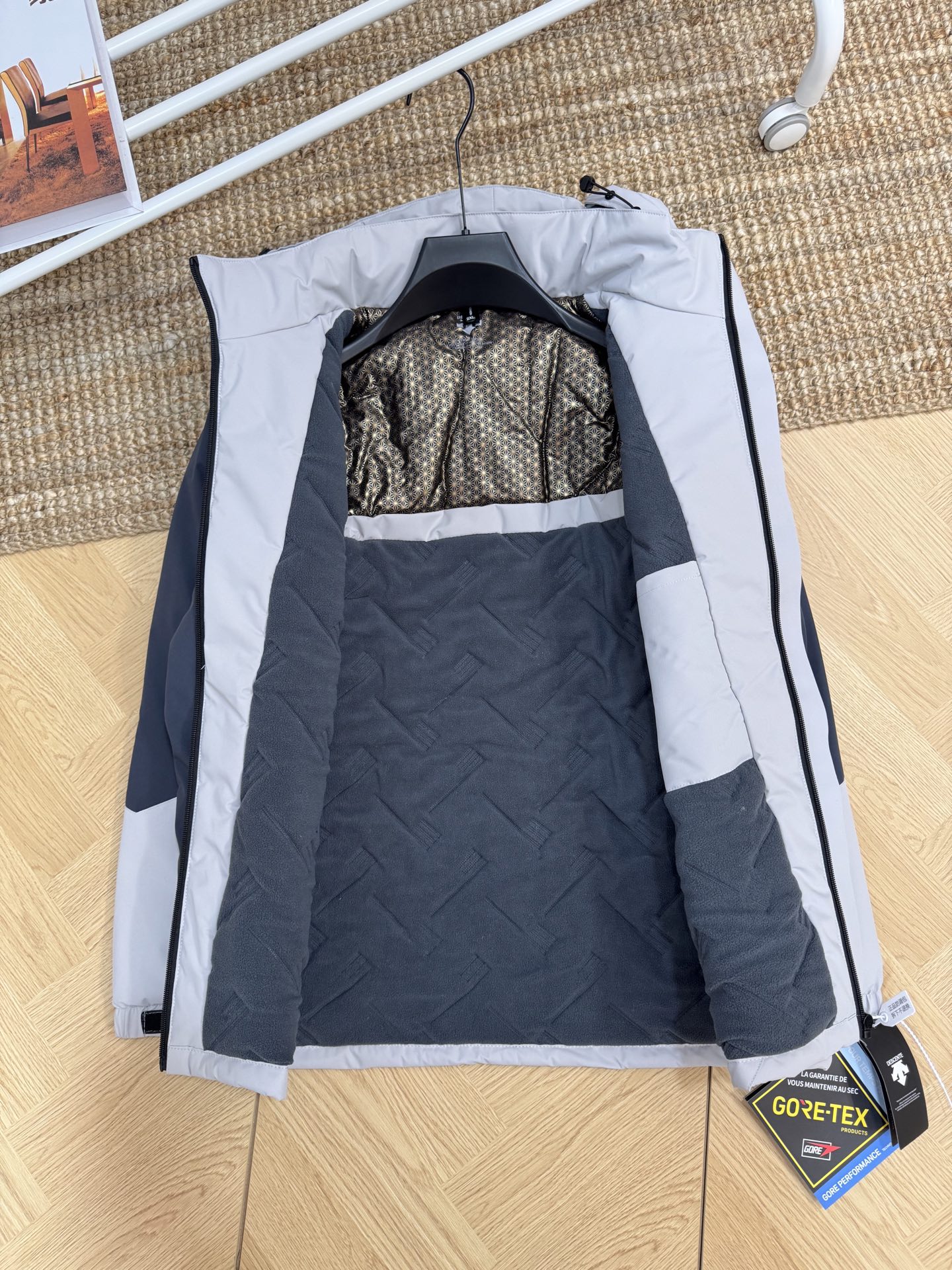 这款衣服是AAAAA 1:1 质量 (非常棒). 使用了和原版一模一样的材料. 商标部分也保持了和Descente一样. 图片拍摄是实物衣服拍摄, 您所收到的实物保证和我们图片一模一样.