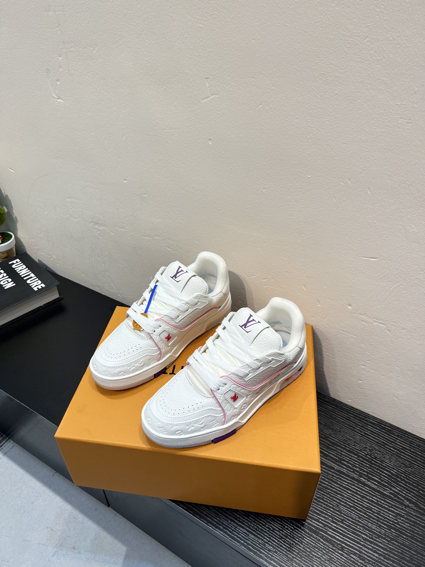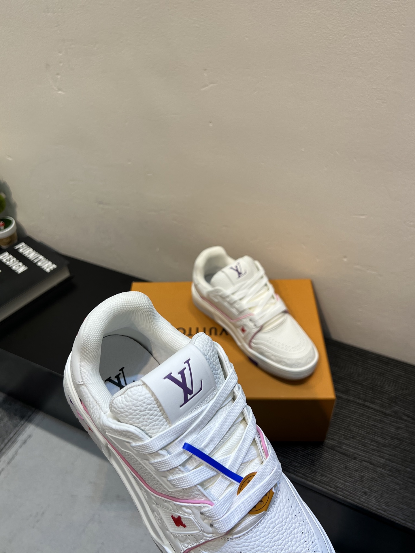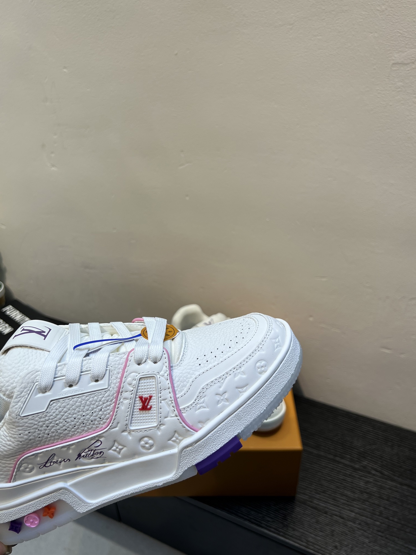 这款鞋子是AAAAA 1:1 质量 (非常棒). 使用了和原版一模一样的材料. 商标部分也保持了和路易威登/Louis Vuitton一样. 图片拍摄是实物鞋子拍摄, 您所收到的实物保证和我们图片一模一样.
