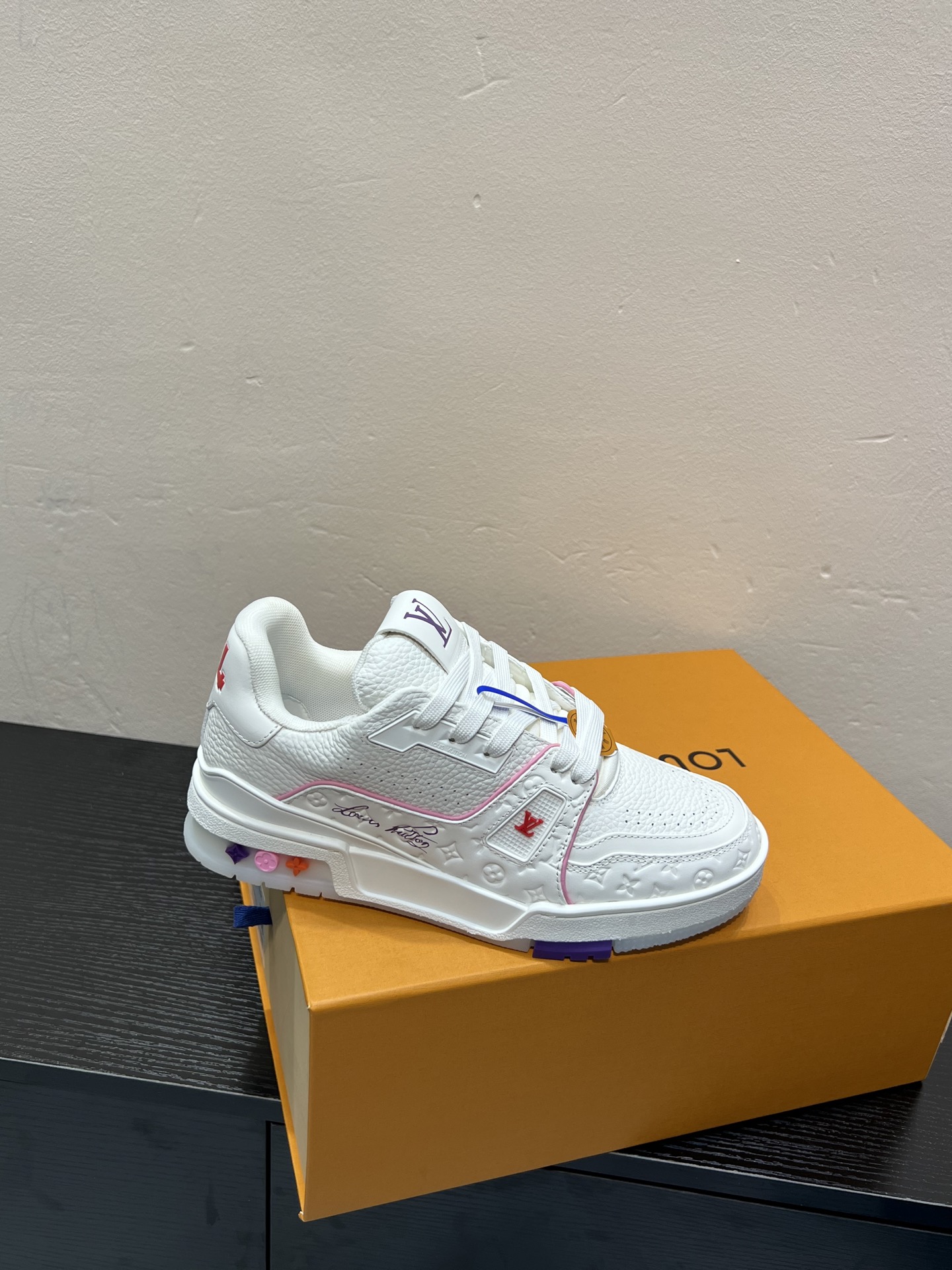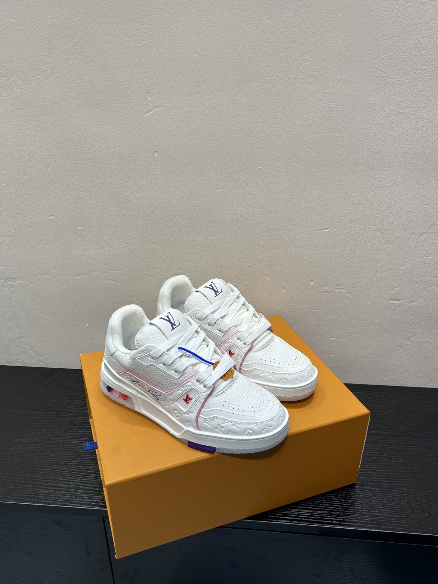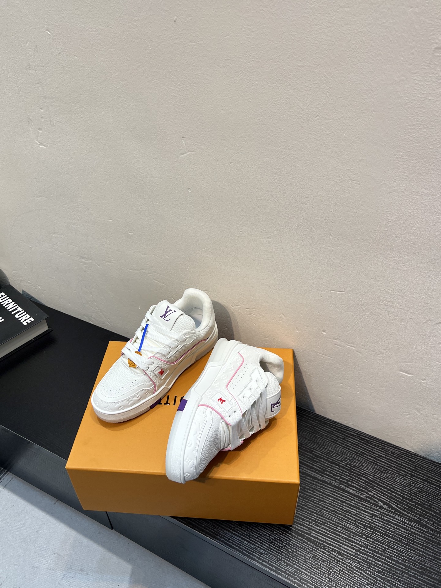 这款鞋子是AAAAA 1:1 质量 (非常棒). 使用了和原版一模一样的材料. 商标部分也保持了和路易威登/Louis Vuitton一样. 图片拍摄是实物鞋子拍摄, 您所收到的实物保证和我们图片一模一样.