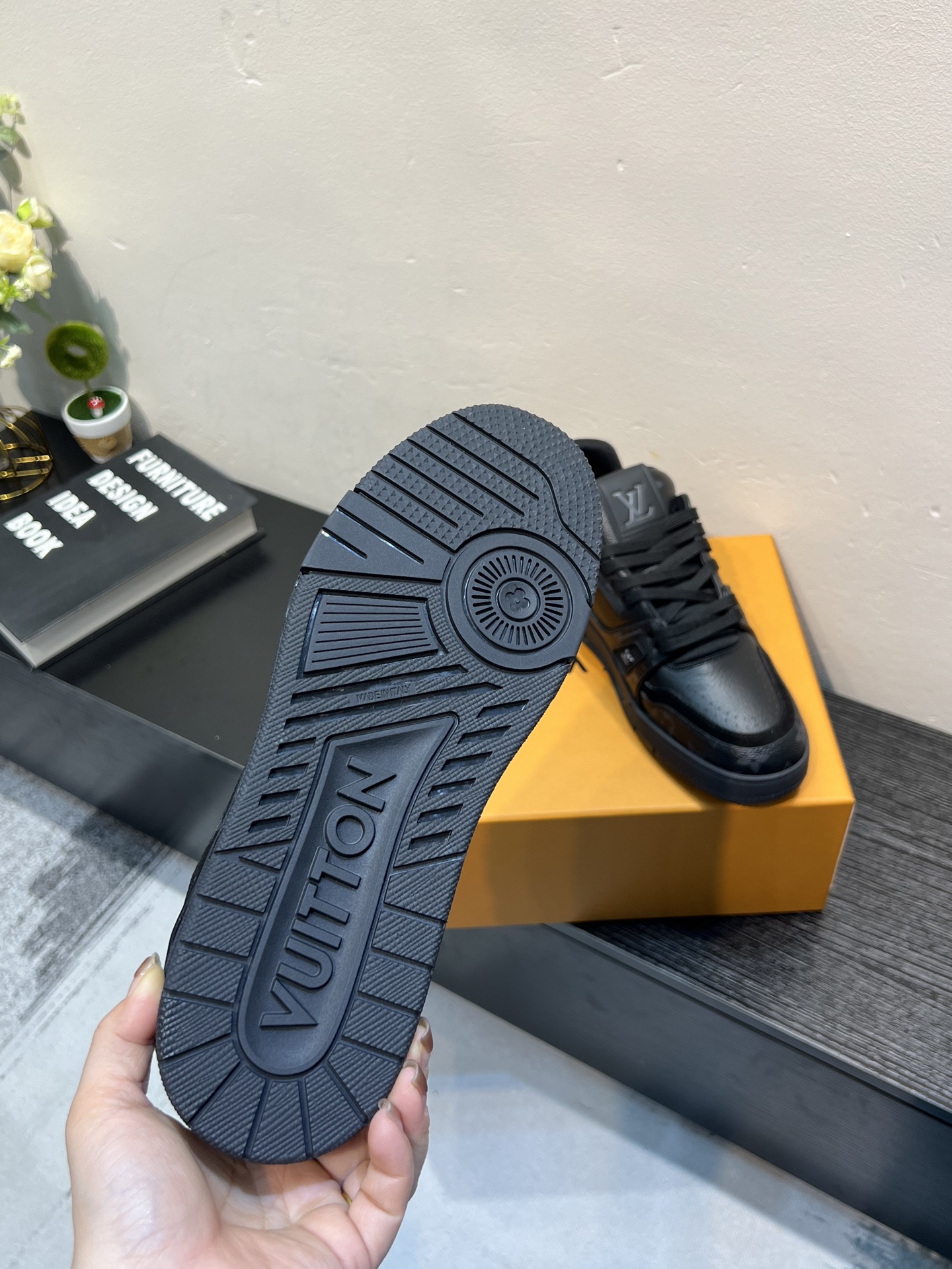 这款鞋子是AAAAA 1:1 质量 (非常棒). 使用了和原版一模一样的材料. 商标部分也保持了和路易威登/Louis Vuitton一样. 图片拍摄是实物鞋子拍摄, 您所收到的实物保证和我们图片一模一样.