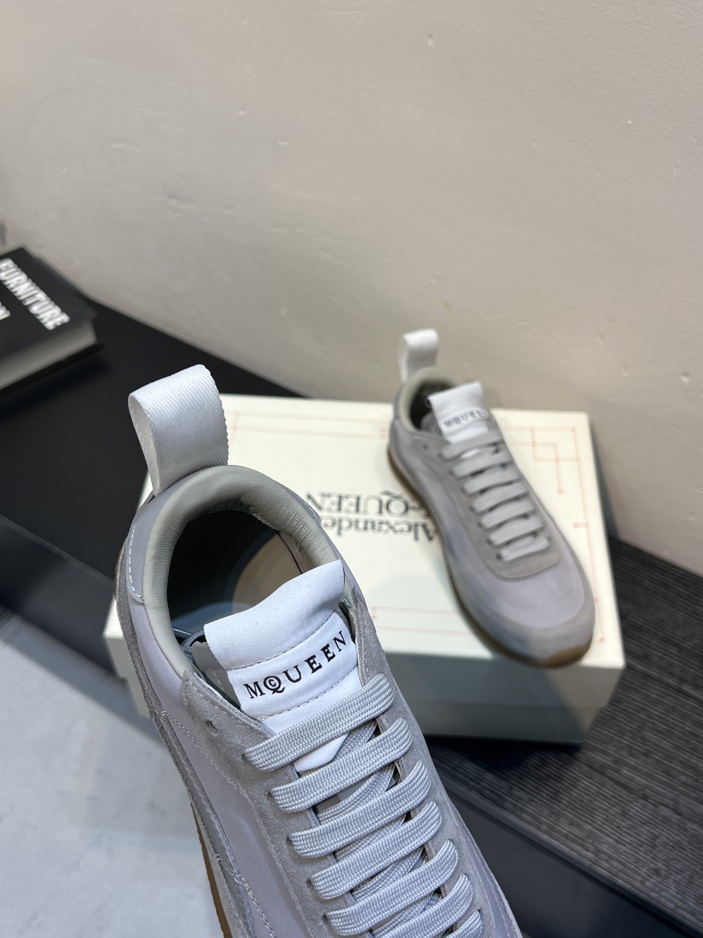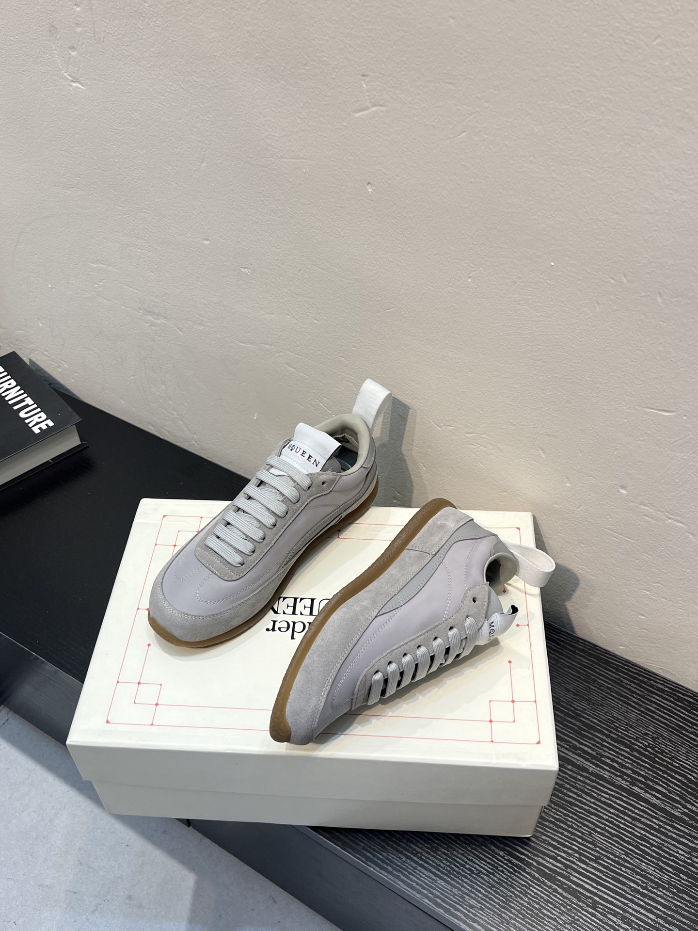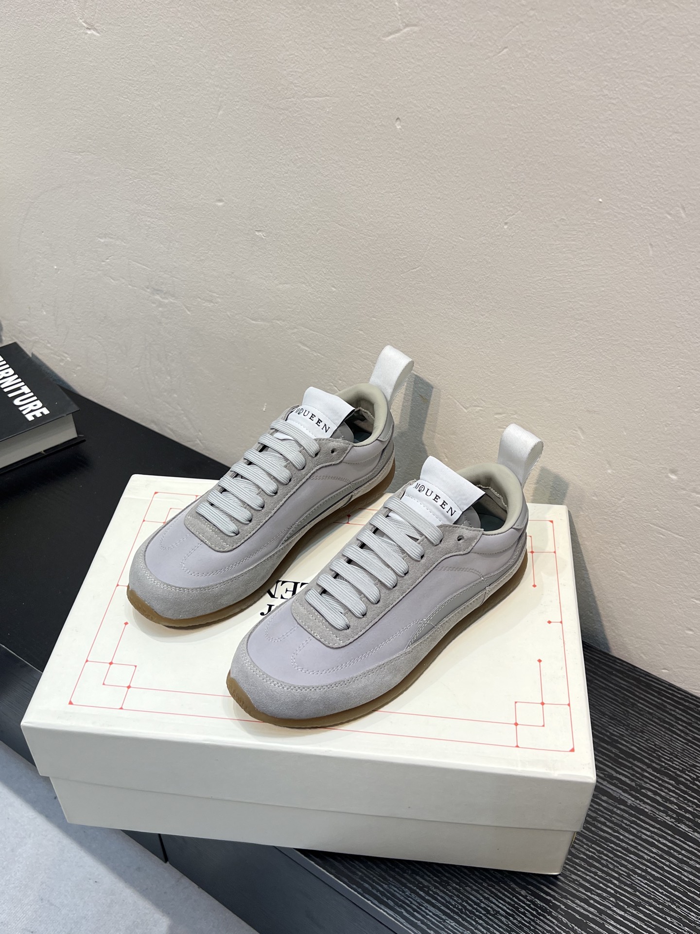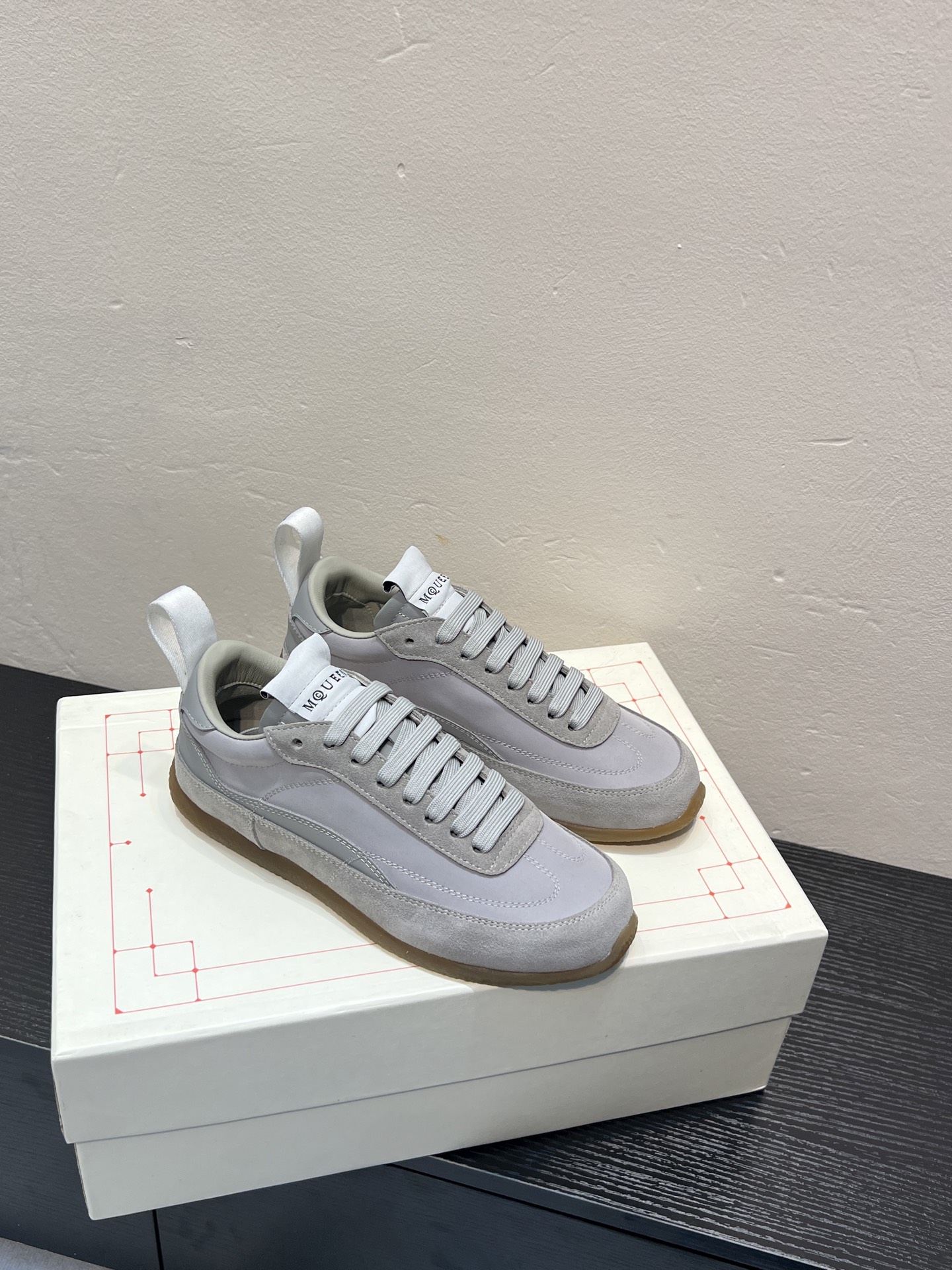 这款鞋子是AAAAA 1:1 质量 (非常棒). 使用了和原版一模一样的材料. 商标部分也保持了和亚历山大·麦昆/McQueen一样. 图片拍摄是实物鞋子拍摄, 您所收到的实物保证和我们图片一模一样.