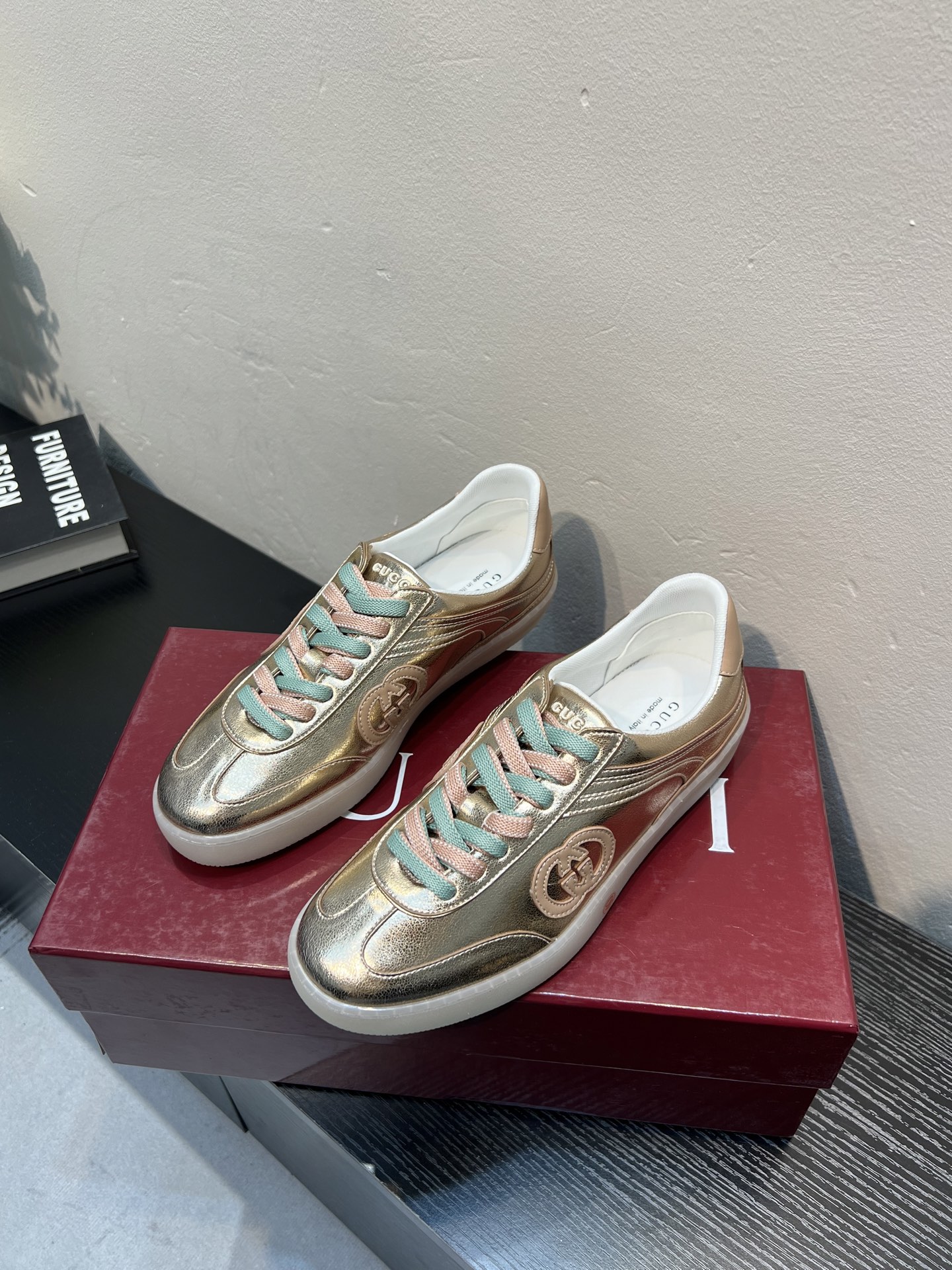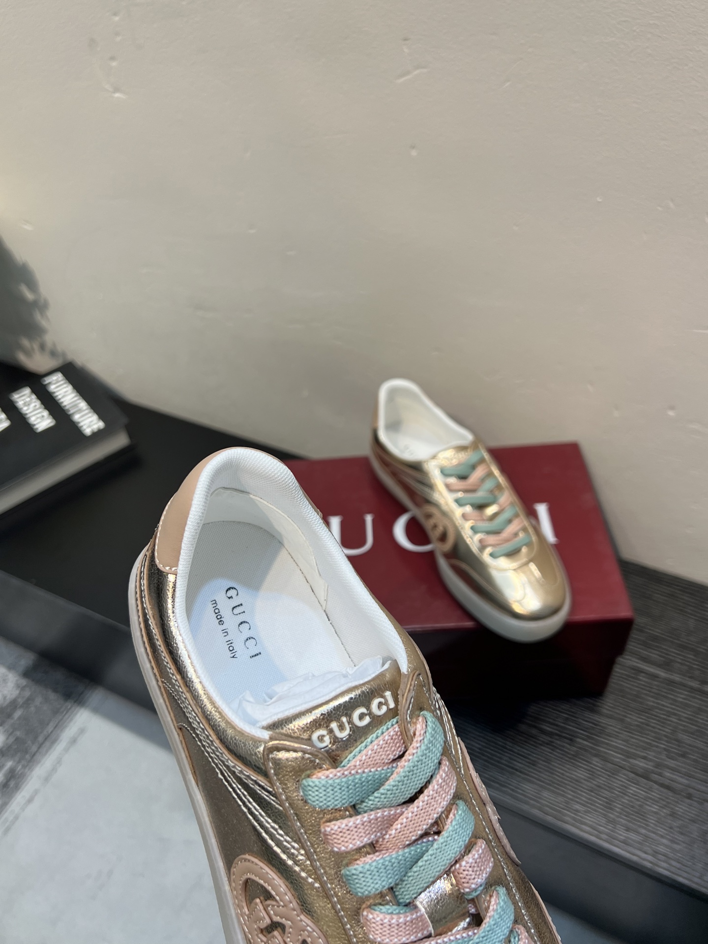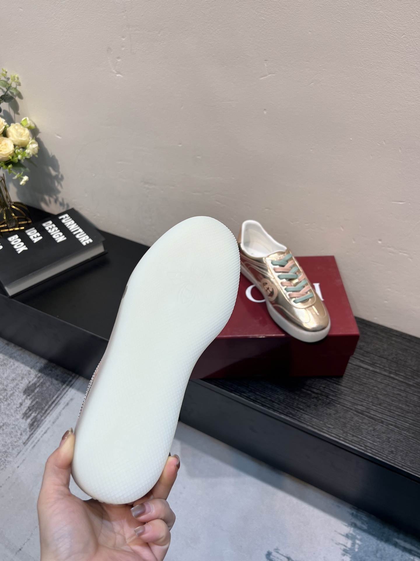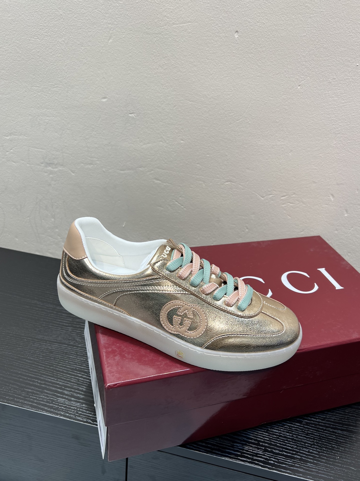 这款鞋子是AAAAA 1:1 质量 (非常棒). 使用了和原版一模一样的材料. 商标部分也保持了和古奇/Gucci一样. 图片拍摄是实物鞋子拍摄, 您所收到的实物保证和我们图片一模一样.