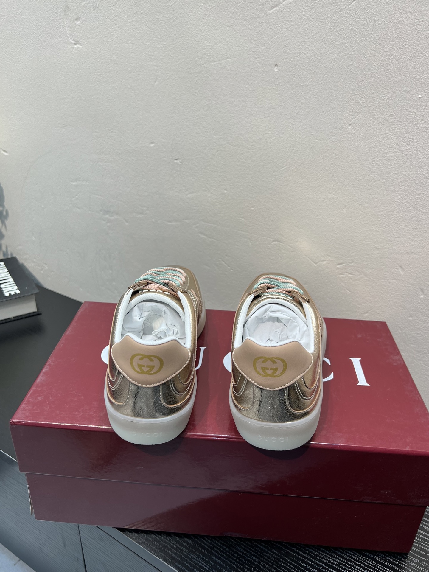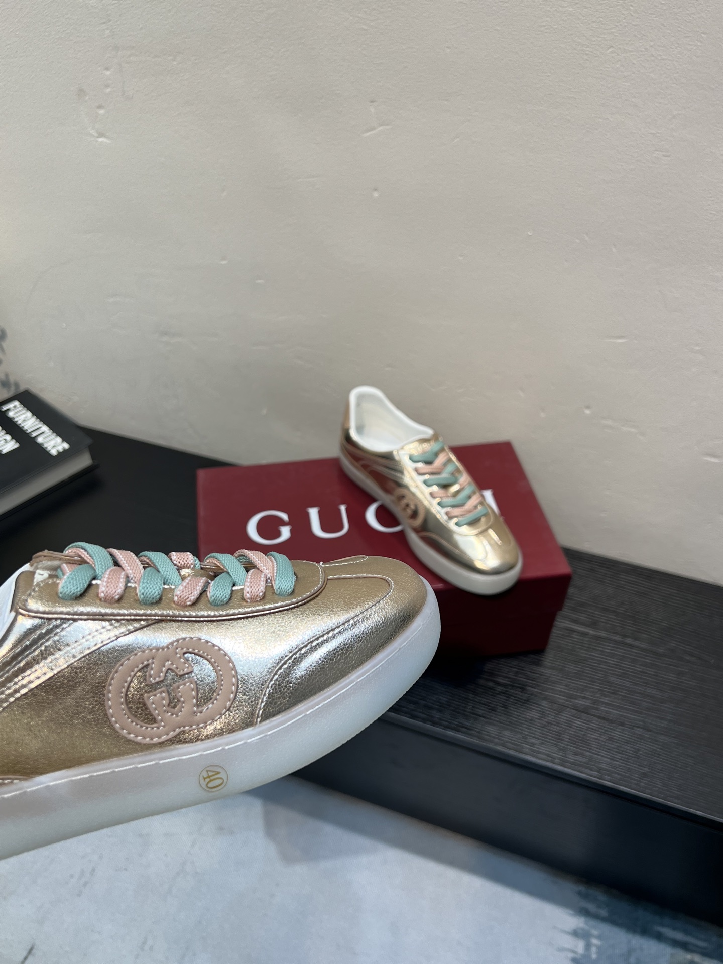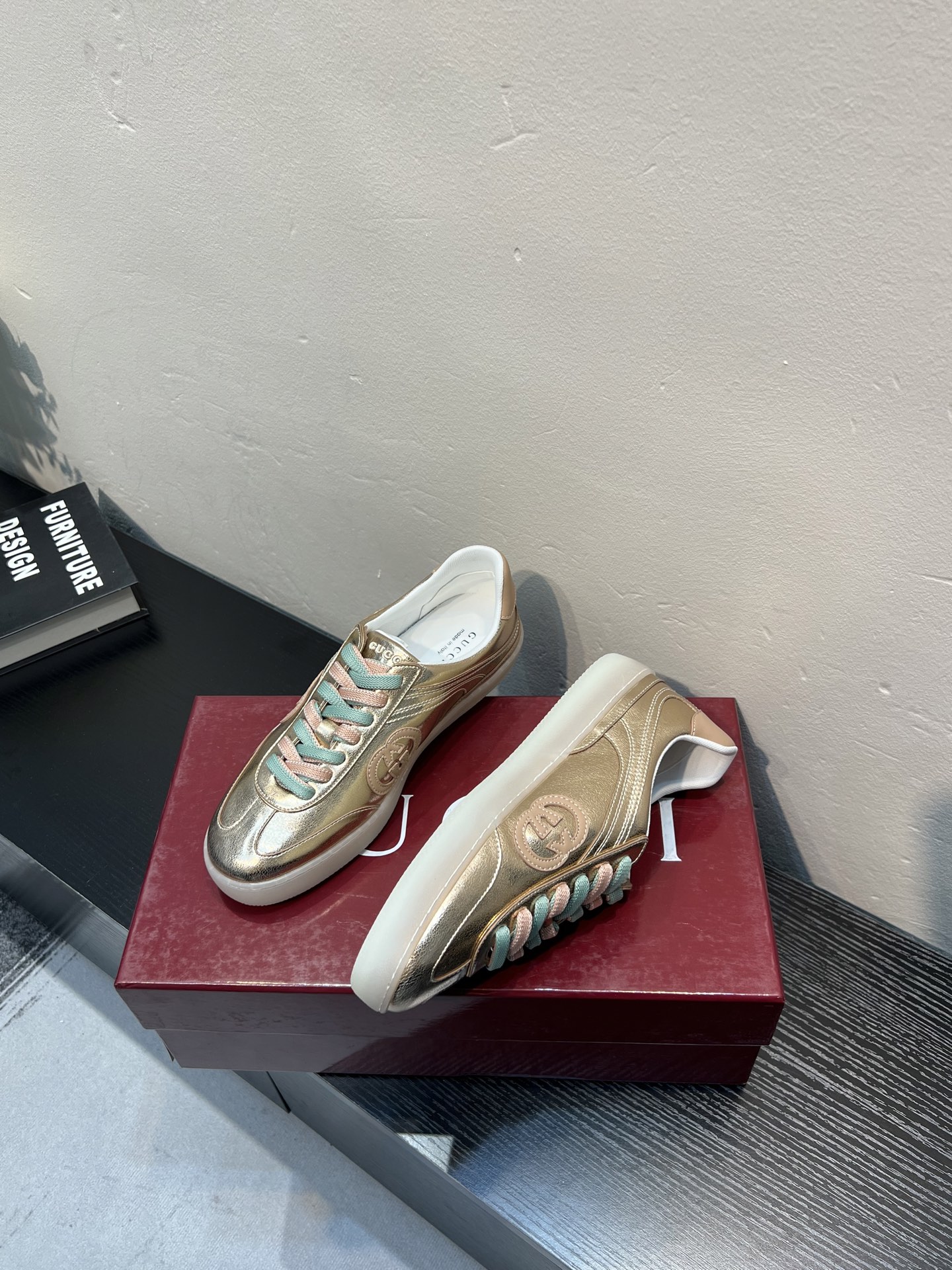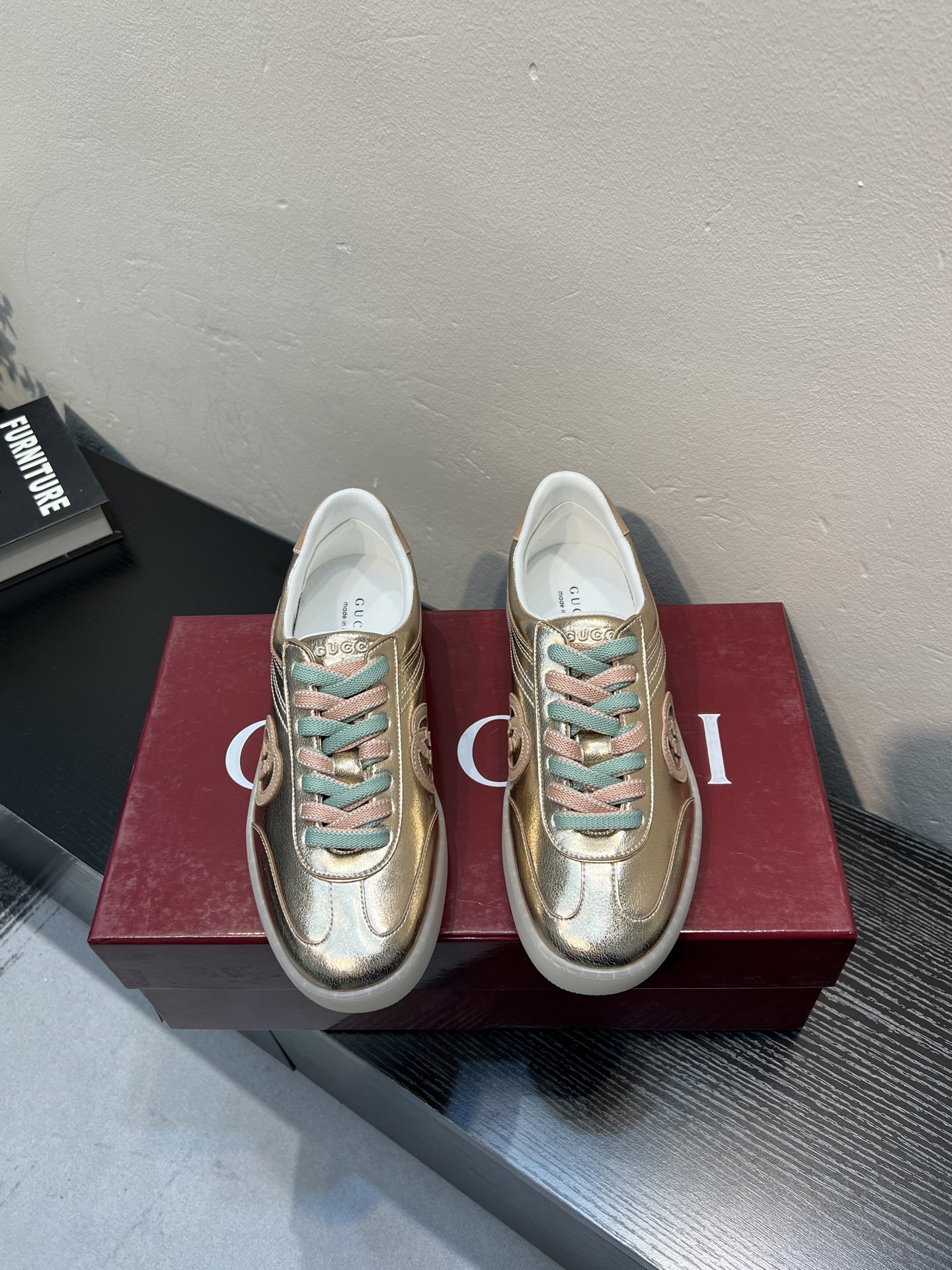 这款鞋子是AAAAA 1:1 质量 (非常棒). 使用了和原版一模一样的材料. 商标部分也保持了和古奇/Gucci一样. 图片拍摄是实物鞋子拍摄, 您所收到的实物保证和我们图片一模一样.